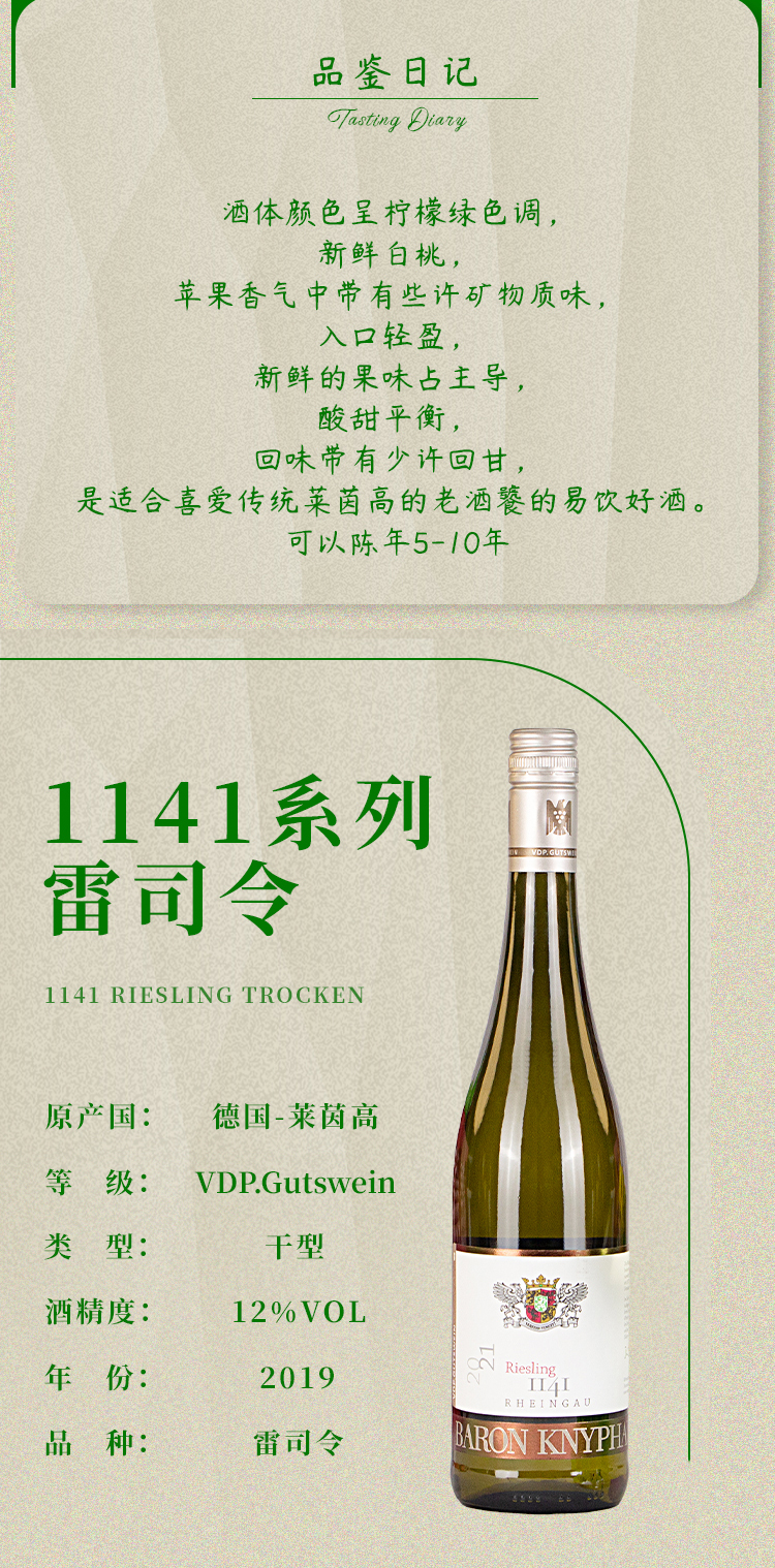 克尼普豪森男爵酒庄 1141系列雷司令干白葡萄酒