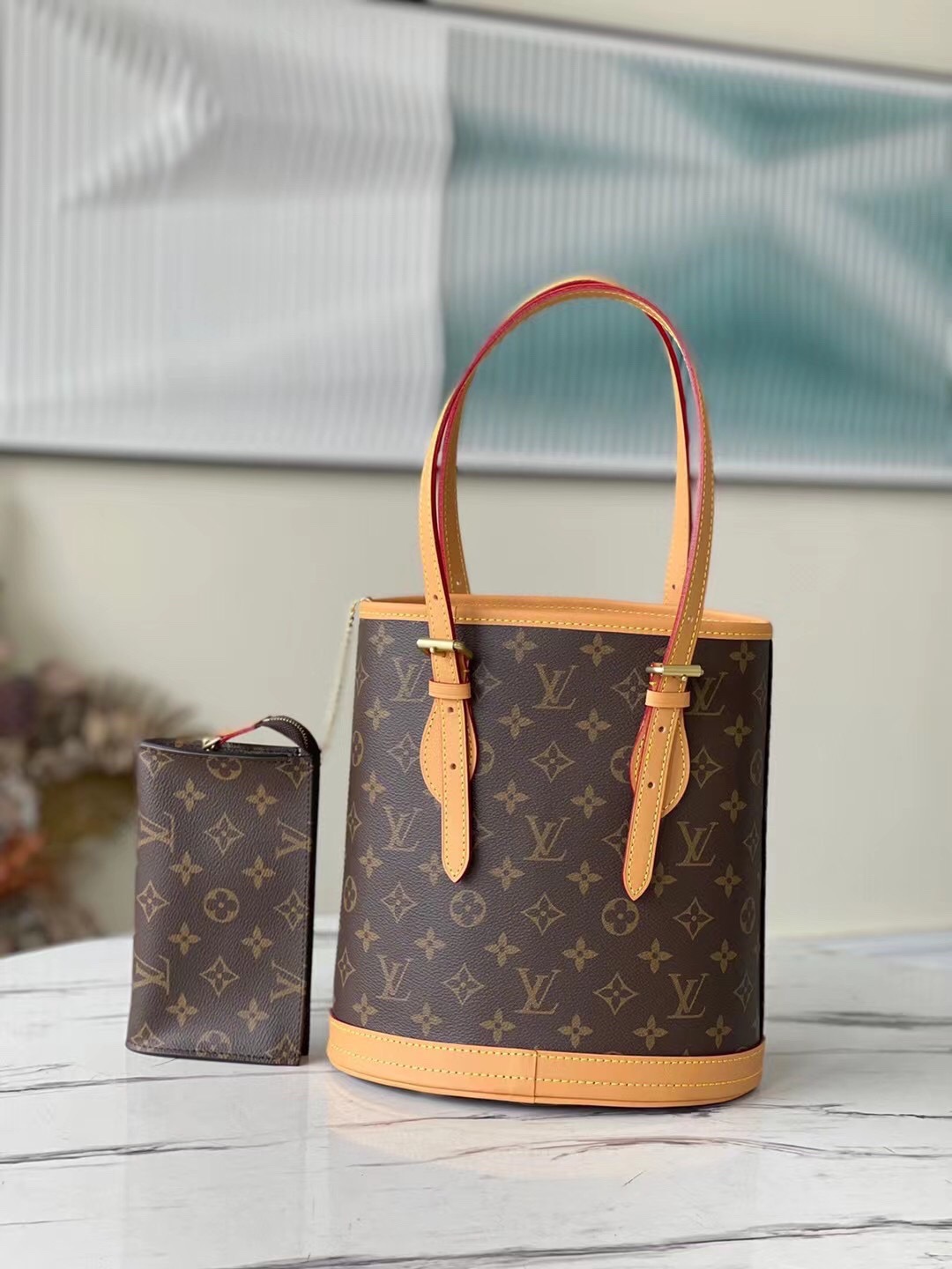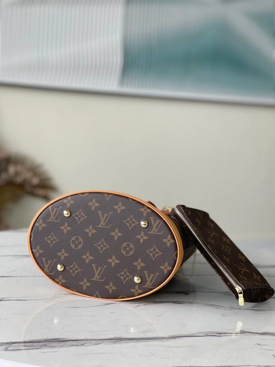 中古子母水桶包 大容量非常实用,母包肩带可调节,手提肩包都可以,子包可以搭配带子斜挎,或者当零钱包,一举两得。尺寸23*26*16.5cm