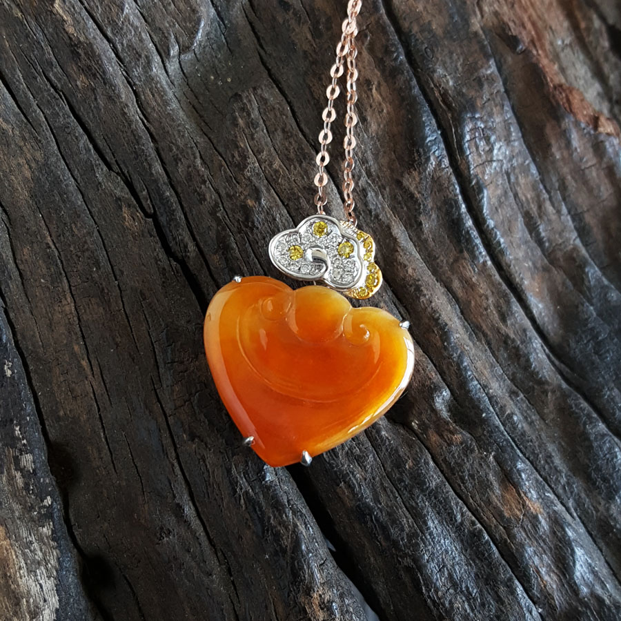 名称 | AU750白金镶钻镶天然细腻冰种元宝造型(招财进宝)黄翡吊坠项链 |