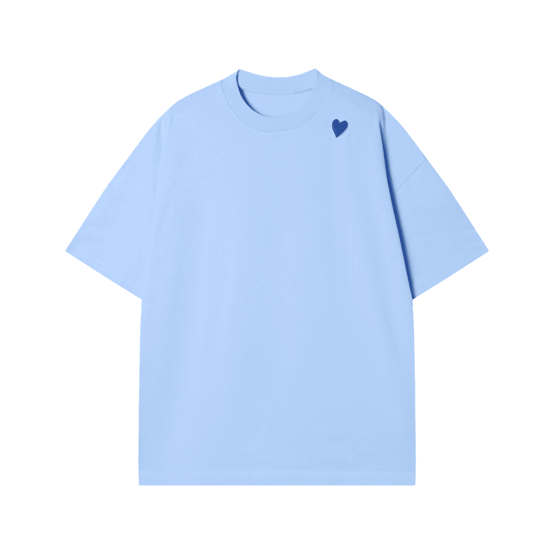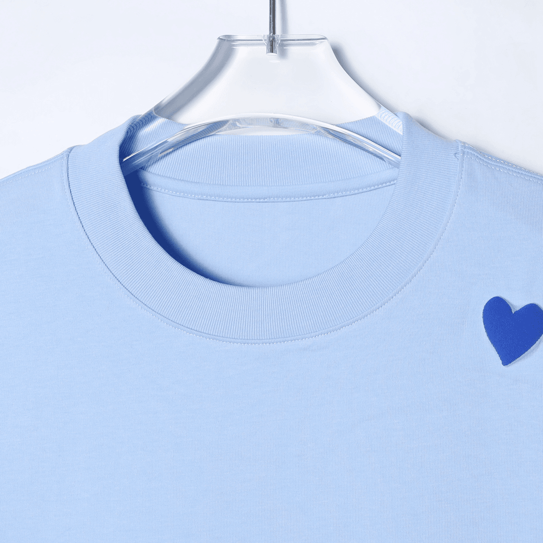 T1277潮流夏季新款纯色爱心拼接男女同款上衣百搭短袖潮流宽松T恤