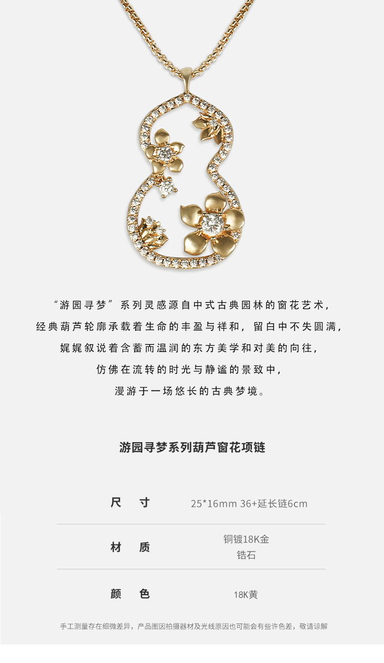 ANGEL ISLAND 铜合金锆石项链 「游园寻梦」系列葫芦窗花项链