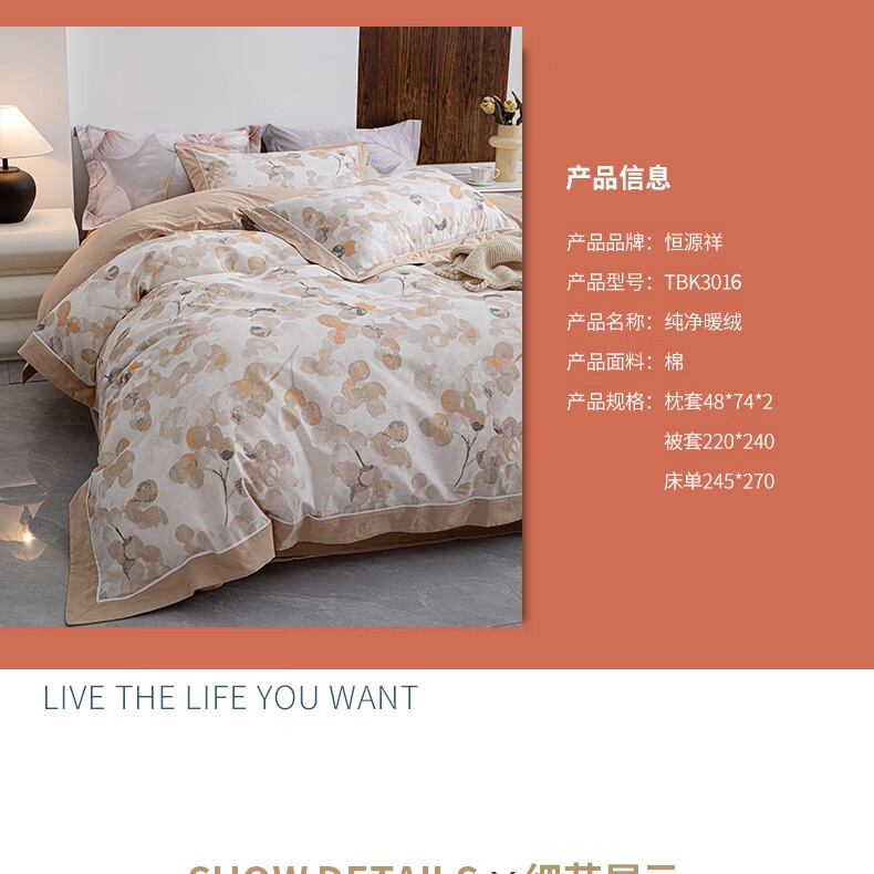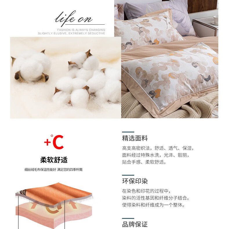 恒源祥礼业TBK3016南汐100支纯净暖绒纯净暖绒四件套 1.8m(被套:200*230cm)