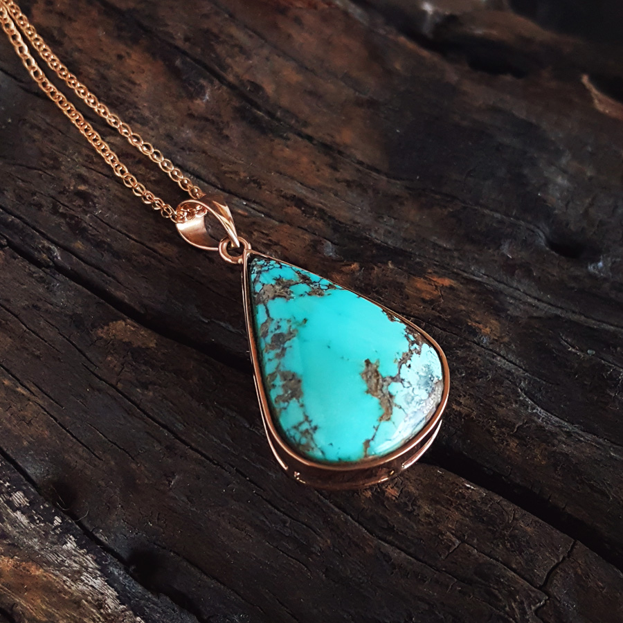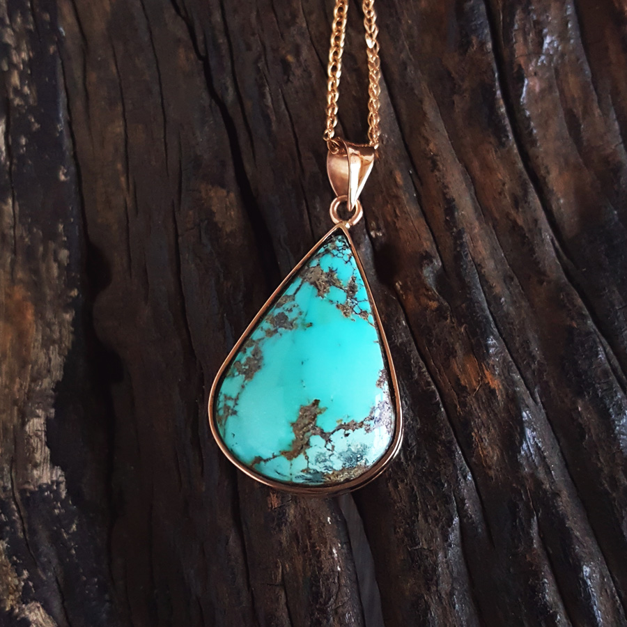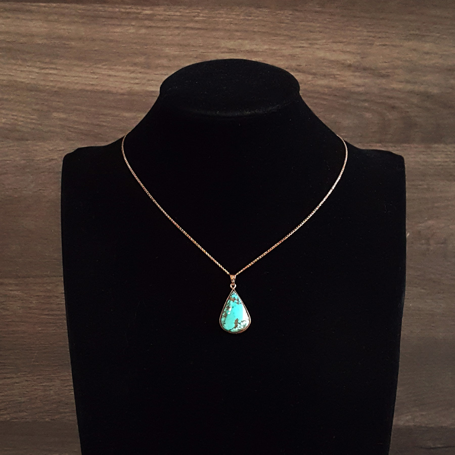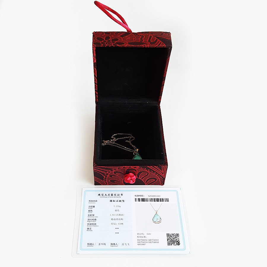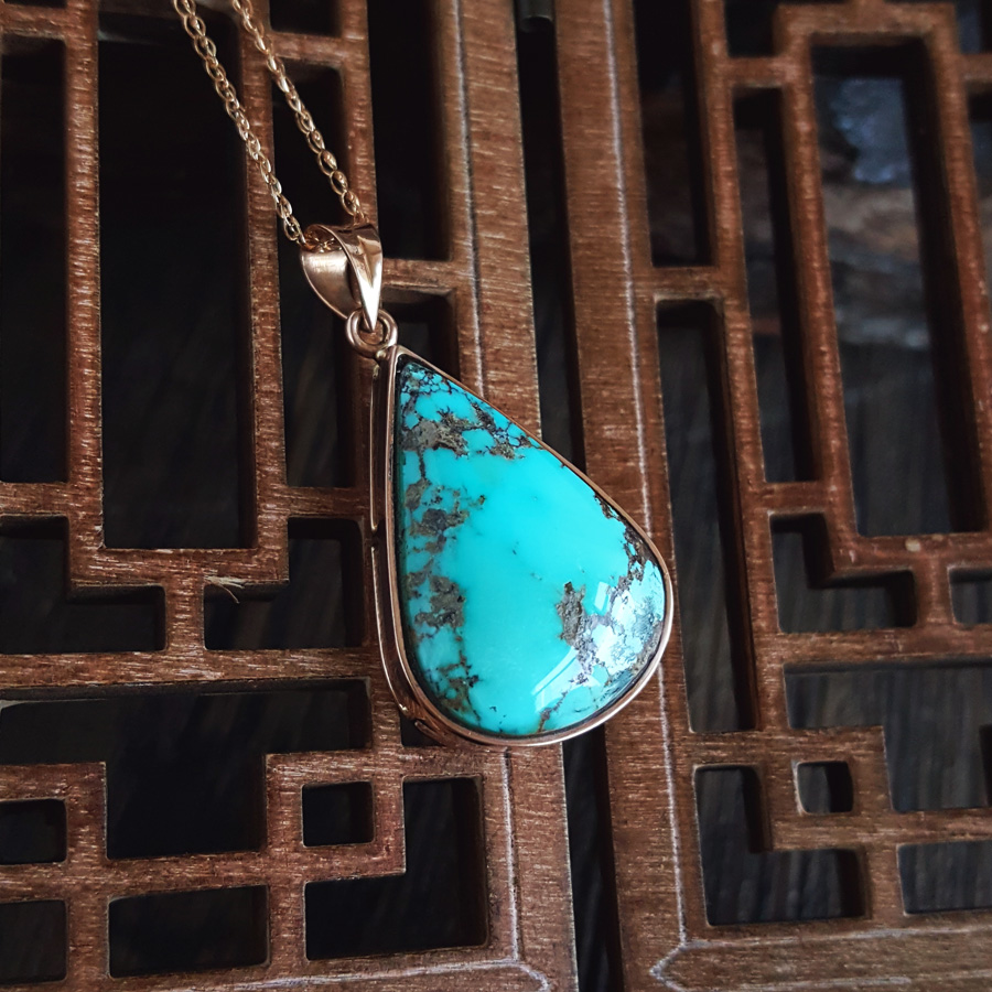 名称 | AU750黄金镶天然原矿高瓷高蓝铁线水滴形绿松石吊坠项链 |