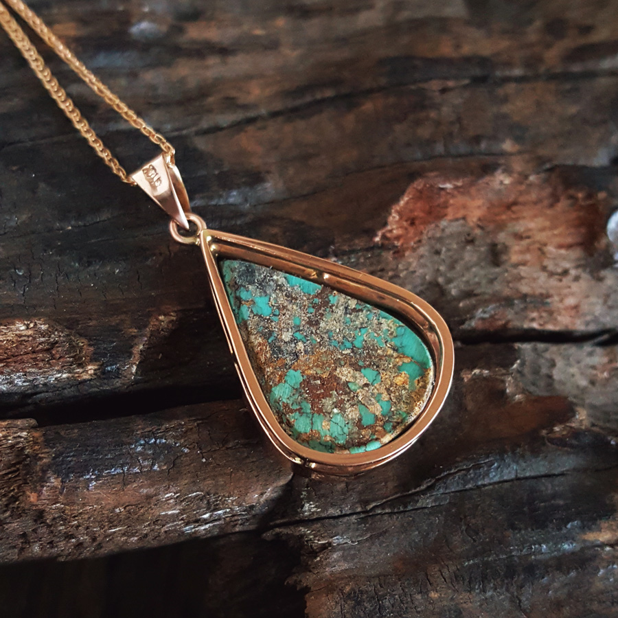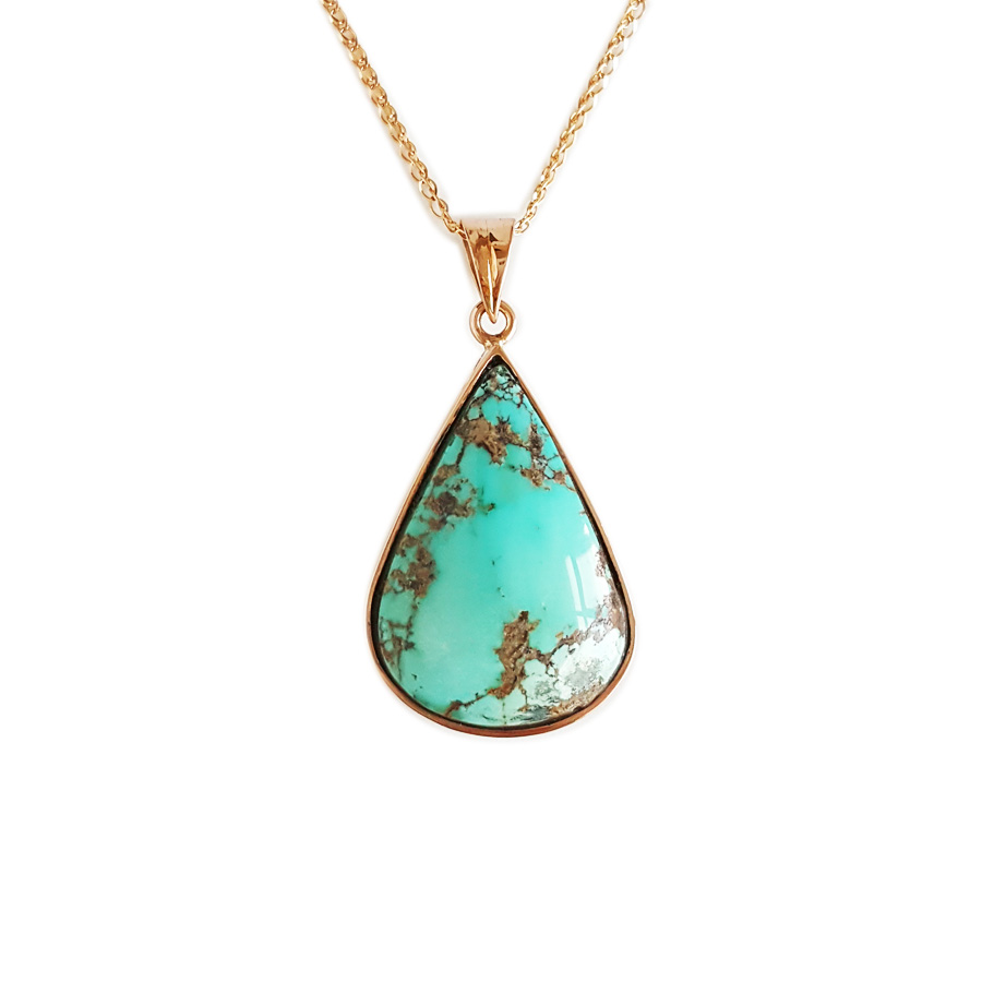 【天然正品】AU750黄金镶天然原矿高瓷高蓝铁线水滴形绿松石吊坠项链 链长:41CM 女士251025NJT13