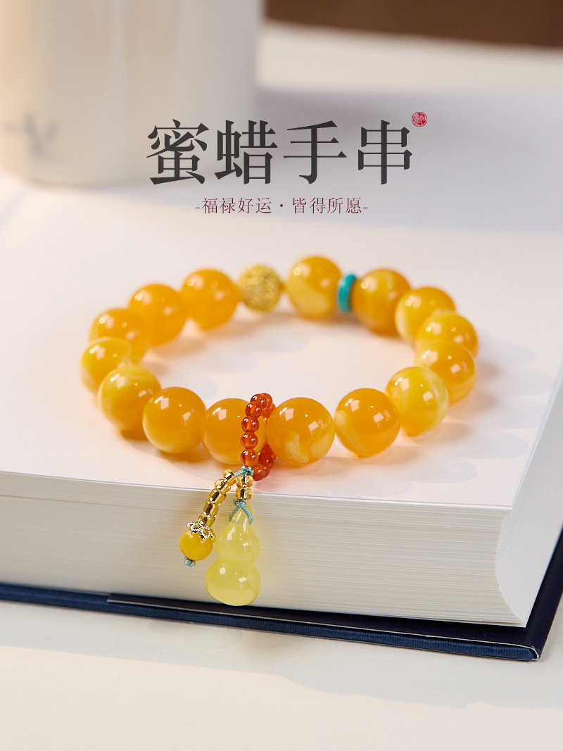 【普陀山直发】天然蜜蜡招财手串葫芦 男女同款-