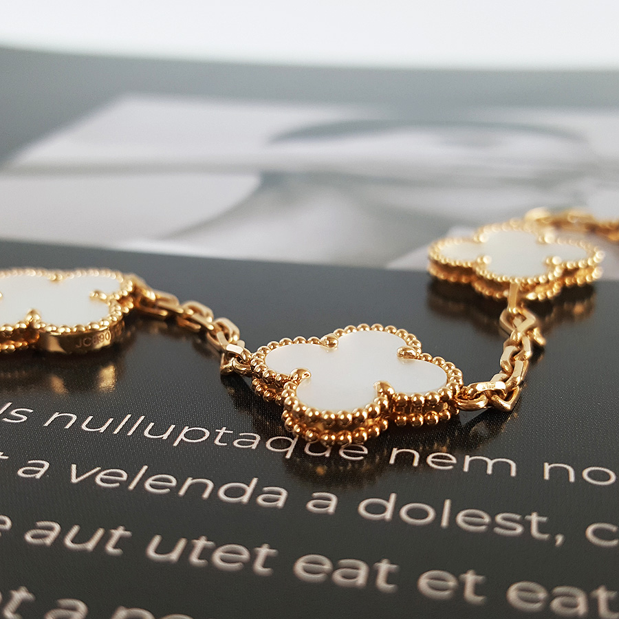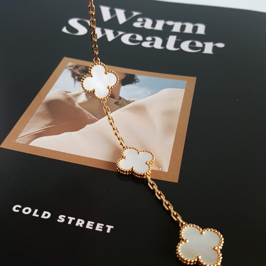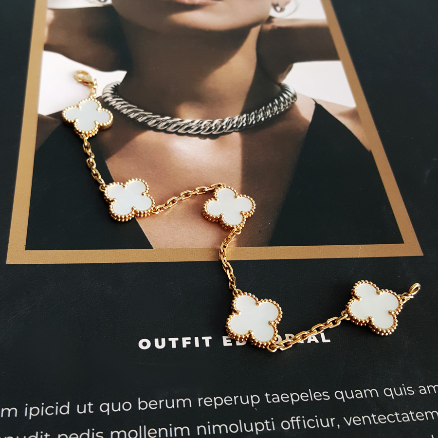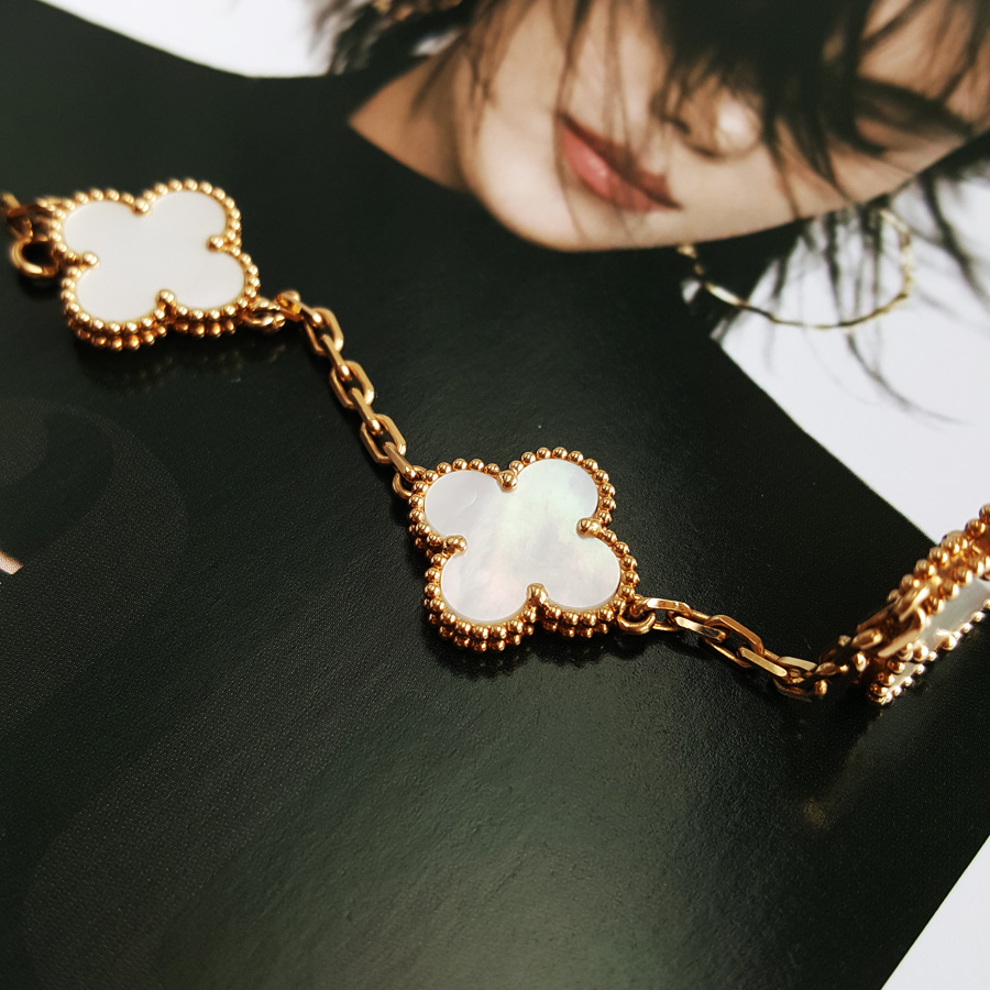 款式 | 18K黄金镶白贝母四叶草白五花手链 |