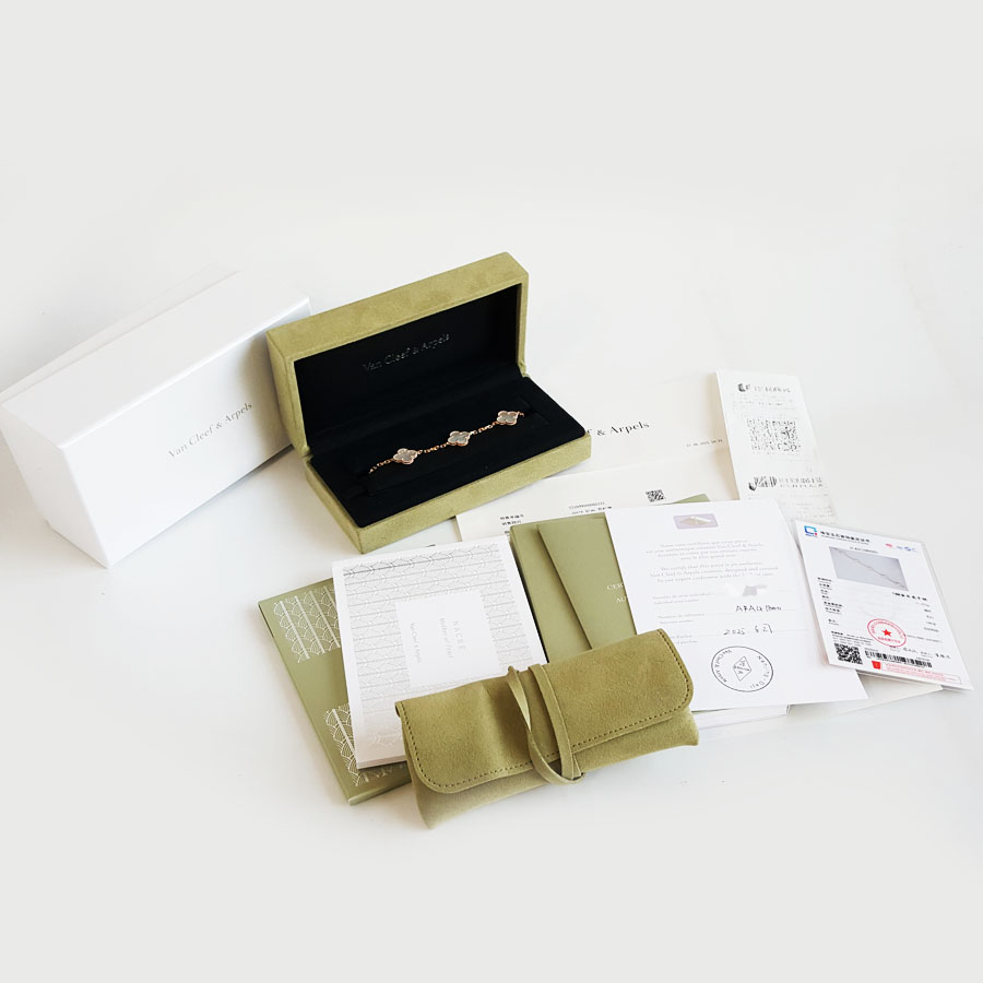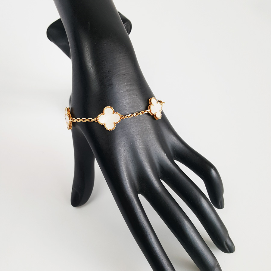 【全新】VCA梵克雅宝Vintage Alhambra系列VCARA41800 18K黄金镶白贝母四叶草白五花手链 链长约19cm120226NJS37