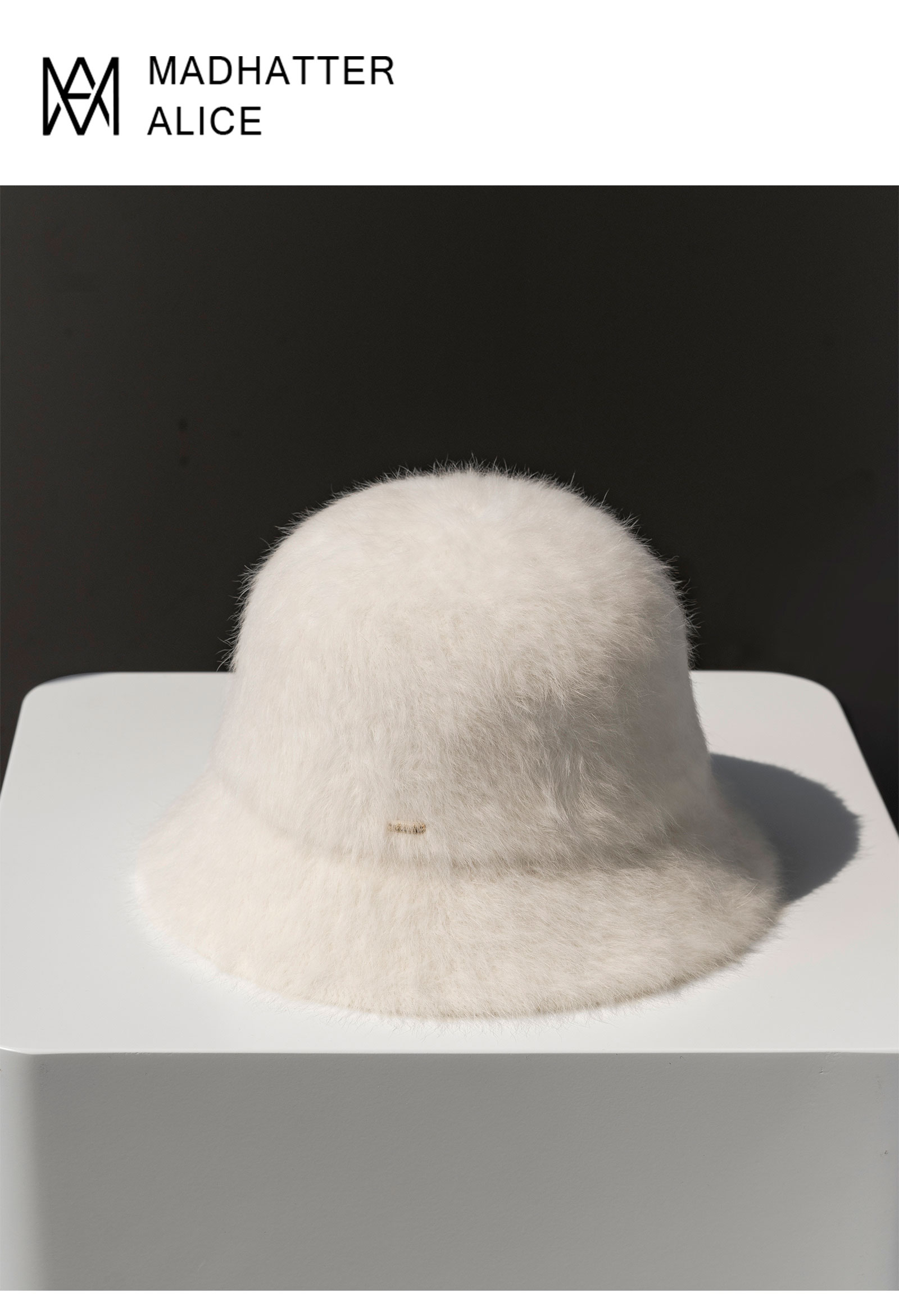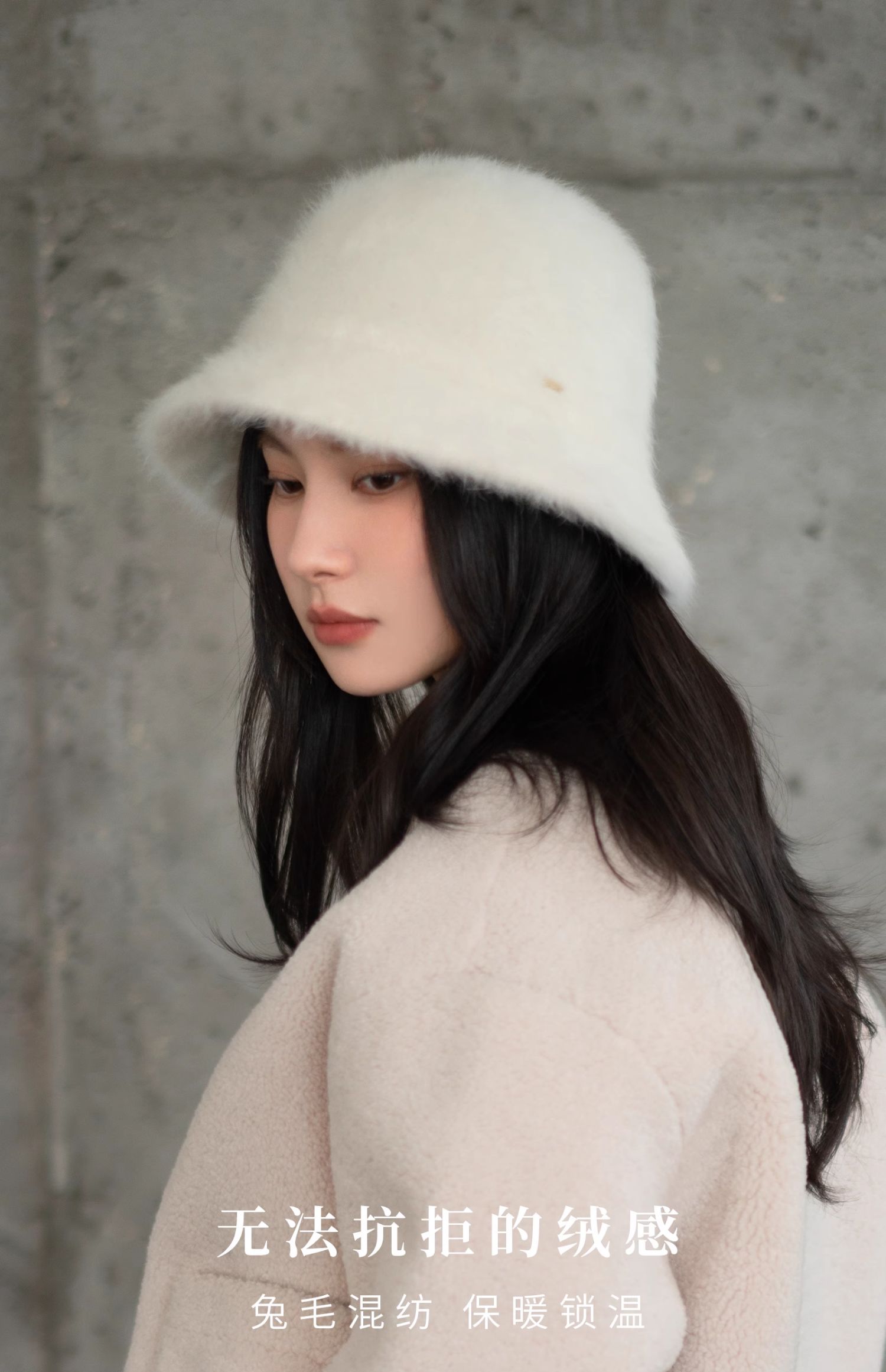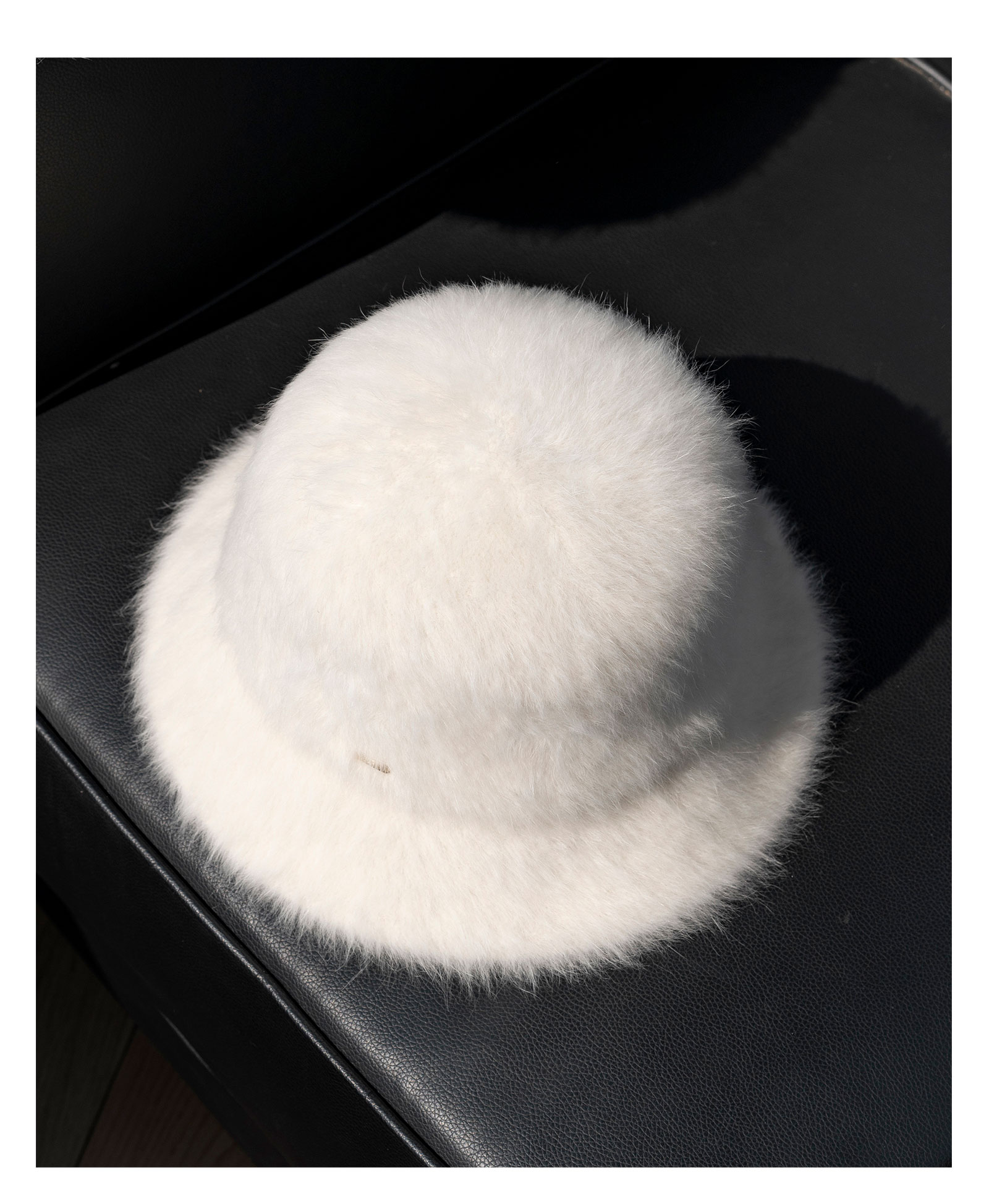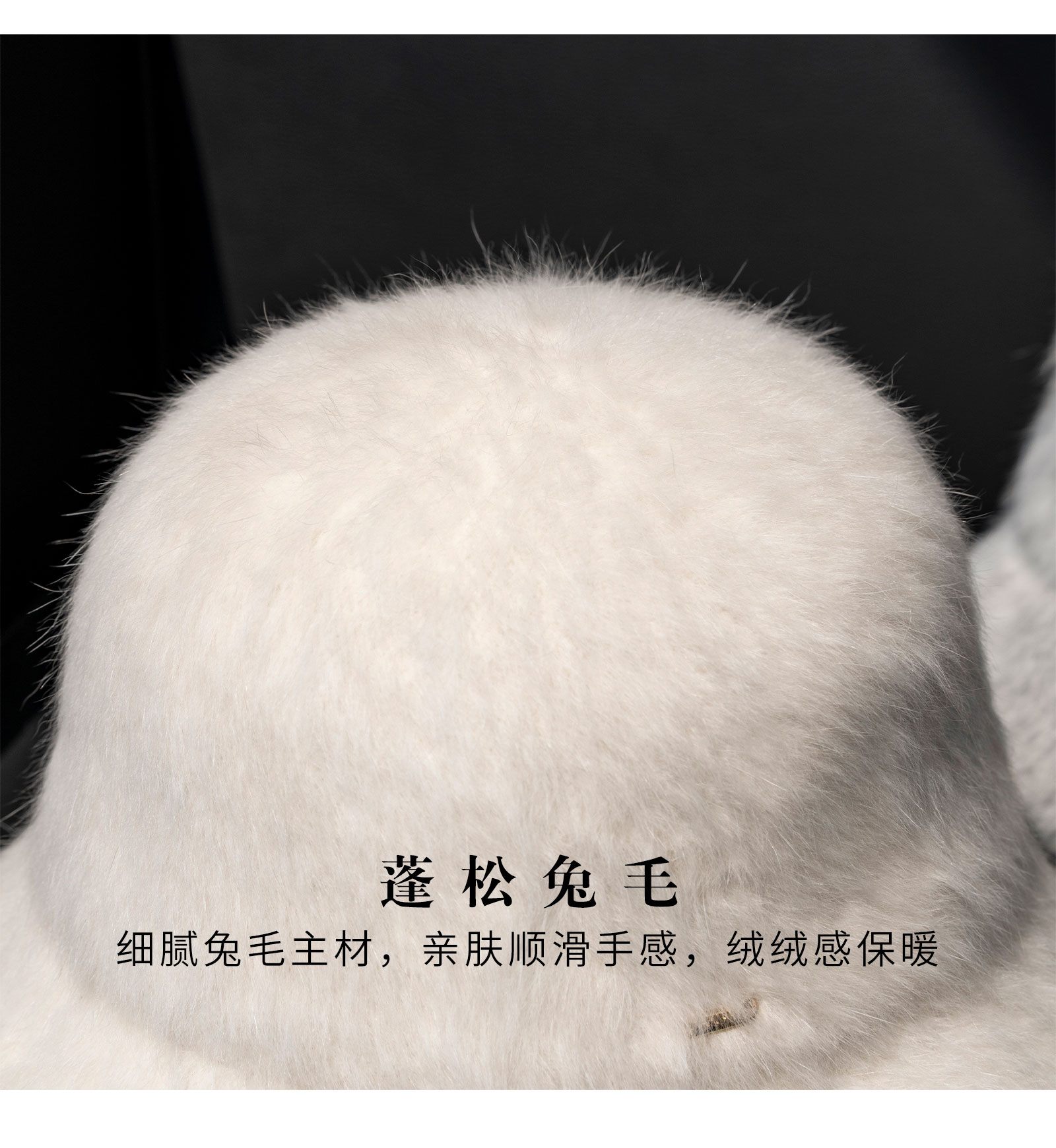 疯帽子 柔软舒适兔毛渔夫帽女纯色简约保暖盆帽日常显脸小