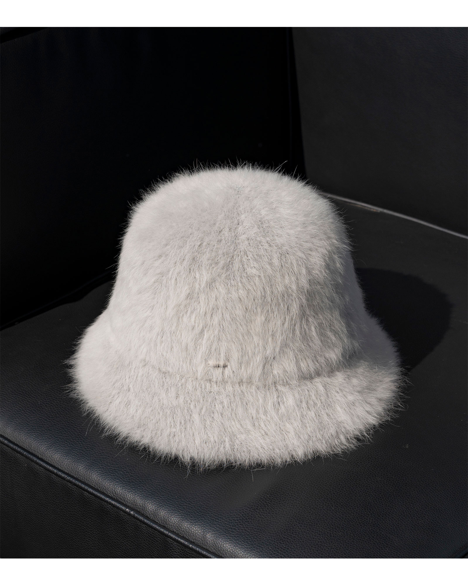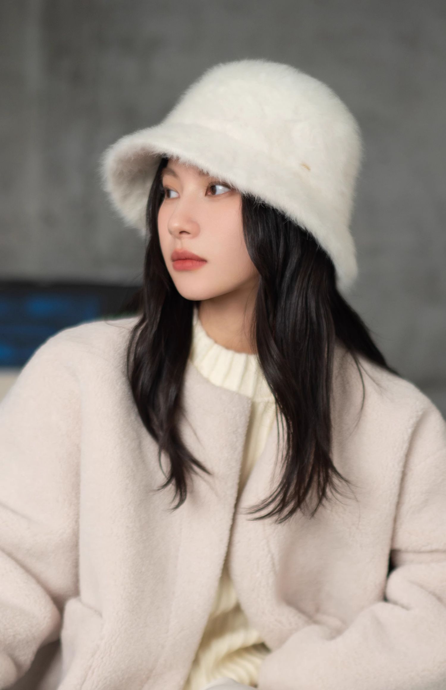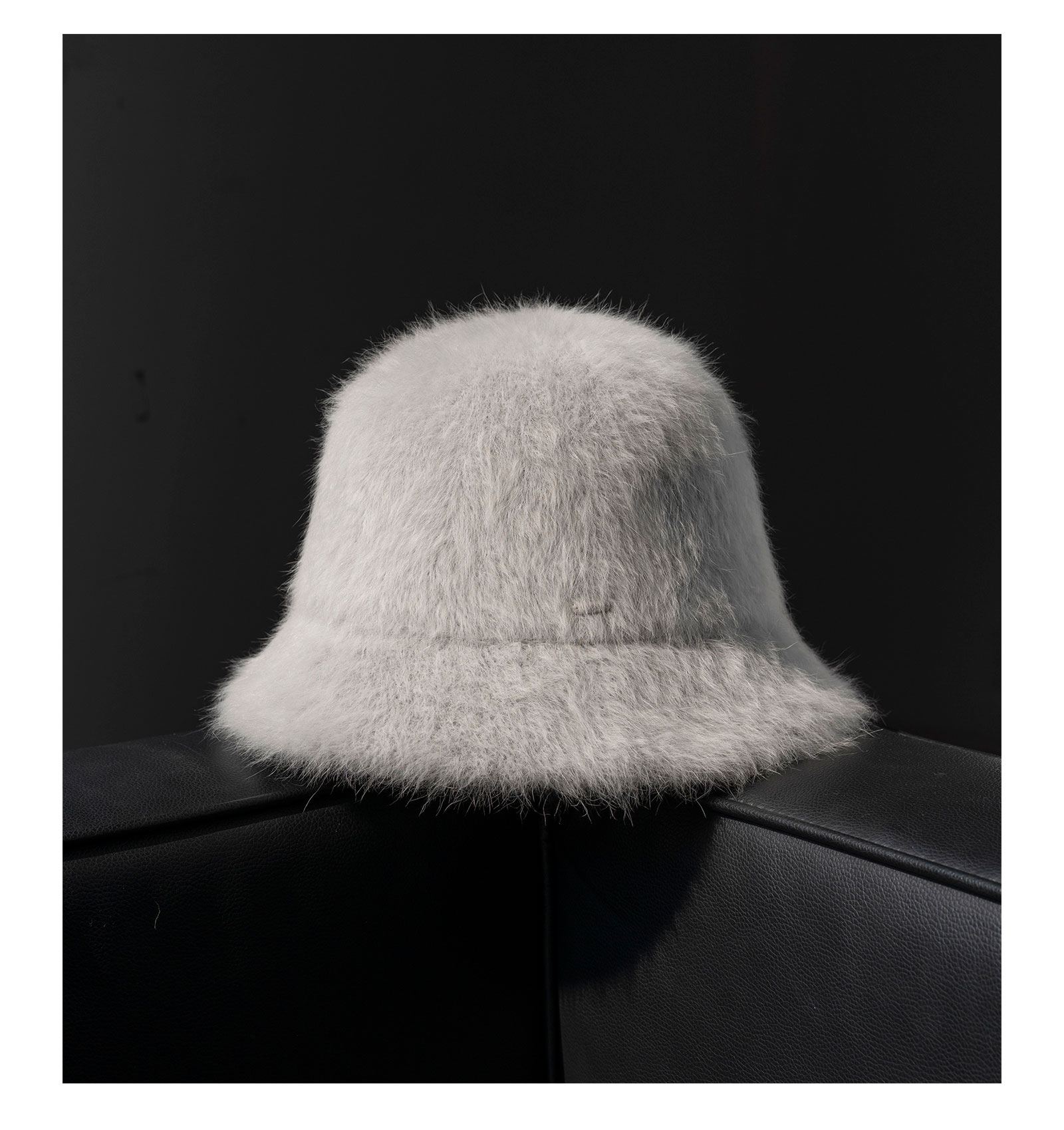 疯帽子 柔软舒适兔毛渔夫帽女纯色简约保暖盆帽日常显脸小