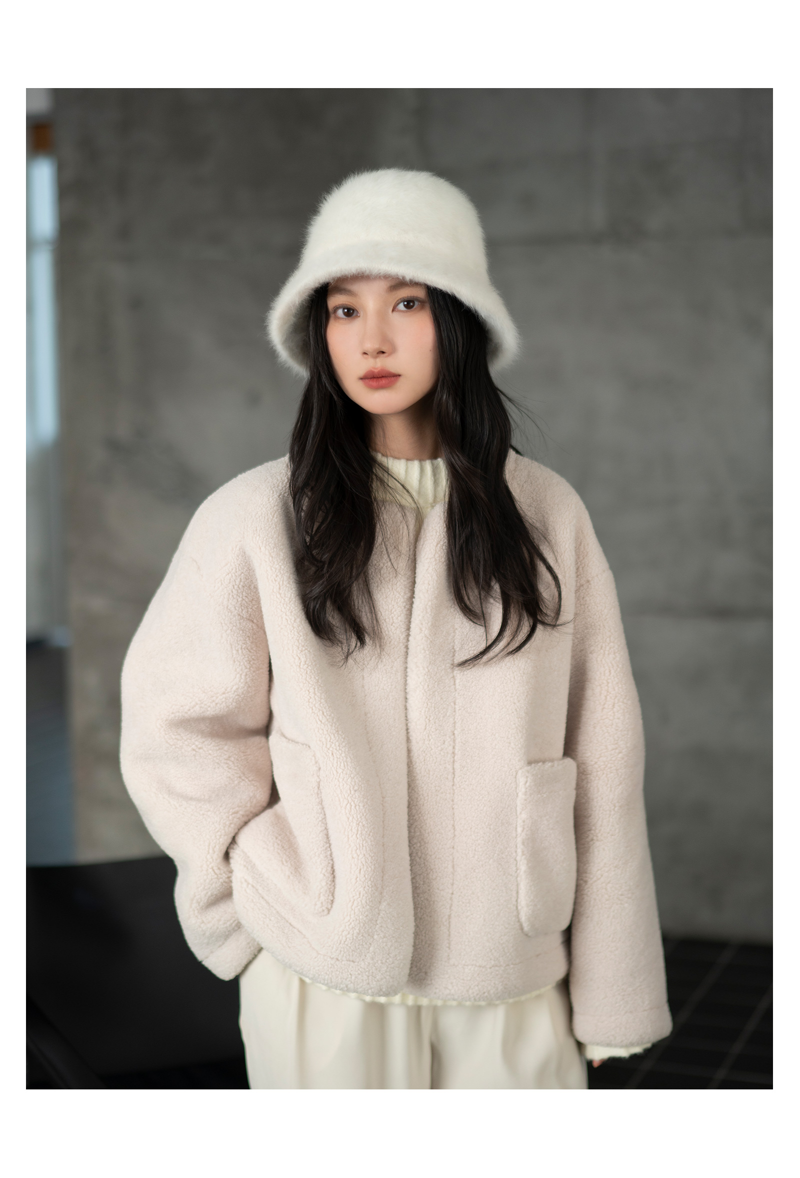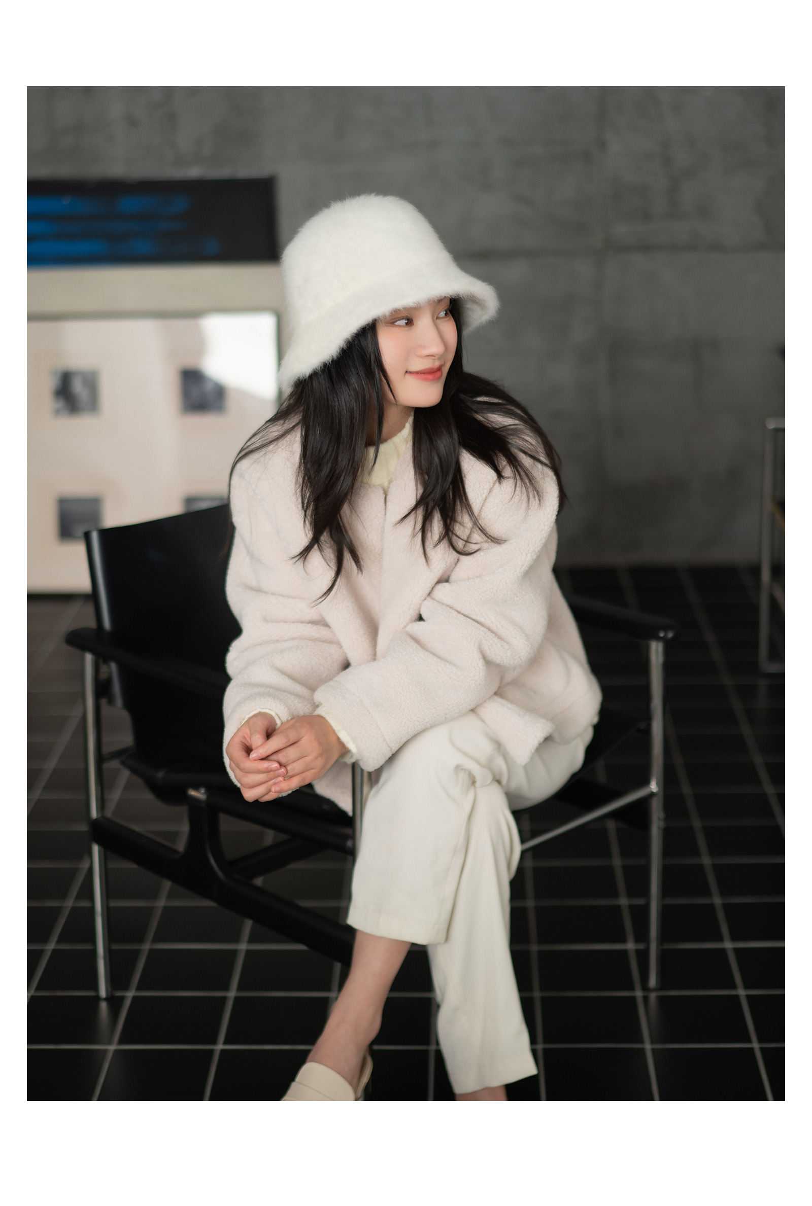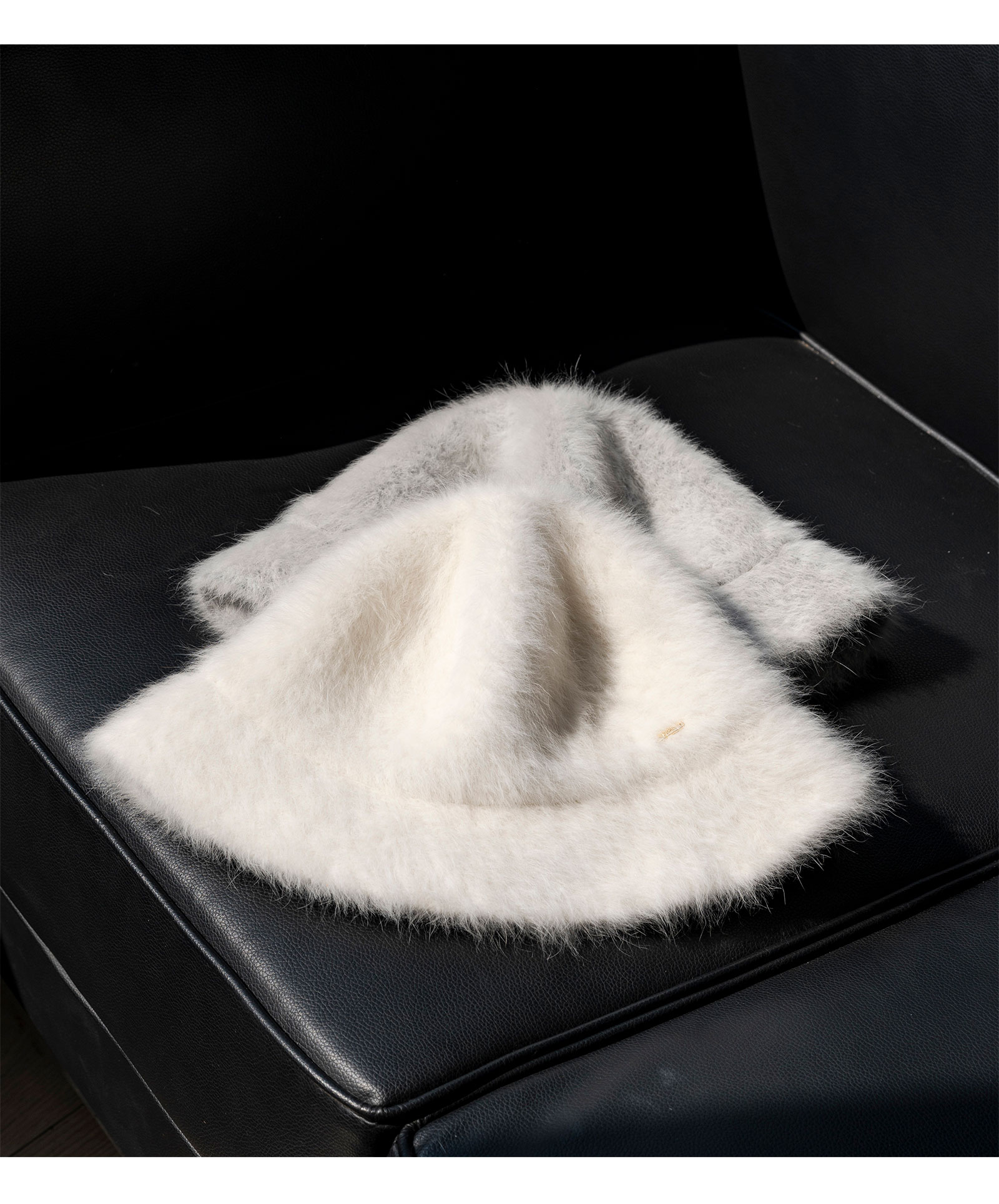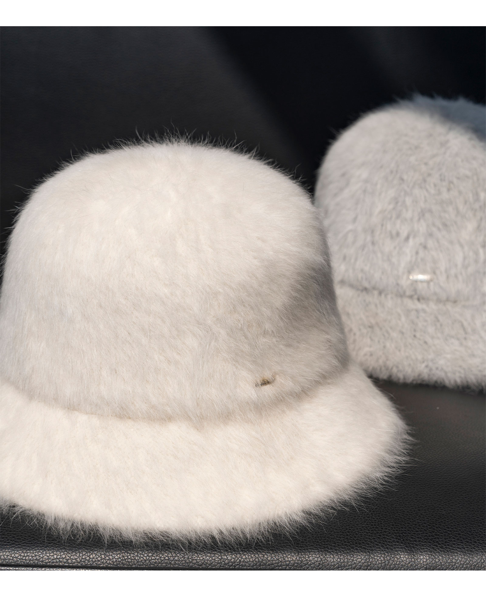 疯帽子 柔软舒适兔毛渔夫帽女纯色简约保暖盆帽日常显脸小