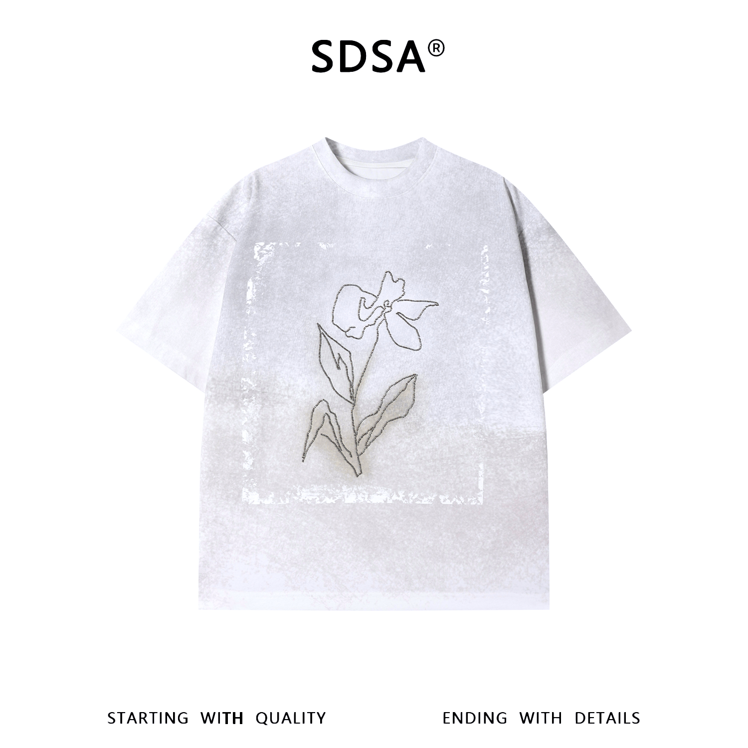 SDSA男装2026新款高贵轻奢潮牌渐变珠子花朵设计圆领短袖T恤百搭