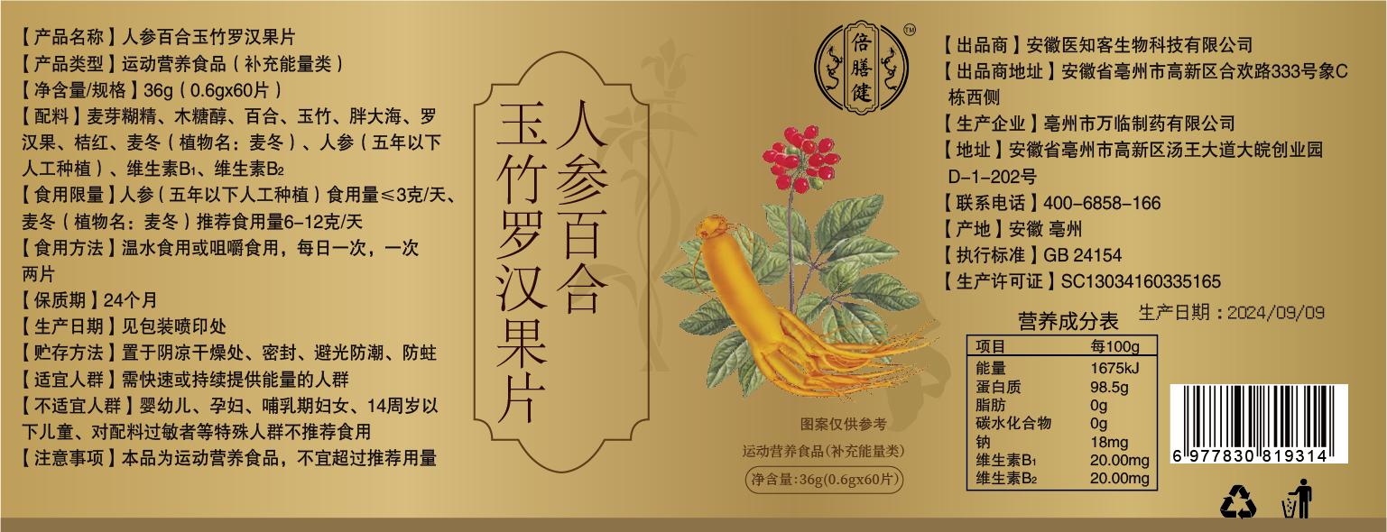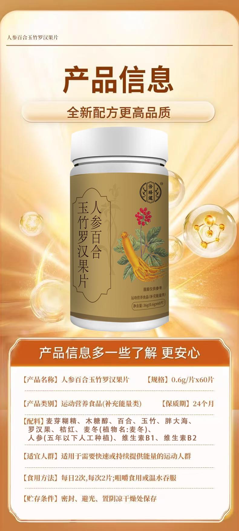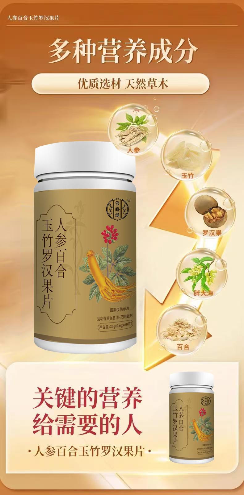 【官方旗舰】人参百合玉竹罗汉果片 多种植物萃品质保证0.6g*60片