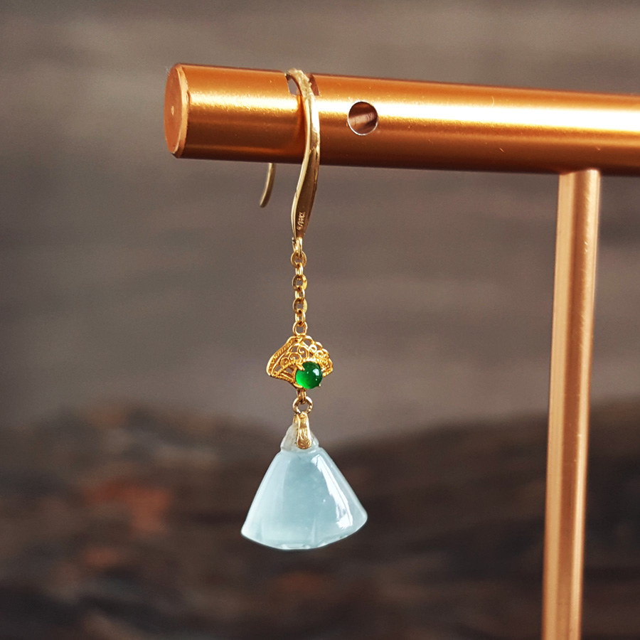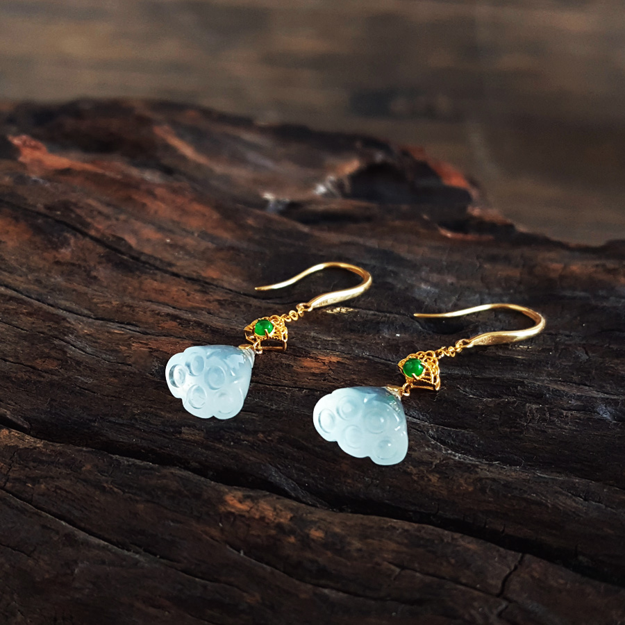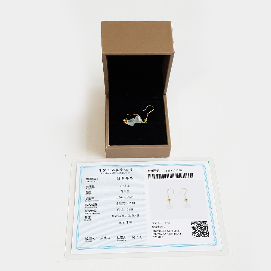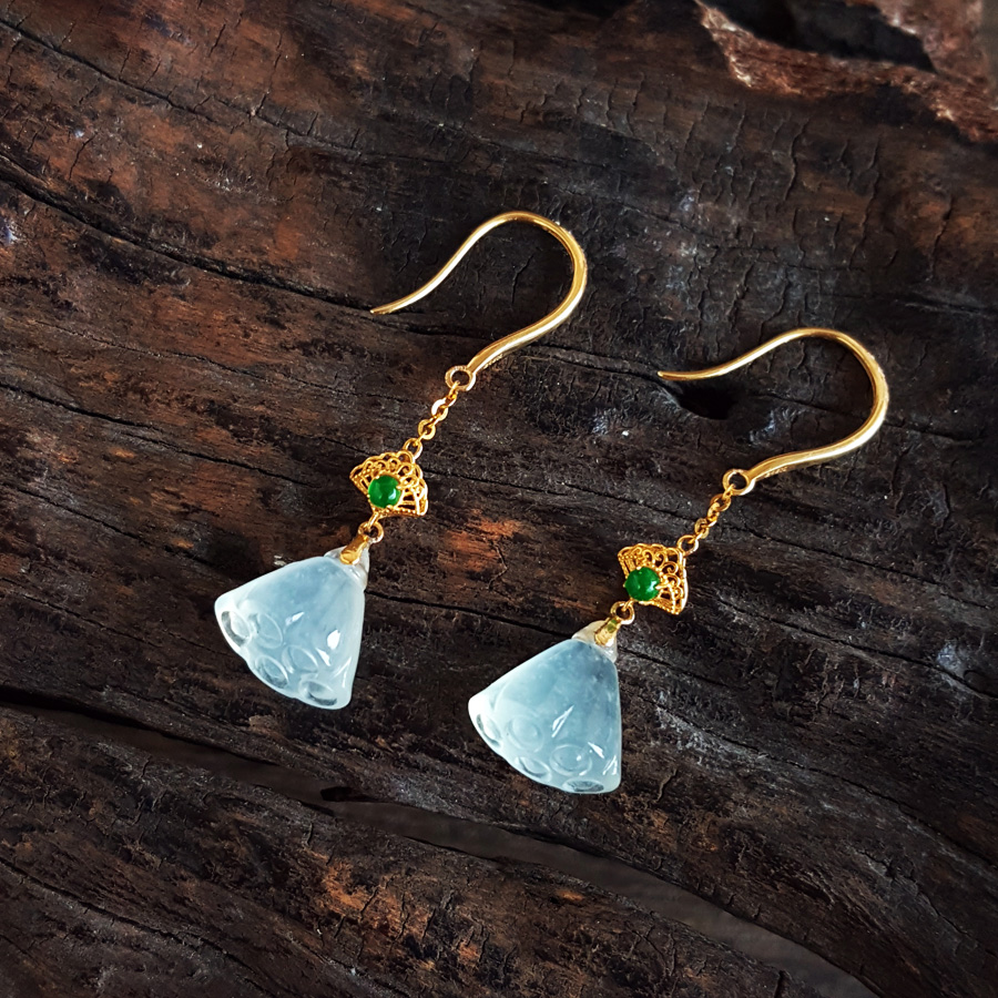 名称 | AU750黄金镶天然冰种莲蓬造型翡翠(好运、多子多福)耳环 |