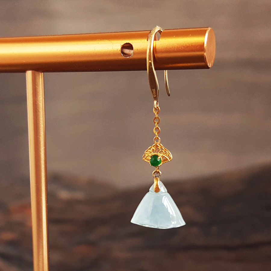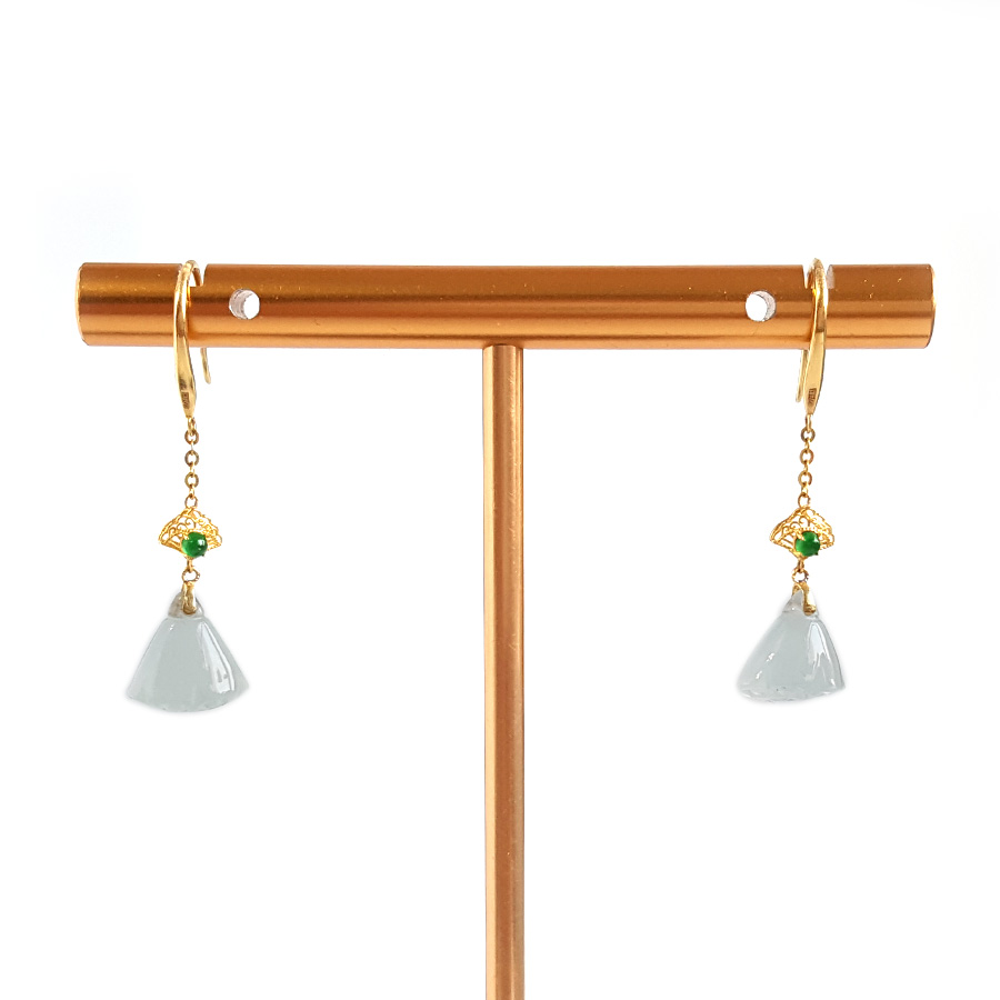 【天然正品】A货翡翠AU750黄金镶天然冰种莲蓬造型翡翠(好运、多子多福)耳环31.7*8.9*5.2MM(皆取最大值)281225NJS30特价:1080