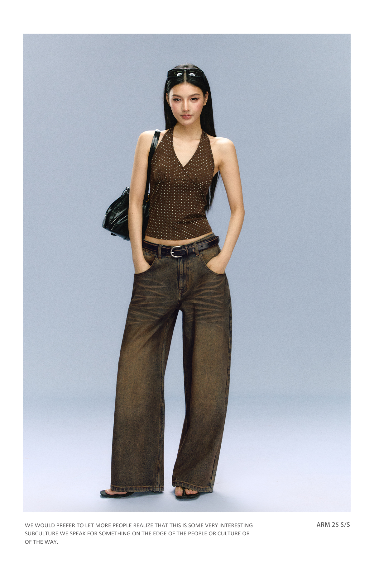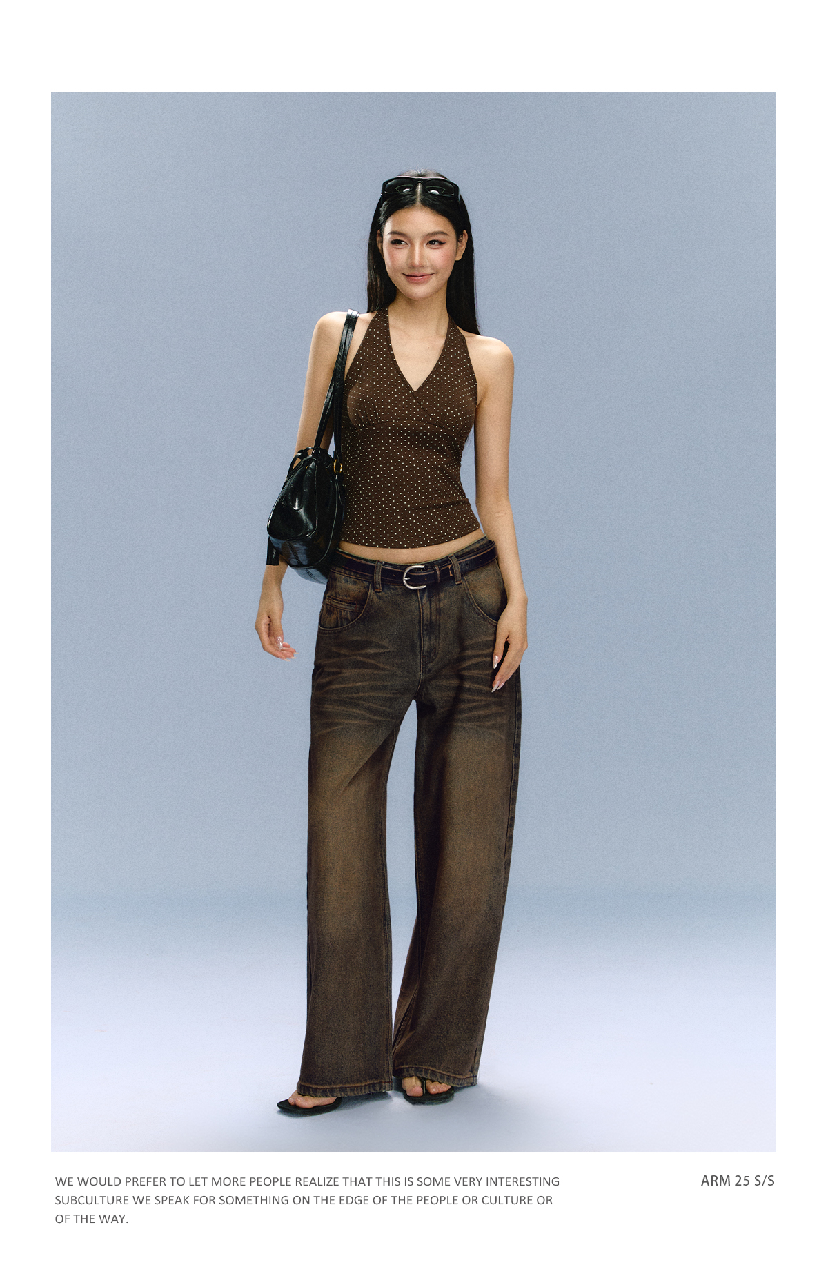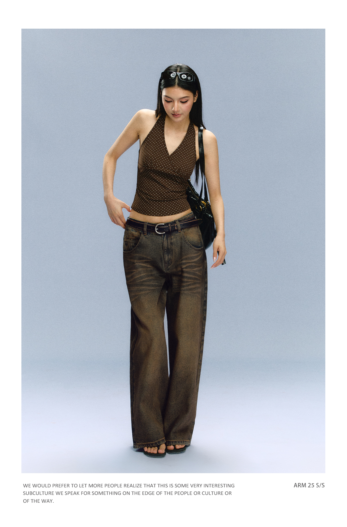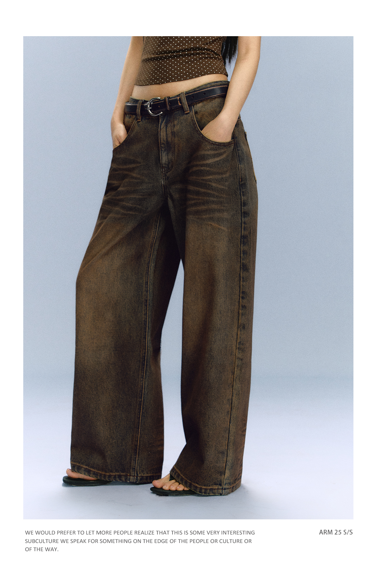 Ariseism 美式复古设计感做旧洗水牛仔裤女秋冬新款长裤子