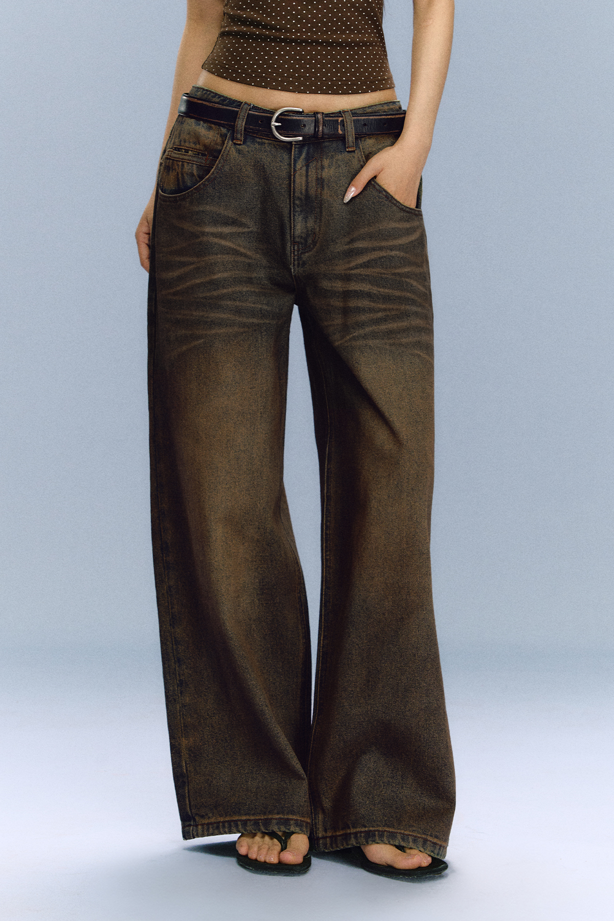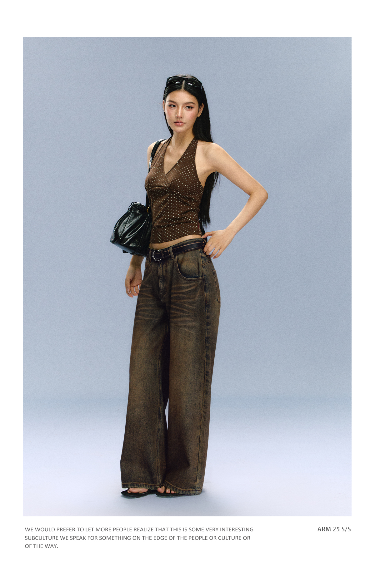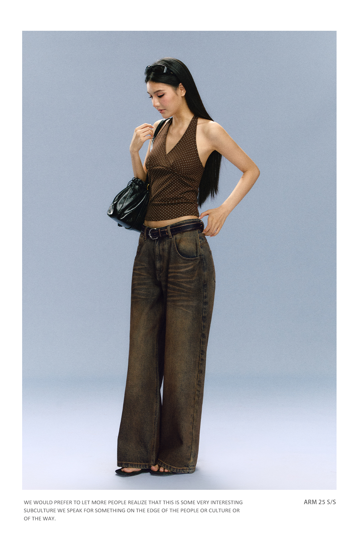Ariseism 美式复古设计感做旧洗水牛仔裤女秋冬新款长裤子