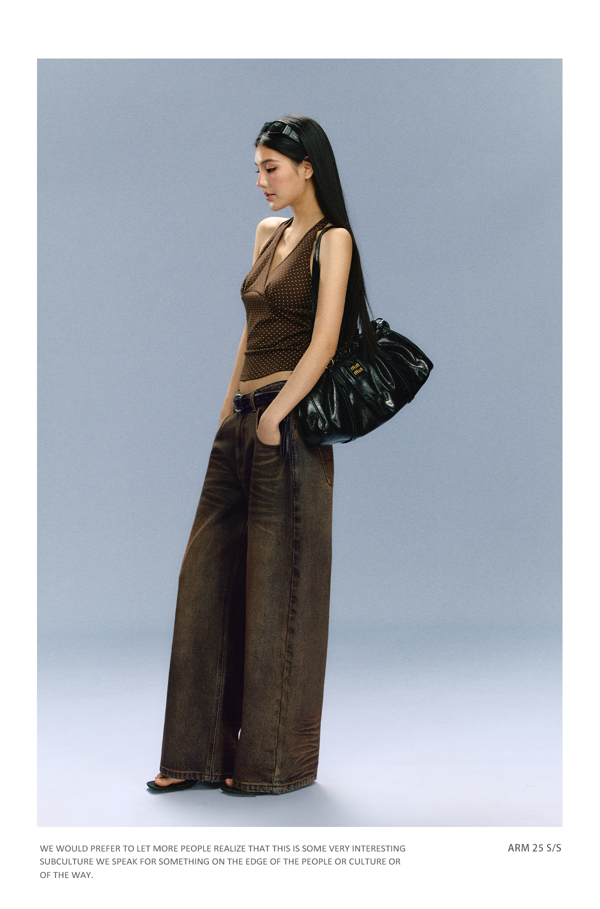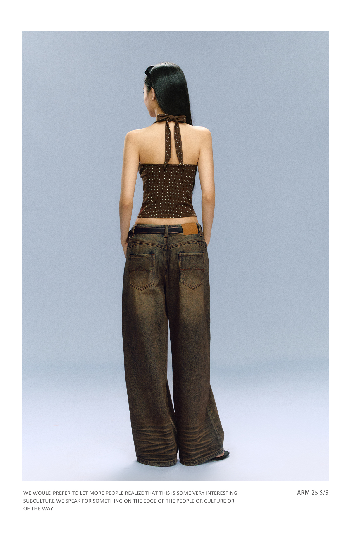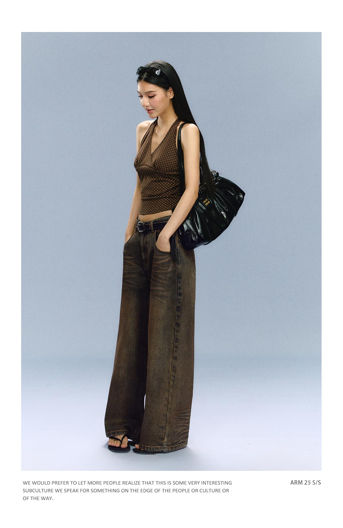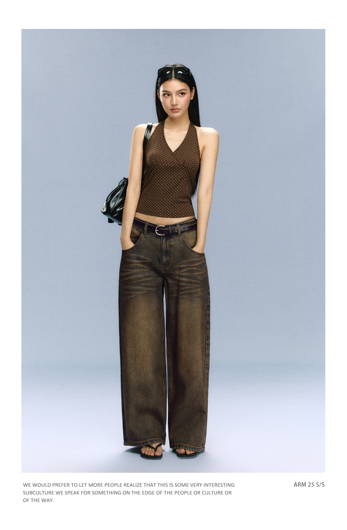 Ariseism 美式复古设计感做旧洗水牛仔裤女秋冬新款长裤子