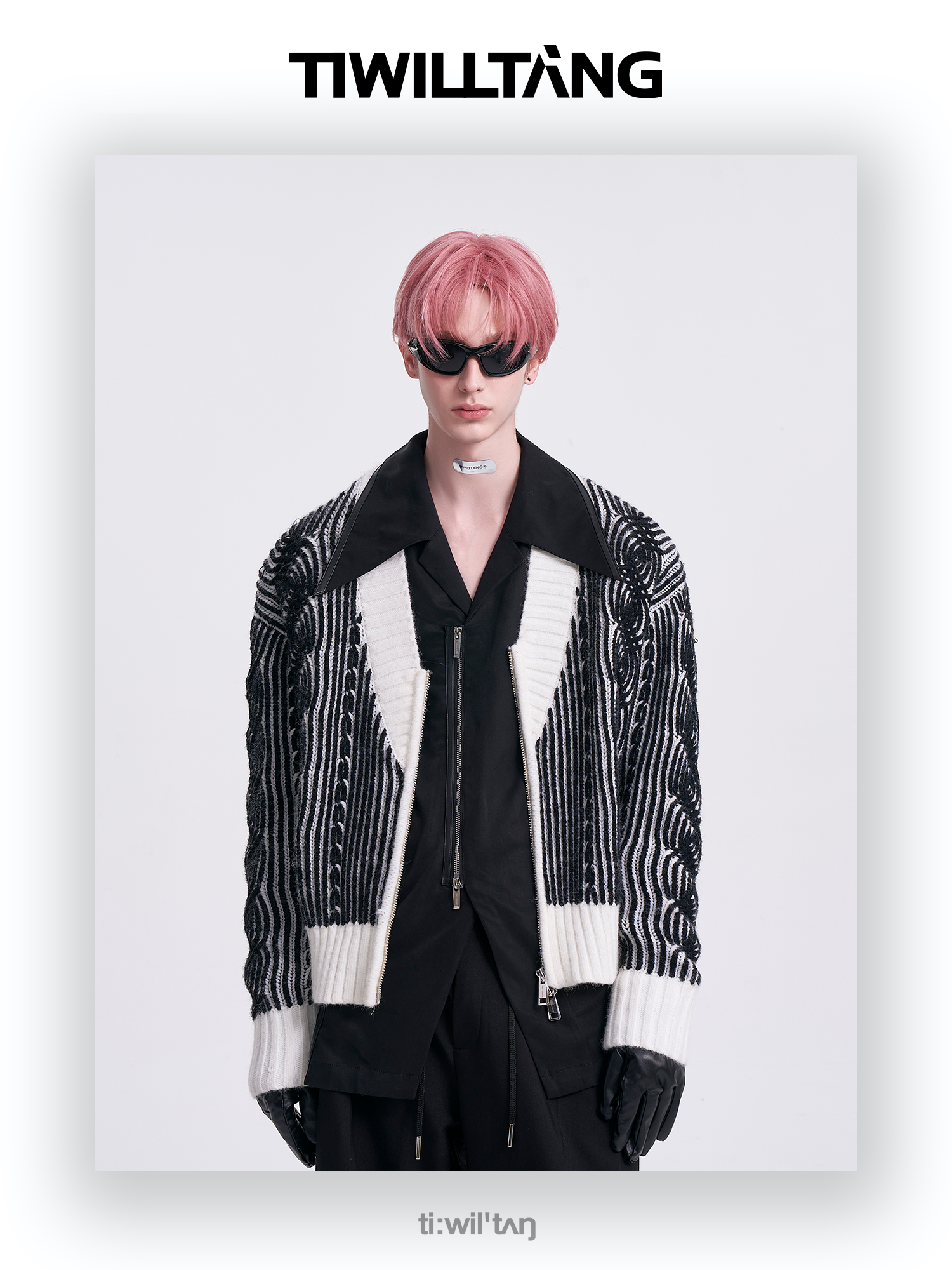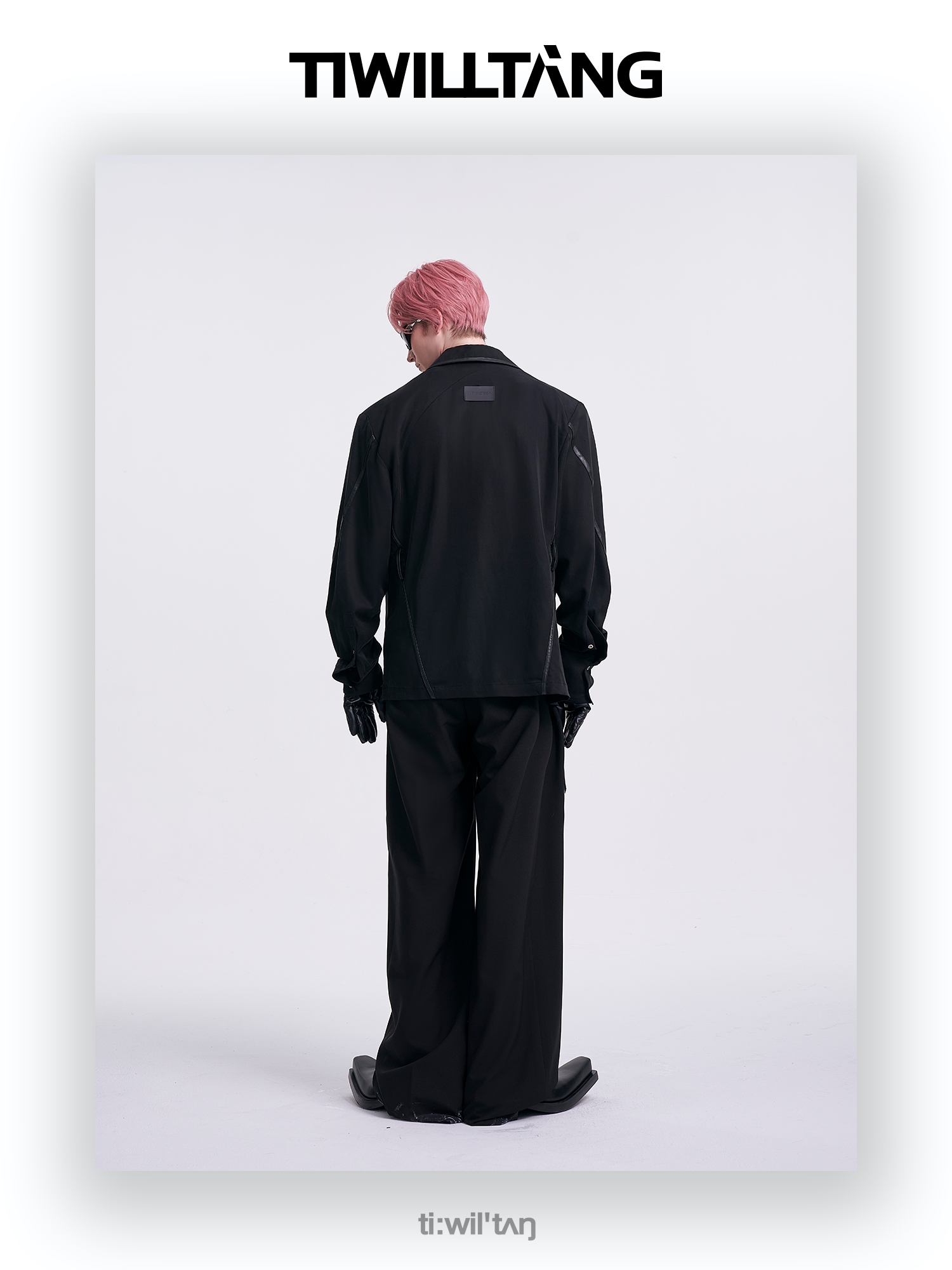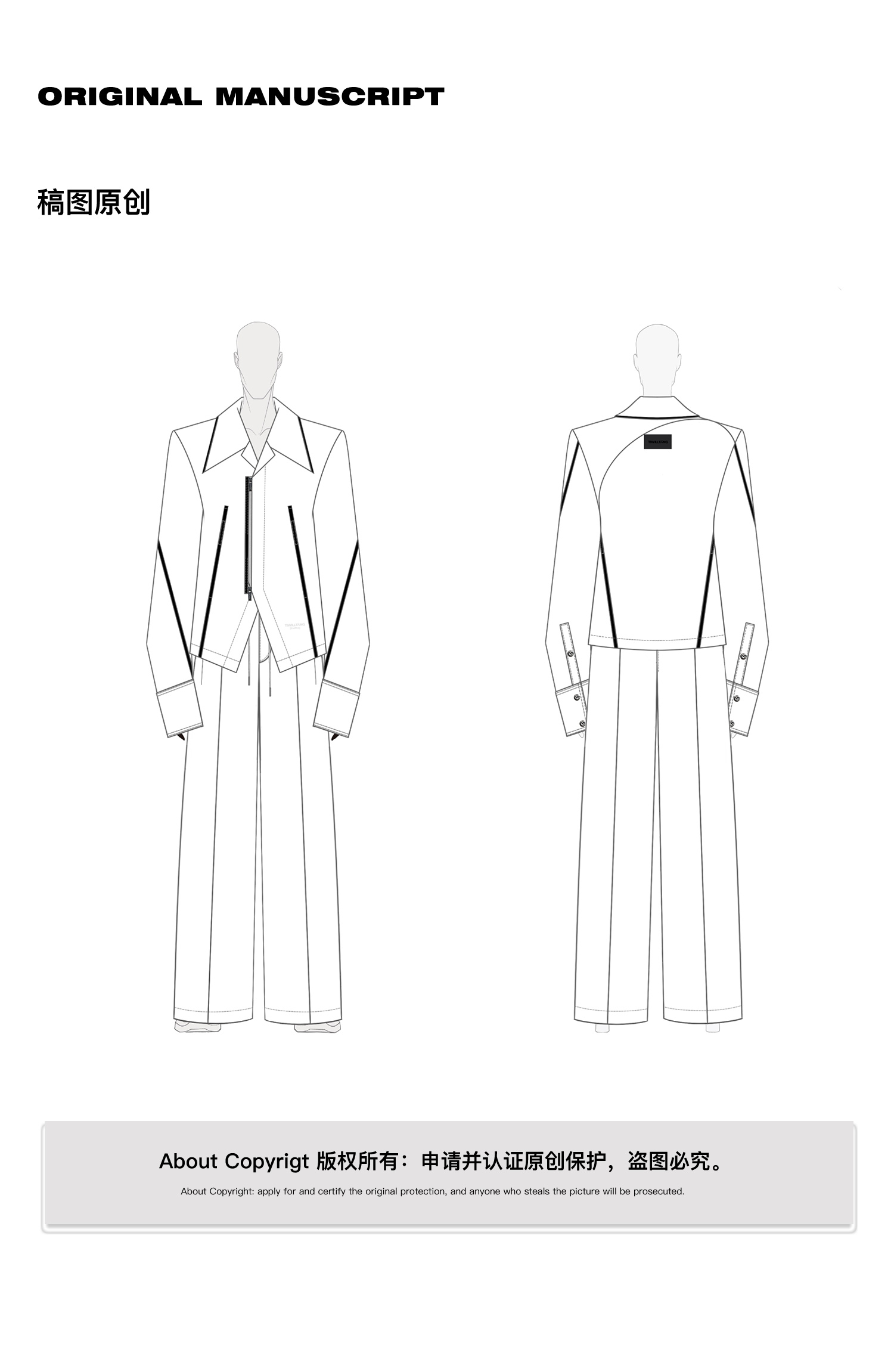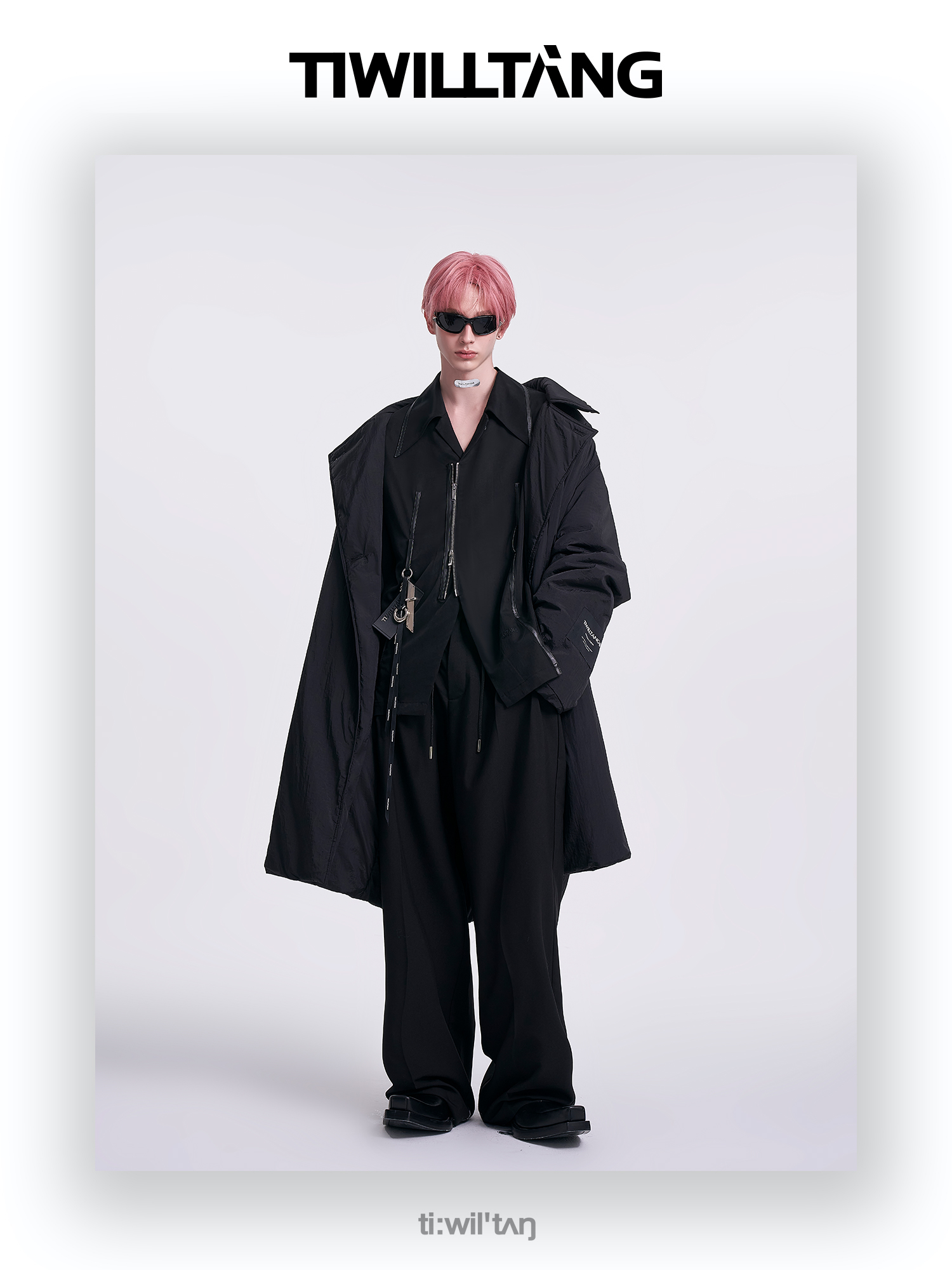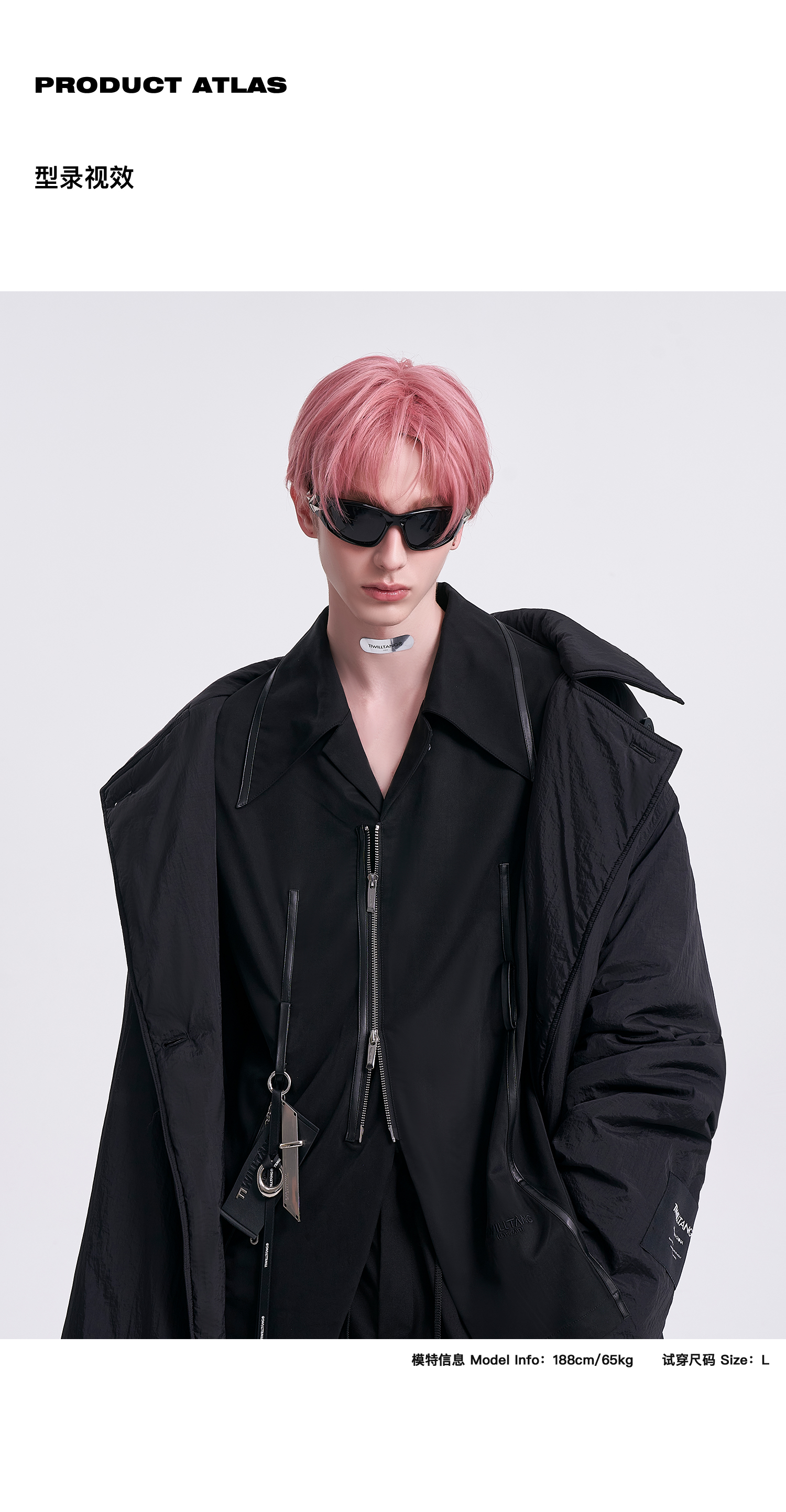 启世录TIWILLTANG“构缘异幕”设计感尖领皮嵌条白色衬衫长袖上衣