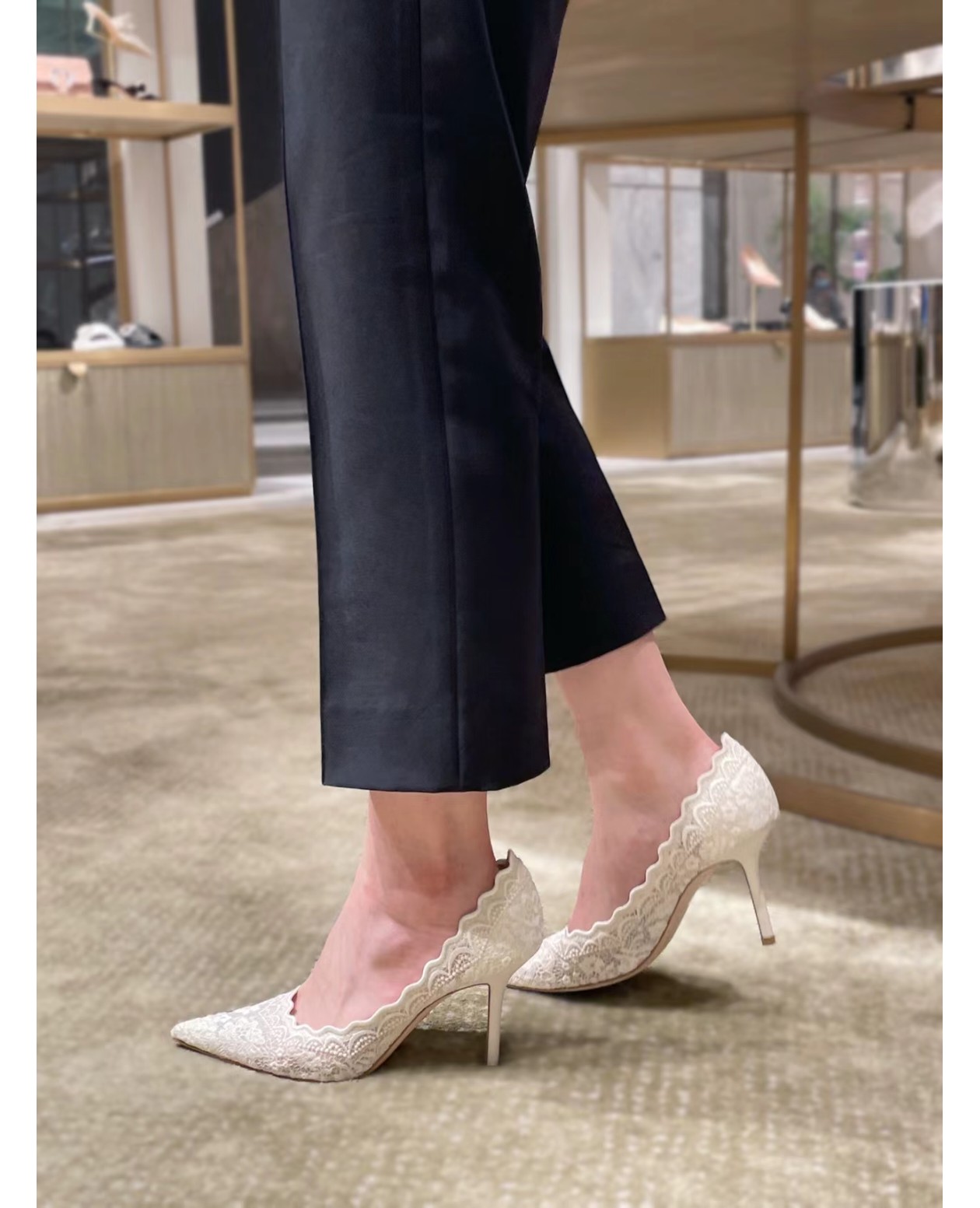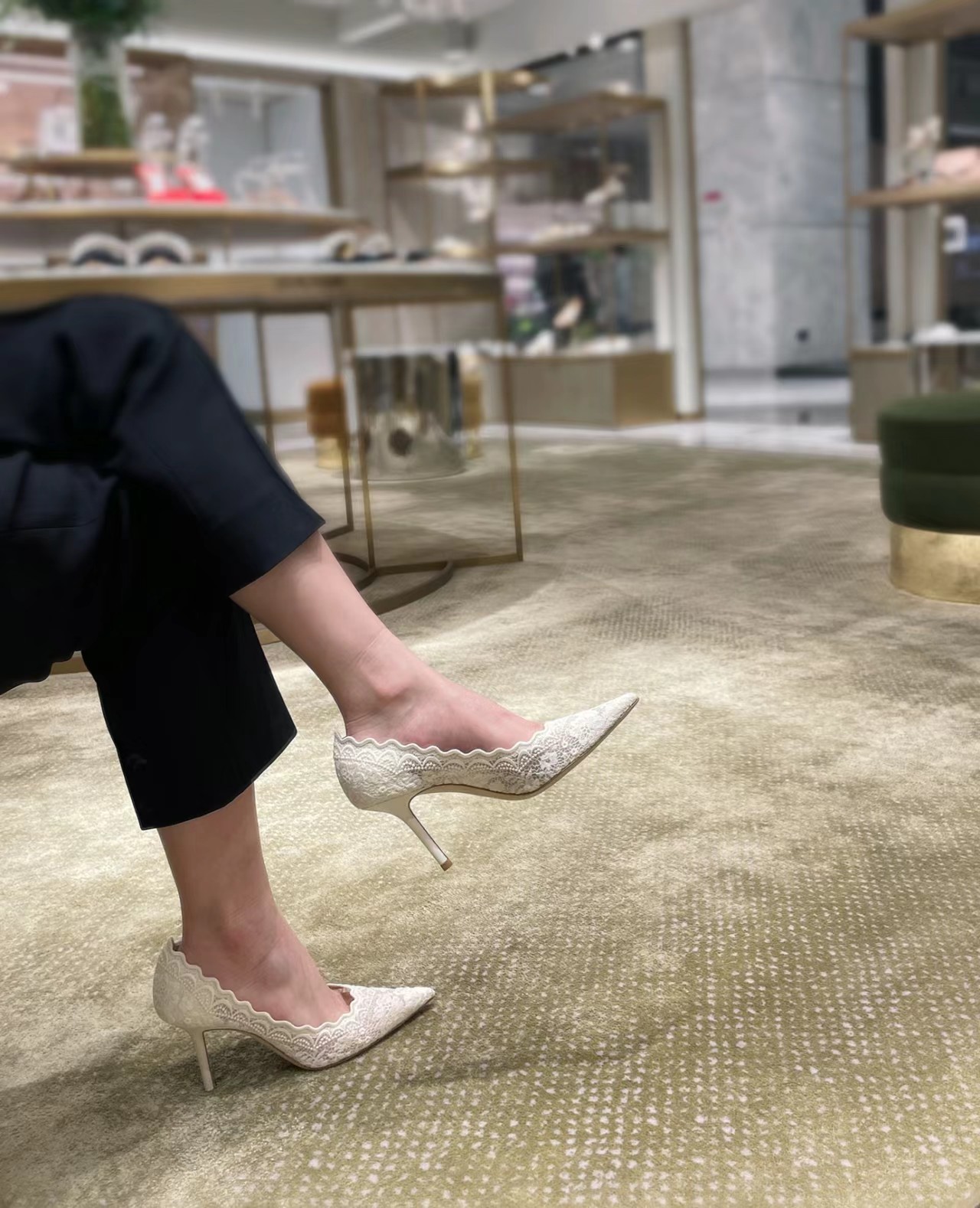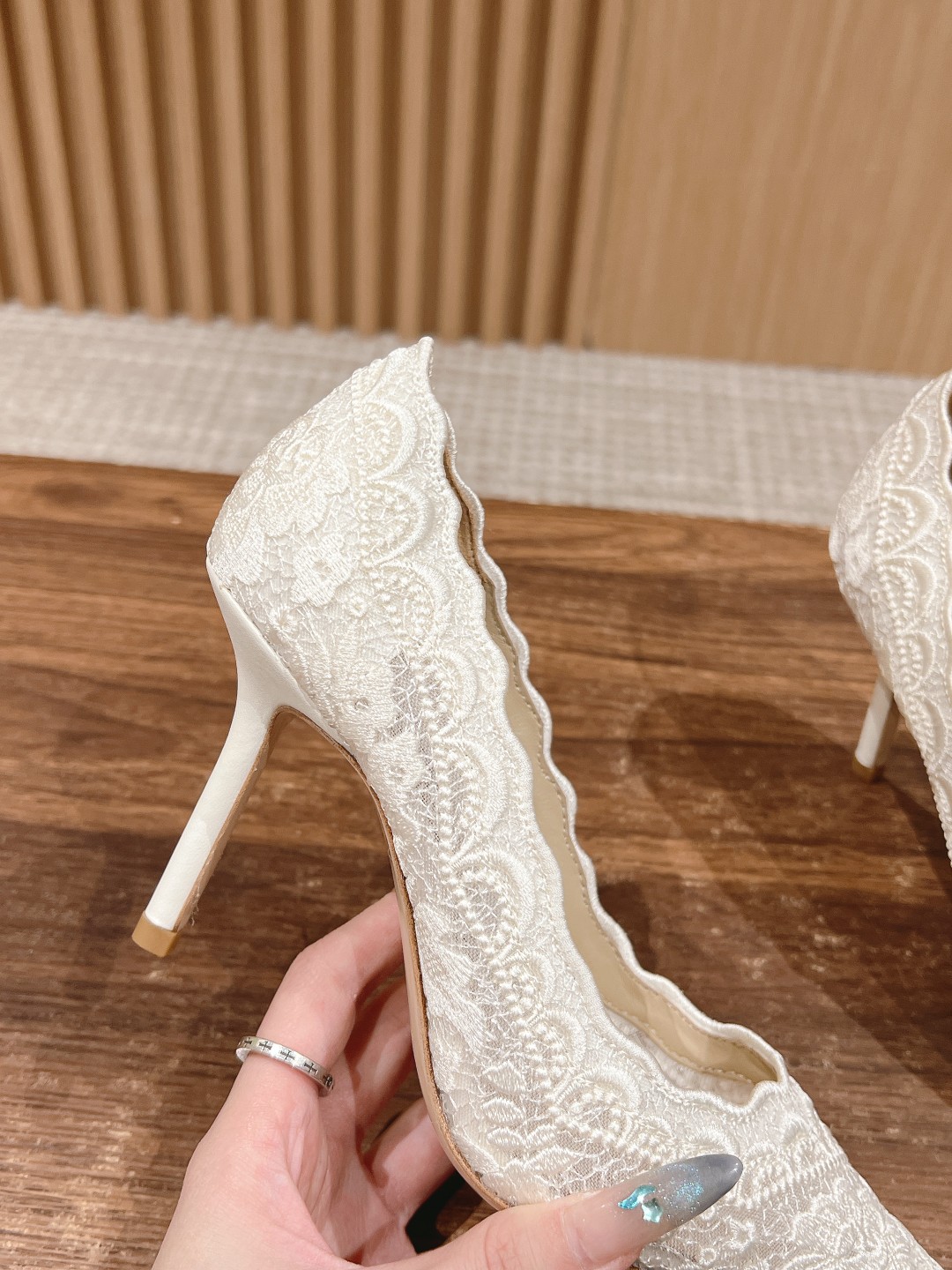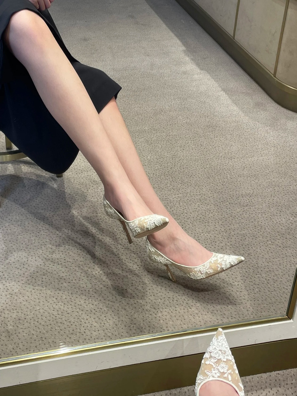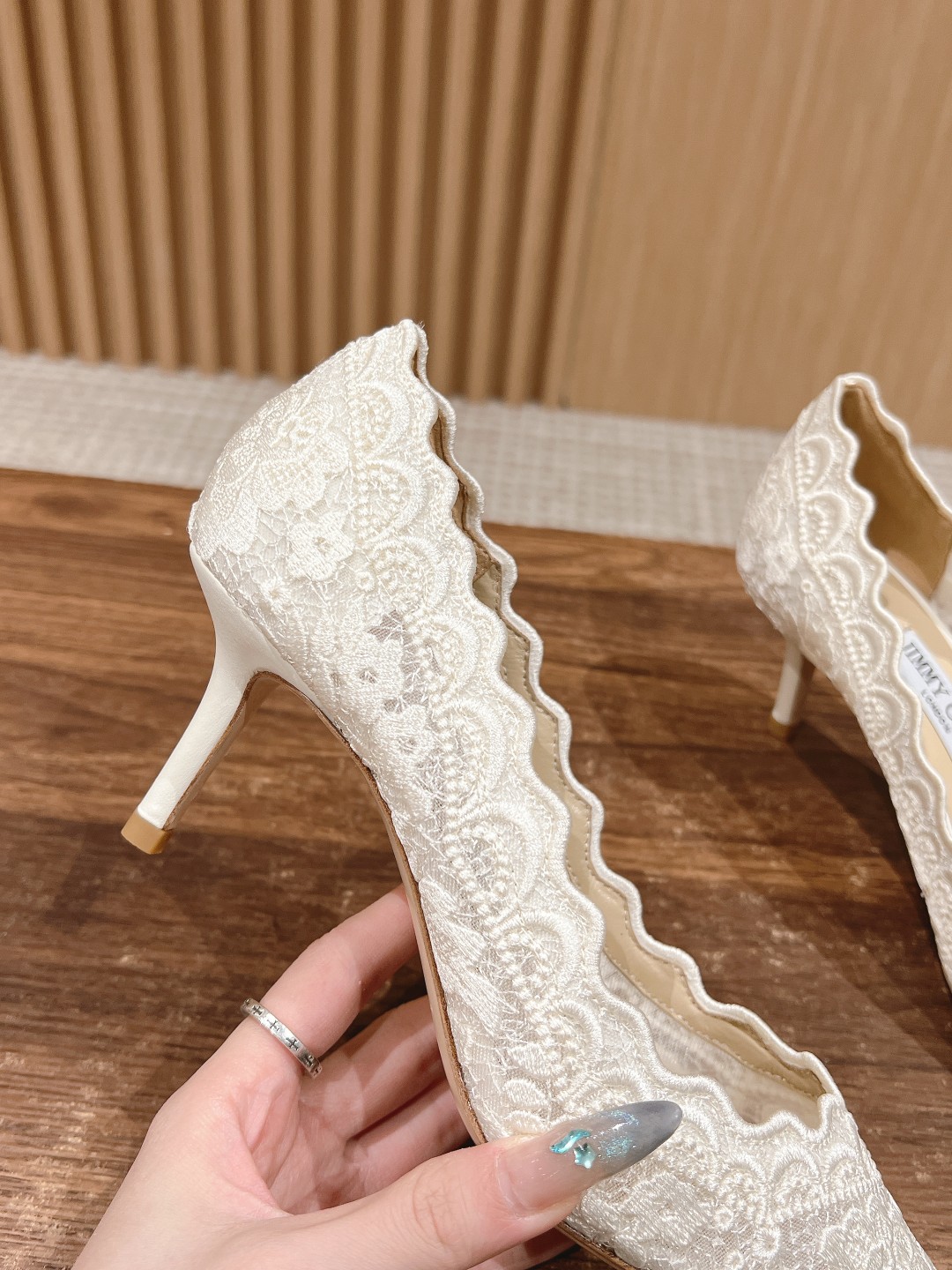 【莞产】𝐉𝐢𝐦𝐦𝐲 𝐂𝐡𝐨𝐨# 周仰杰蕾丝高跟鞋 象牙白刺绣蕾丝给人一种很神秘的感觉 朦胧不清 若隐若现的性感 透出丝丝优雅魅力 婚鞋日常都很可!Size:35-39(40订做不退换)