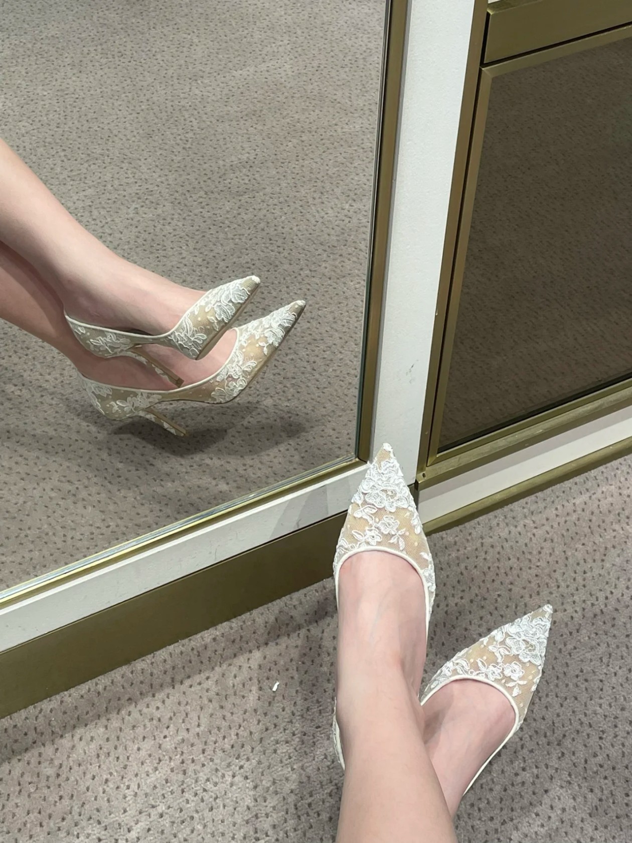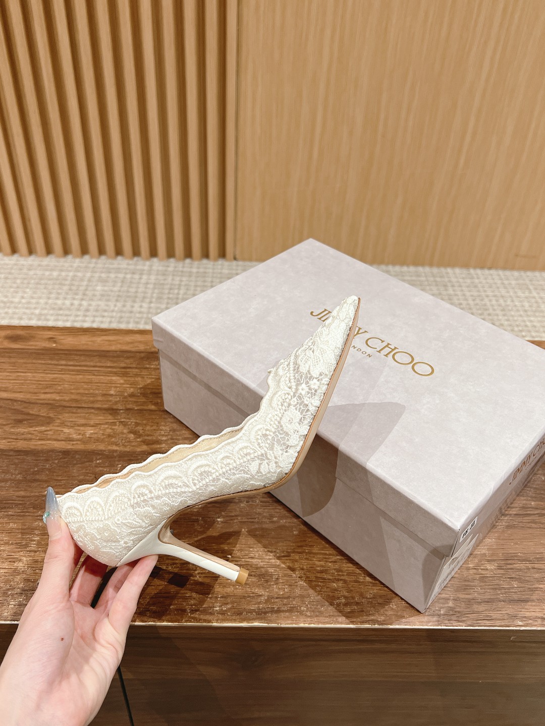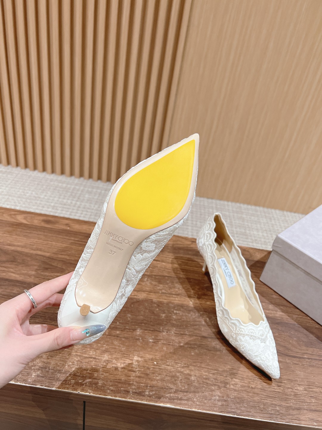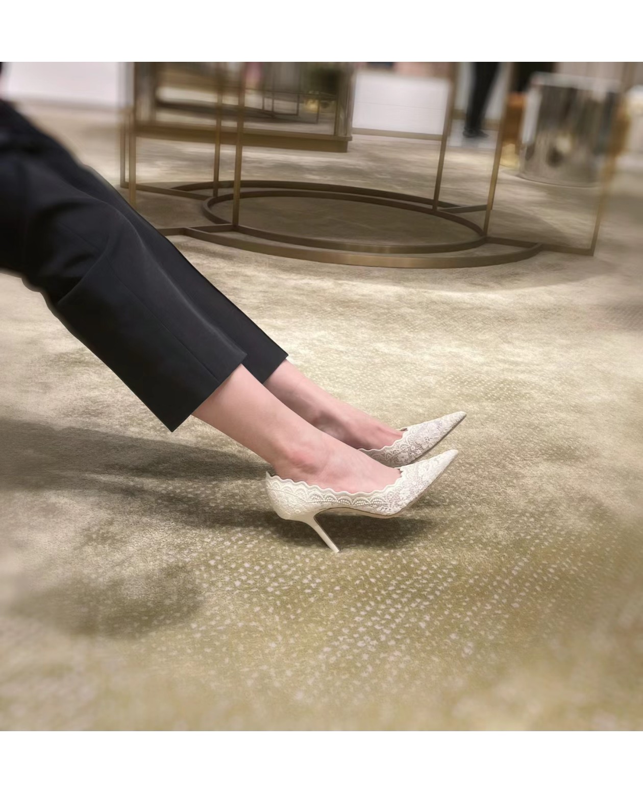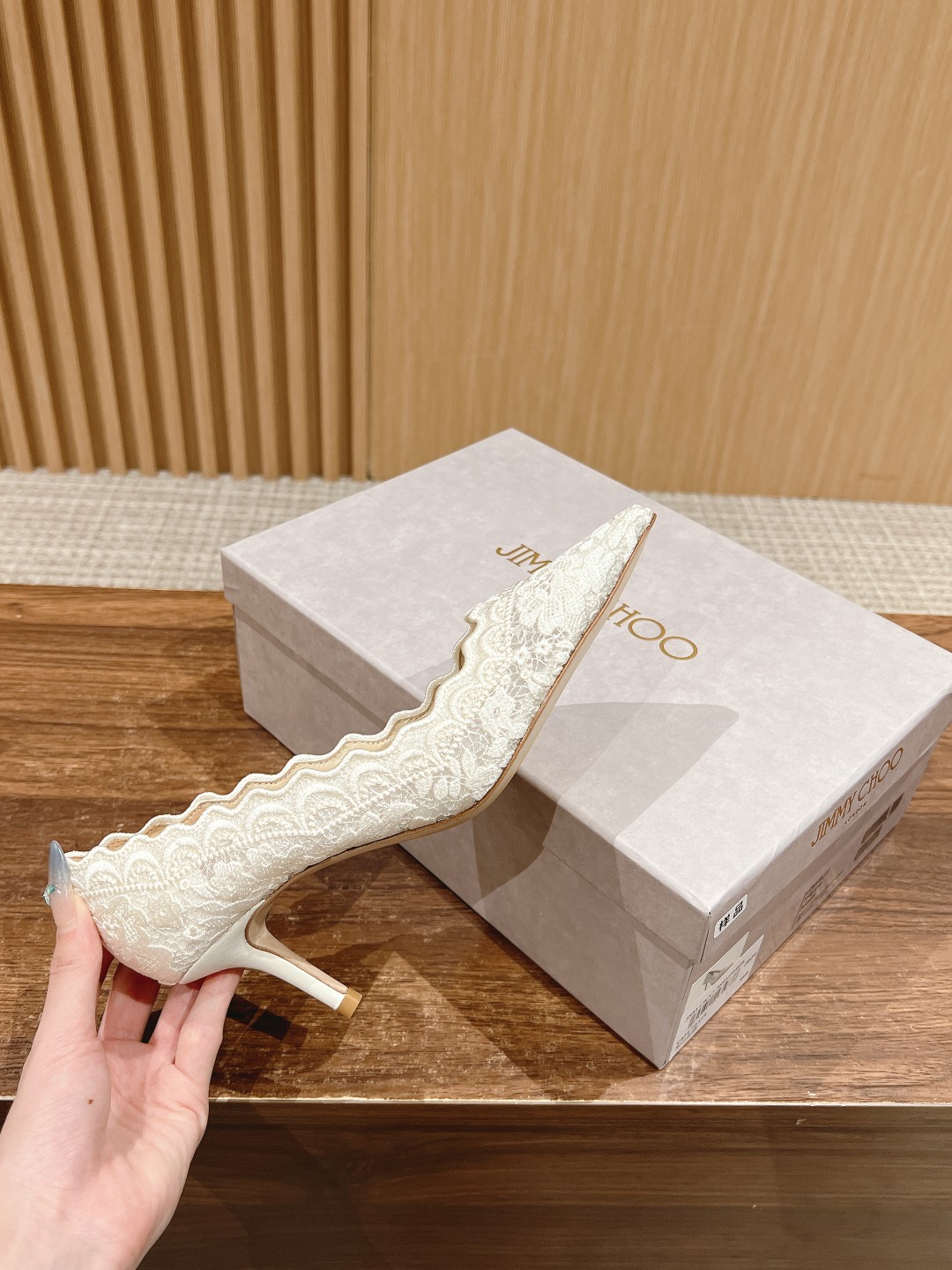 【莞产】𝐉𝐢𝐦𝐦𝐲 𝐂𝐡𝐨𝐨# 周仰杰蕾丝高跟鞋 象牙白刺绣蕾丝给人一种很神秘的感觉 朦胧不清 若隐若现的性感 透出丝丝优雅魅力 婚鞋日常都很可!Size:35-39(40订做不退换)