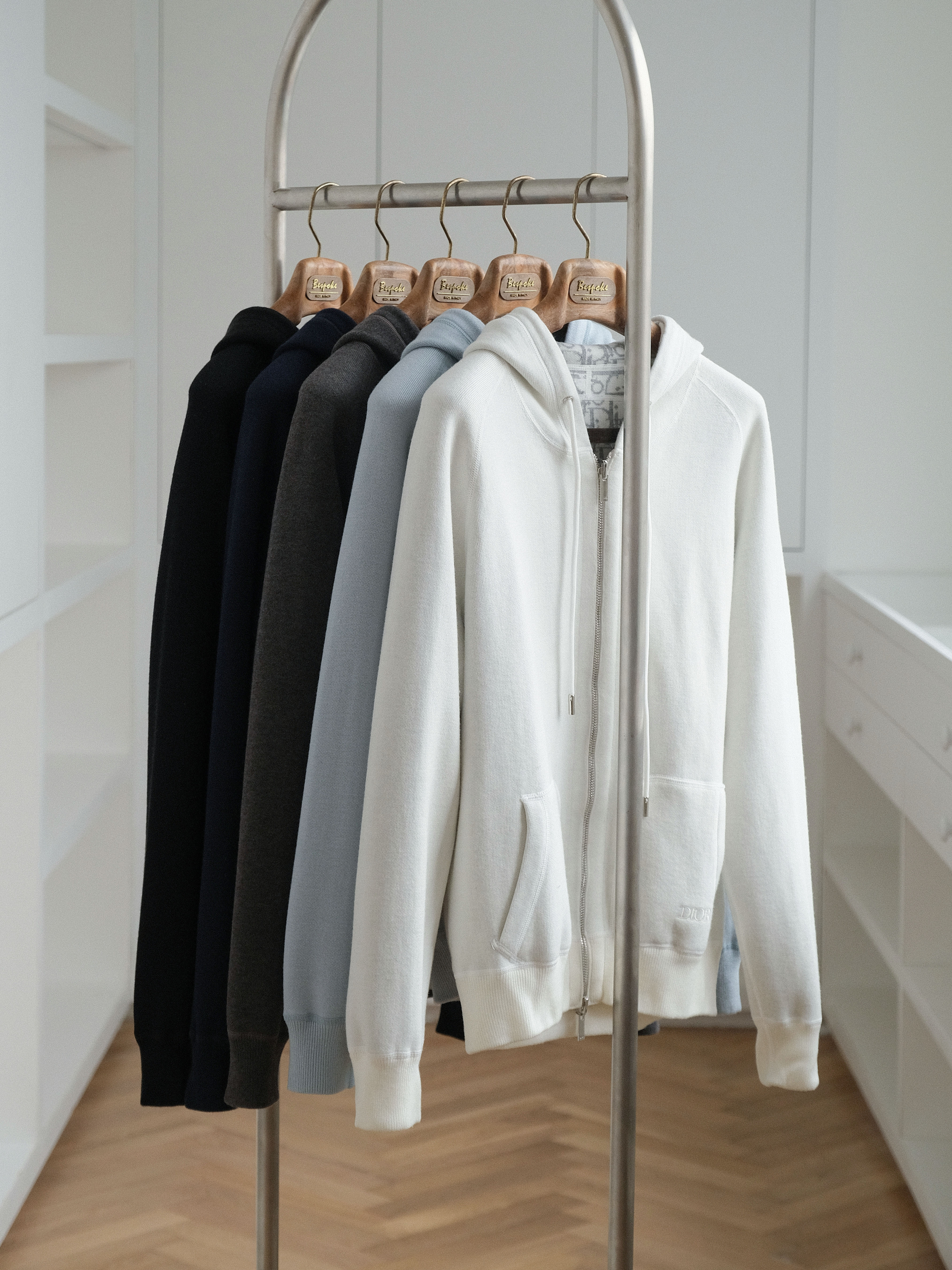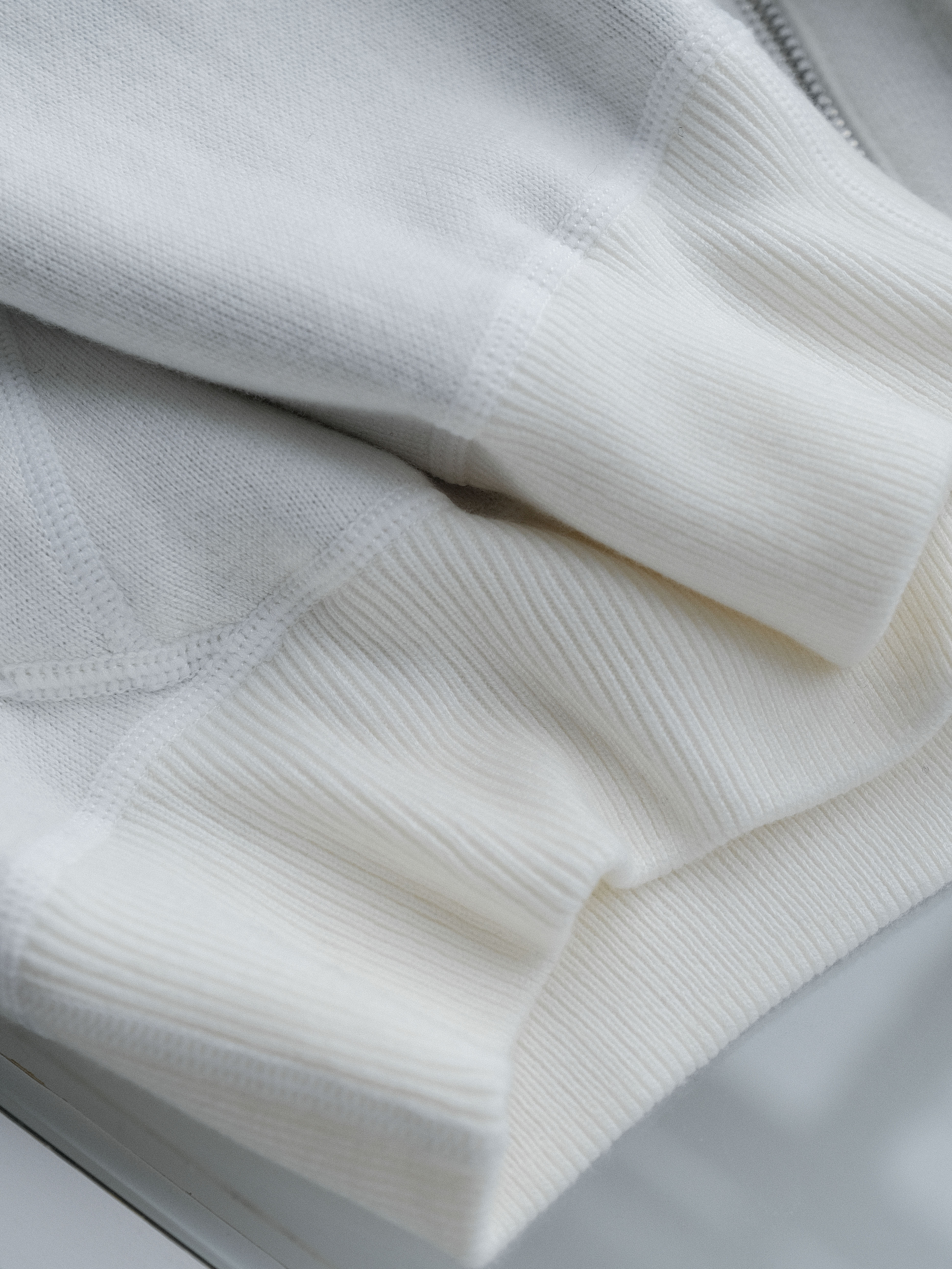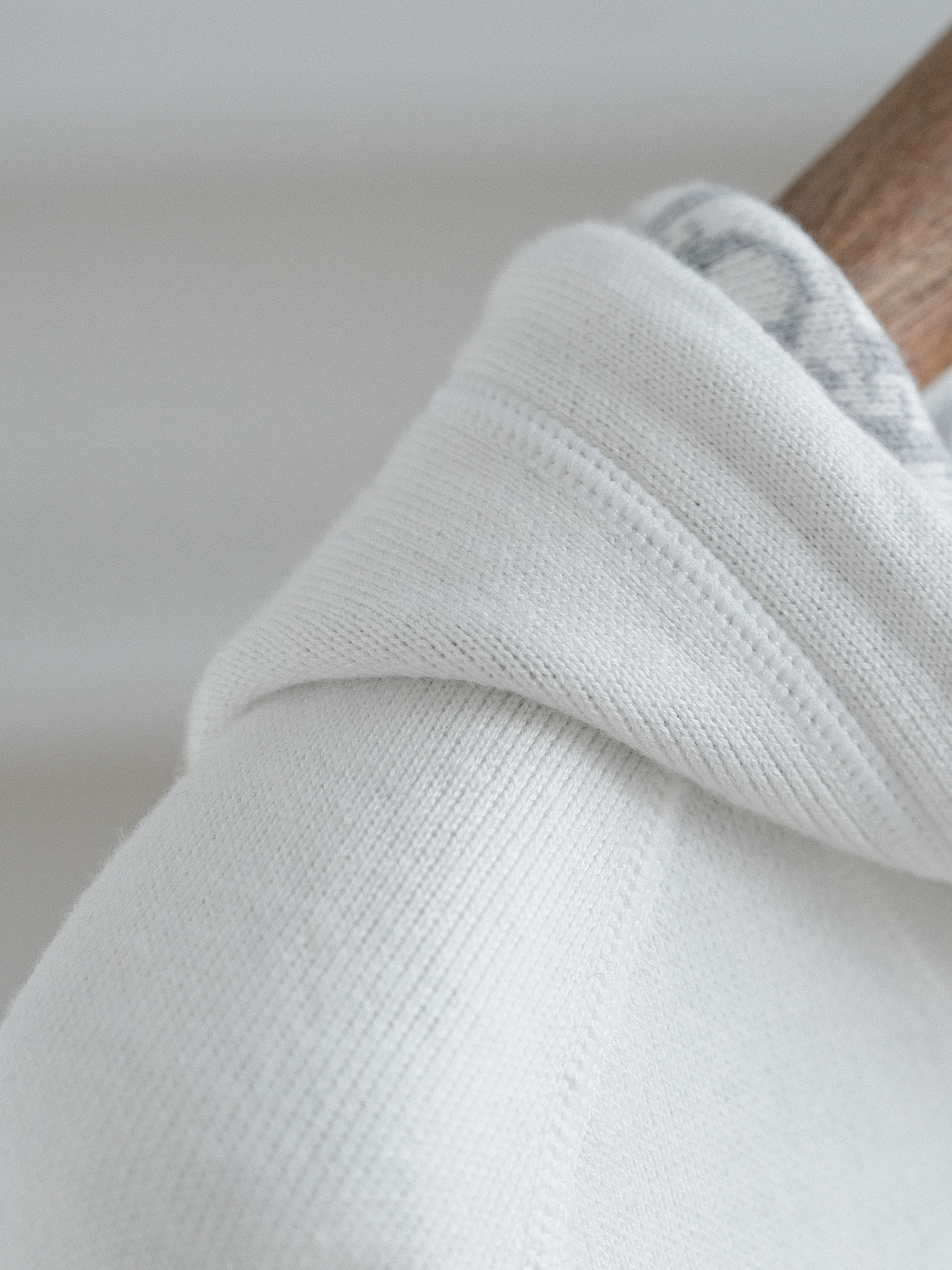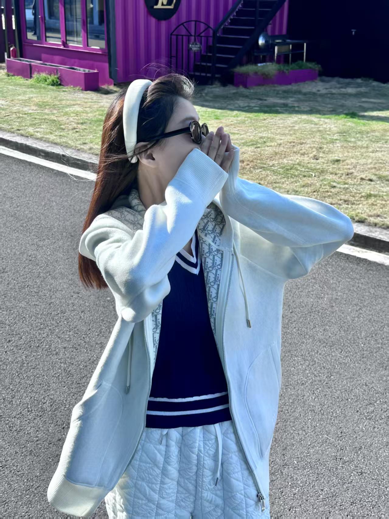 原17,500购入,面料采用乳白色棉质和羊绒混纺面料精心制作,成份为91% 棉+9%羊绒,将经典高订韵致融入基本款单品。正面左口袋饰以DR小刺绣,内侧通体饰以Obliqu针织提花。对板定织全棉罗纹,手感厚实且透气。整衣五金辅料全部按照原版开模定做,抽绳风帽搭配刻字金属吊钟,双向拉链紧固件开合,搭配镌刻DR标志的拉链头,采用进口专机锁边明线车缝,男女同款,修身版型。