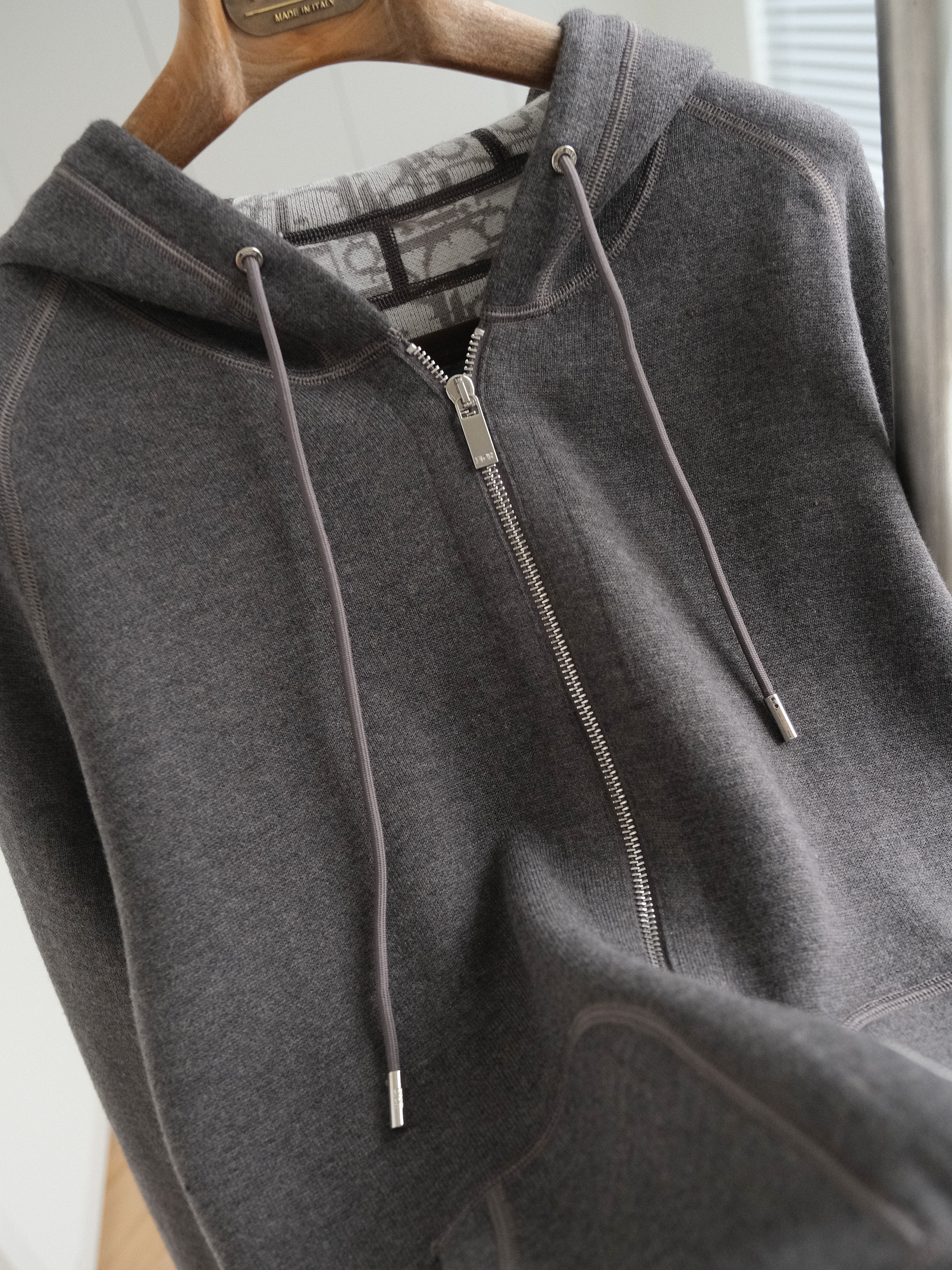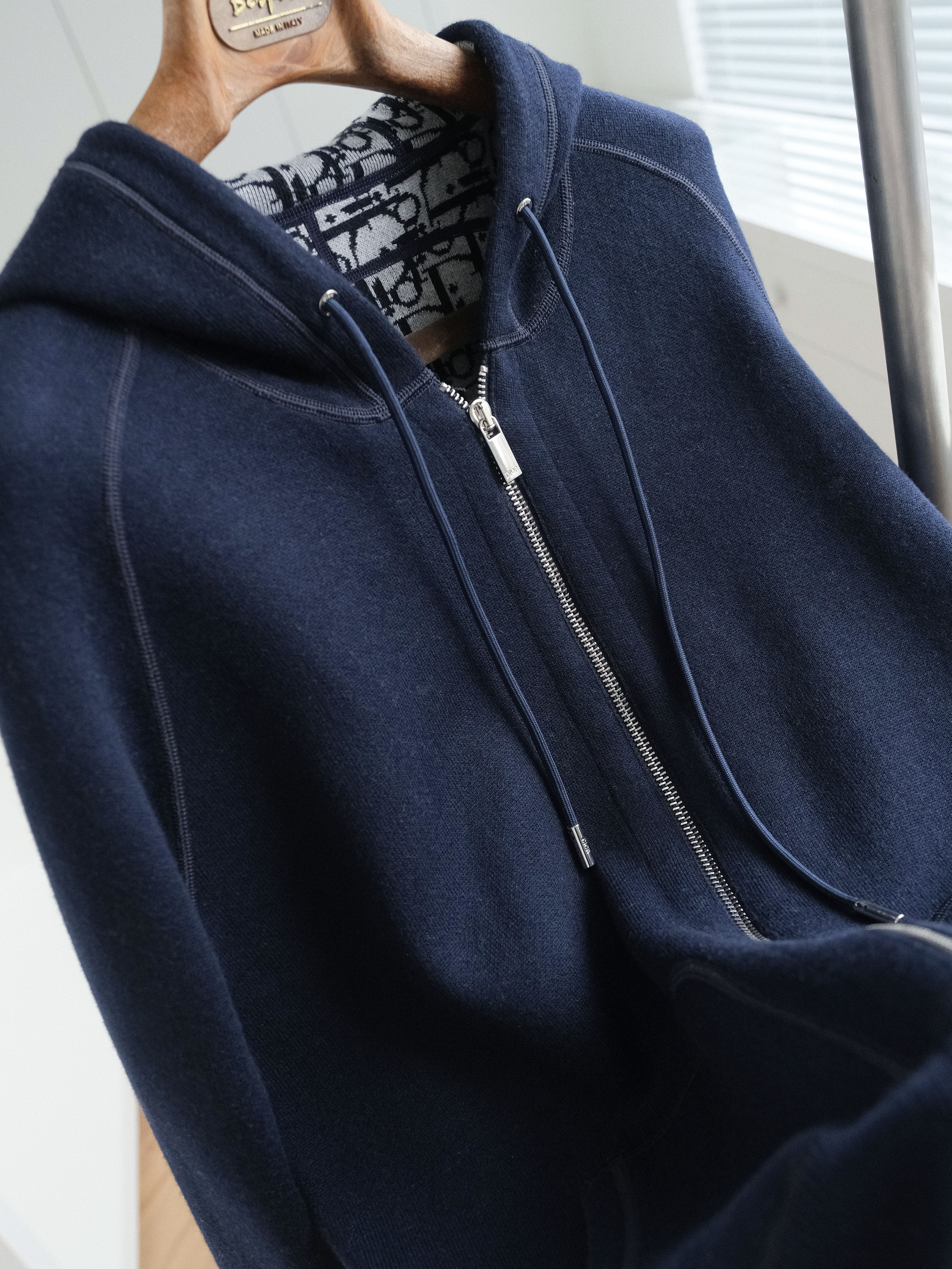 Dio*迪奥 提花羊绒针织连帽卫衣