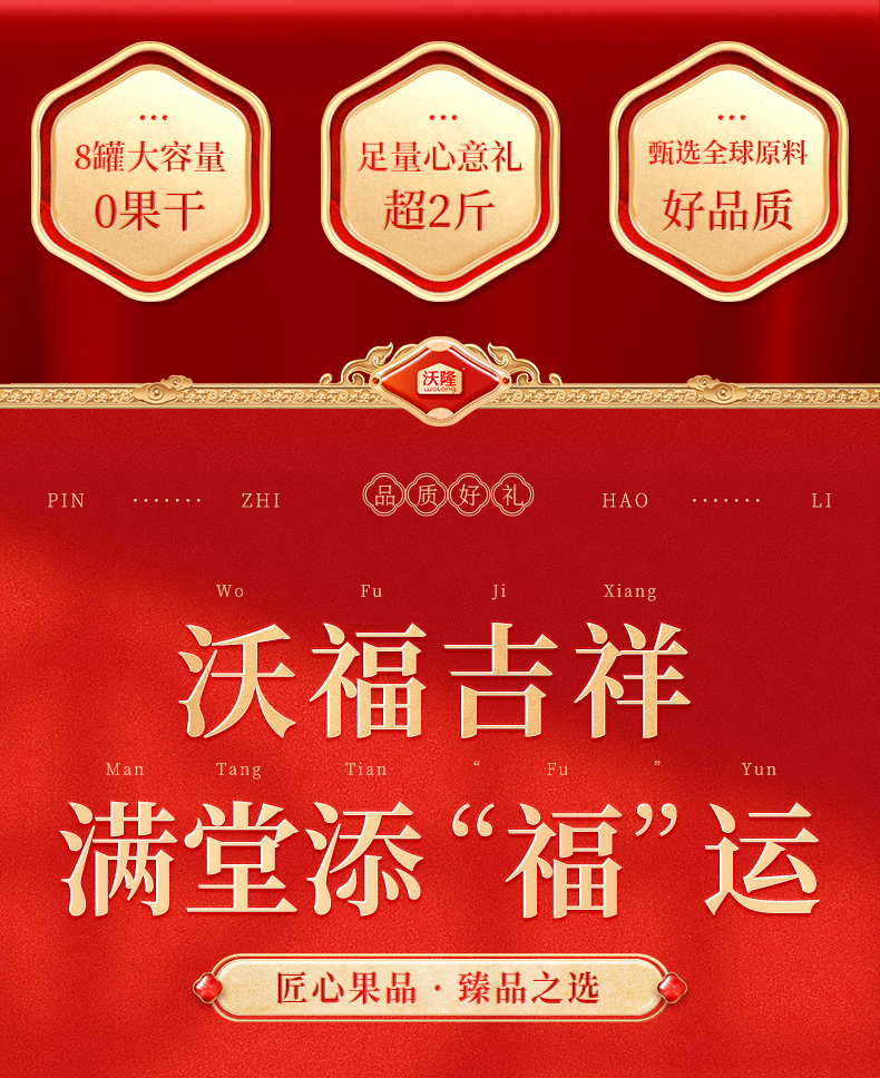 沃隆1.40kg沃福满堂8罐坚果礼盒 商品缩略图0 沃隆1.40kg沃福满堂8罐坚果礼盒 商品缩略图1 沃隆1.40kg沃福满堂8罐坚果礼盒 商品缩略图2 沃隆1.40kg沃福满堂8罐坚果礼盒 商品缩略图3 沃隆1.40kg沃福满堂8罐坚果礼盒 商品缩略图4 沃隆1.40kg沃福满堂8罐坚果礼盒 商品缩略图5