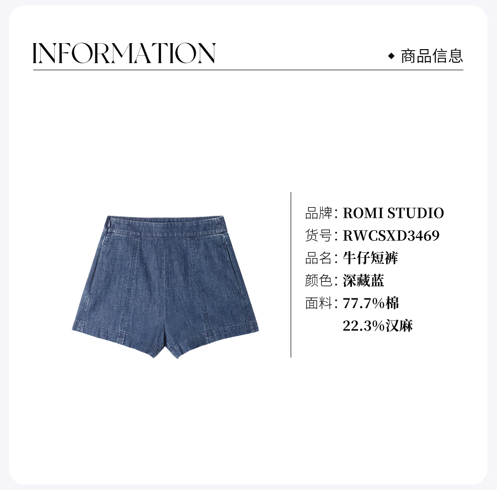 ROMI STUDIO“汉麻牛仔”汉麻棉混纺复古轻薄牛仔短裤 RWCSXD3469