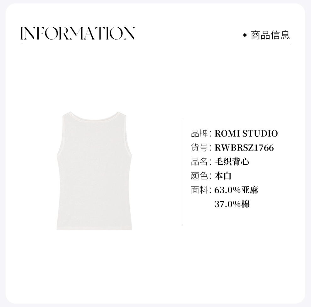 ROMI STUDIO“慵懒随性”亚麻棉混纺轻薄肤感一字领背心 RWBRSZ1766
