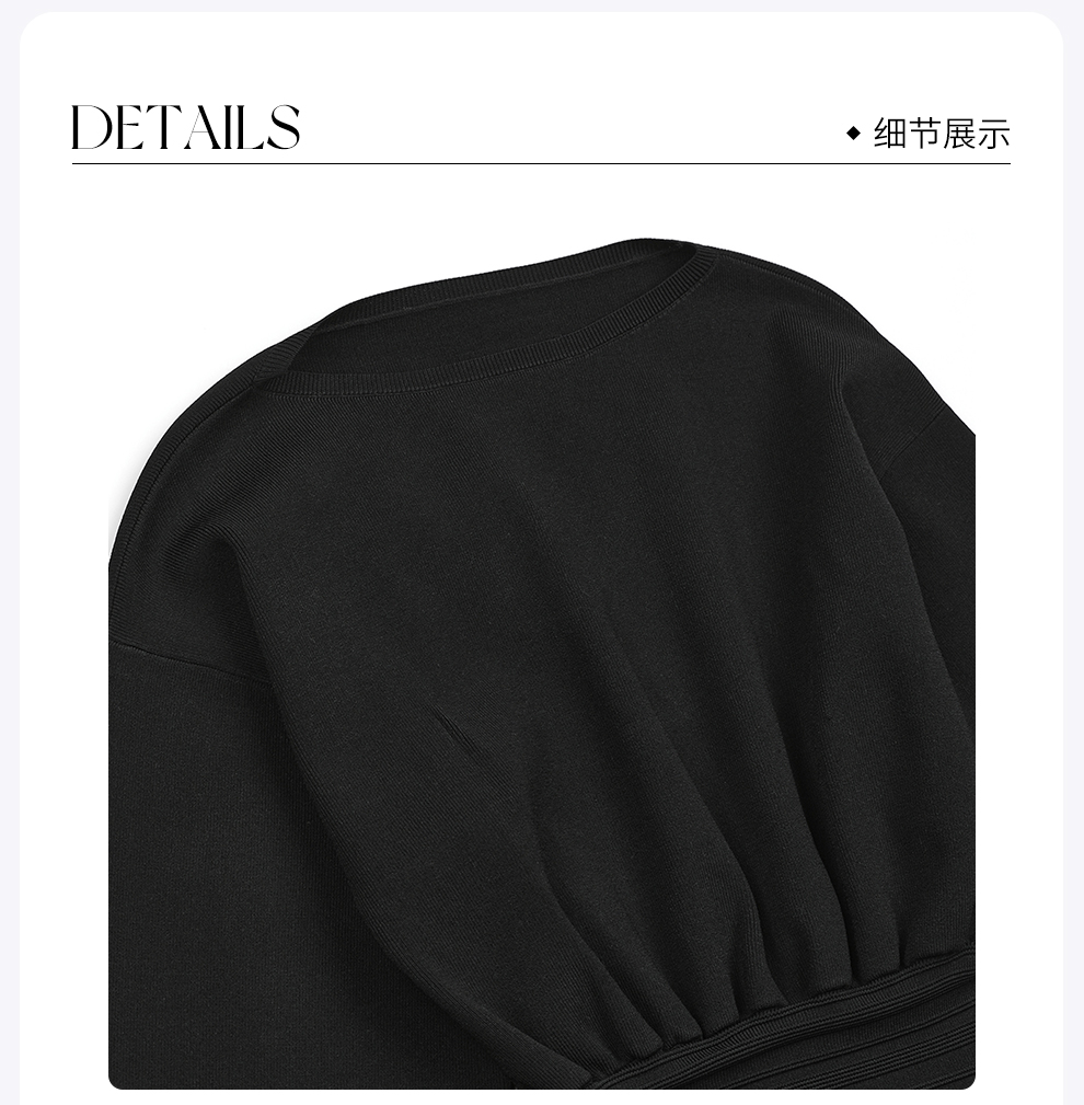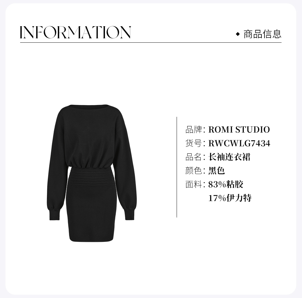 ROMI STUDIO“ 法式赫本”伊力特多层收褶弹力毛织连衣裙RWCWLG7434