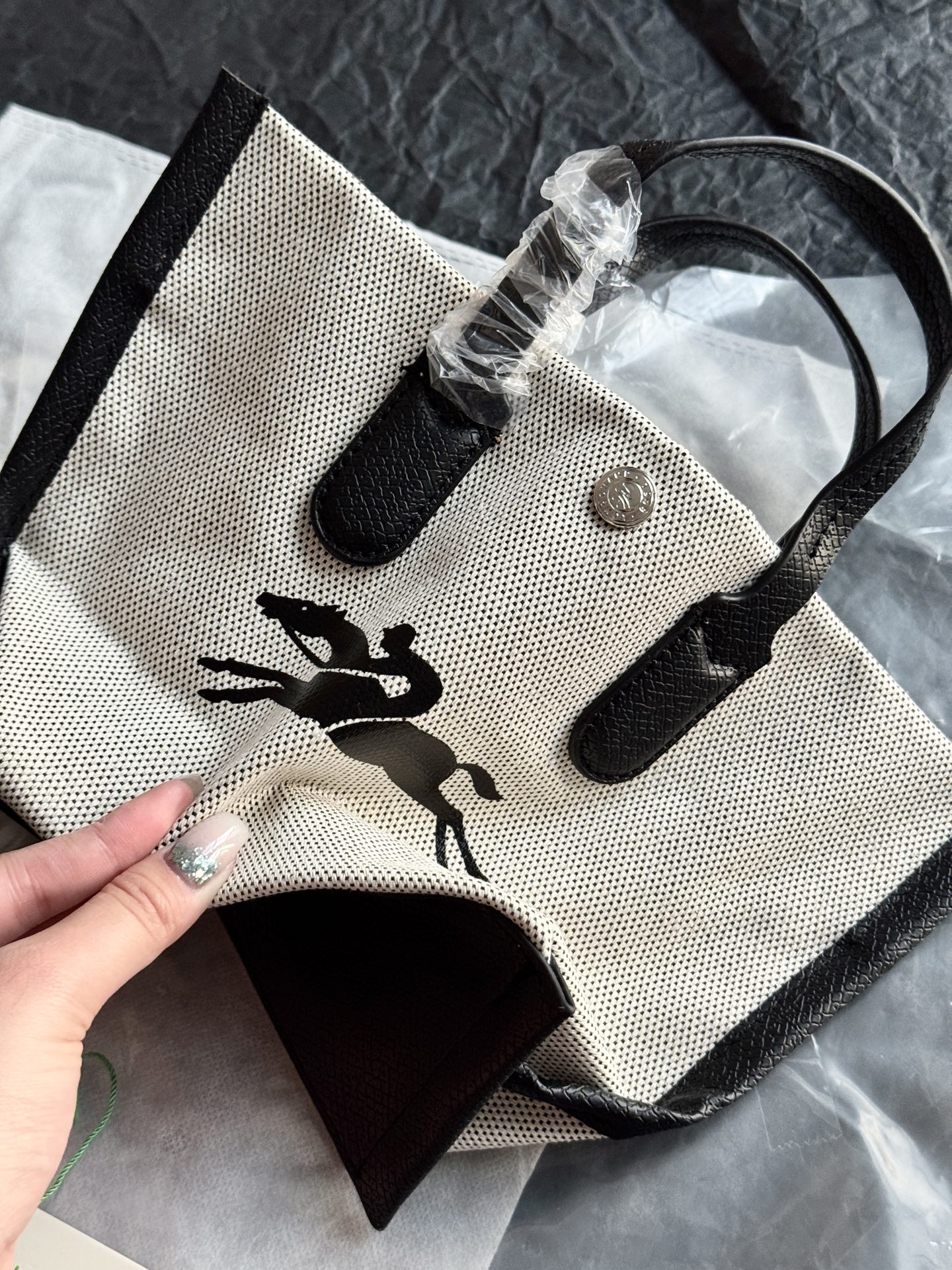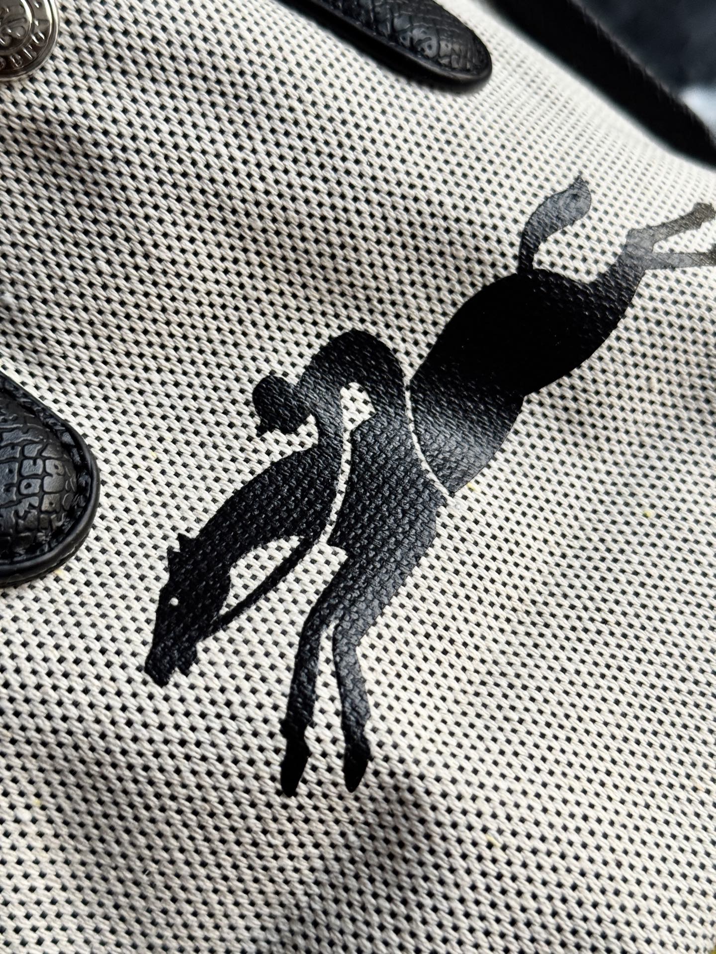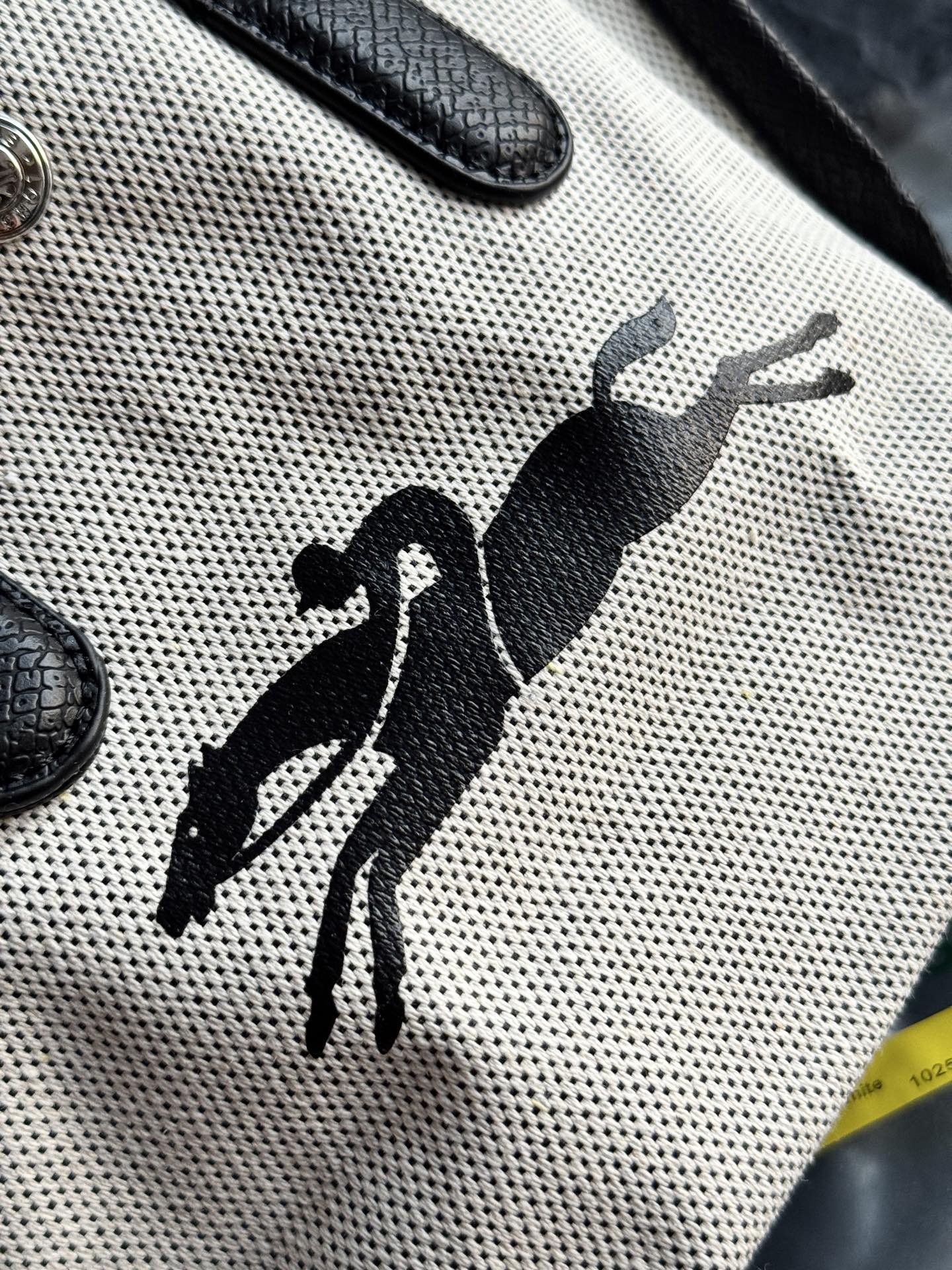托特包采用棉质帆布材质,搭配牛皮饰边,大号骑士和奔马印花占据C位,配有可拆卸肩带,手提或斜挎,精简设计尽显现代时尚魅力。虽然是帆布的材质,但是包包外形很挺括有型,实用性真的不用怀疑,能装!底部是皮质的,装的重一点也不会垂下来变形