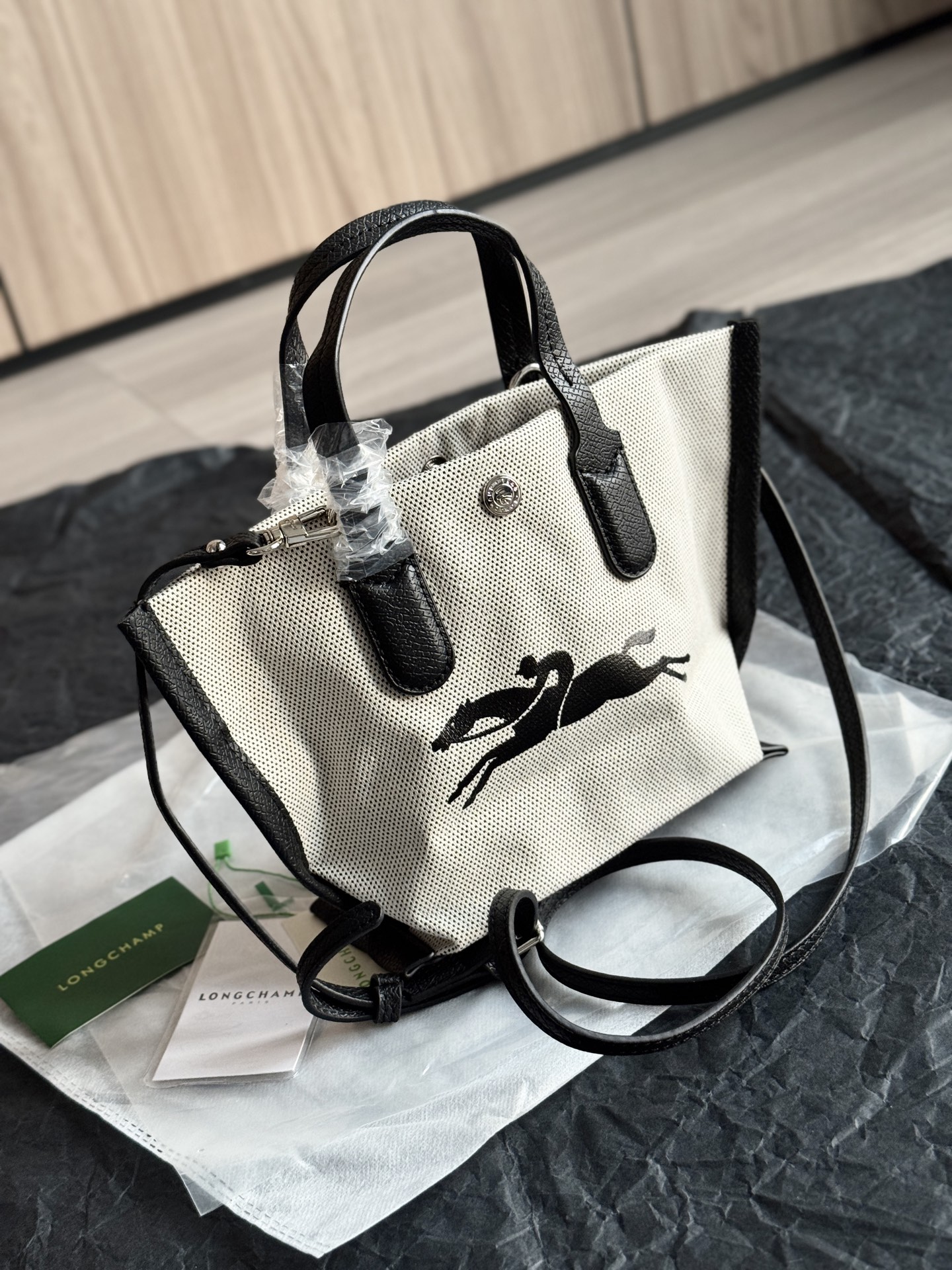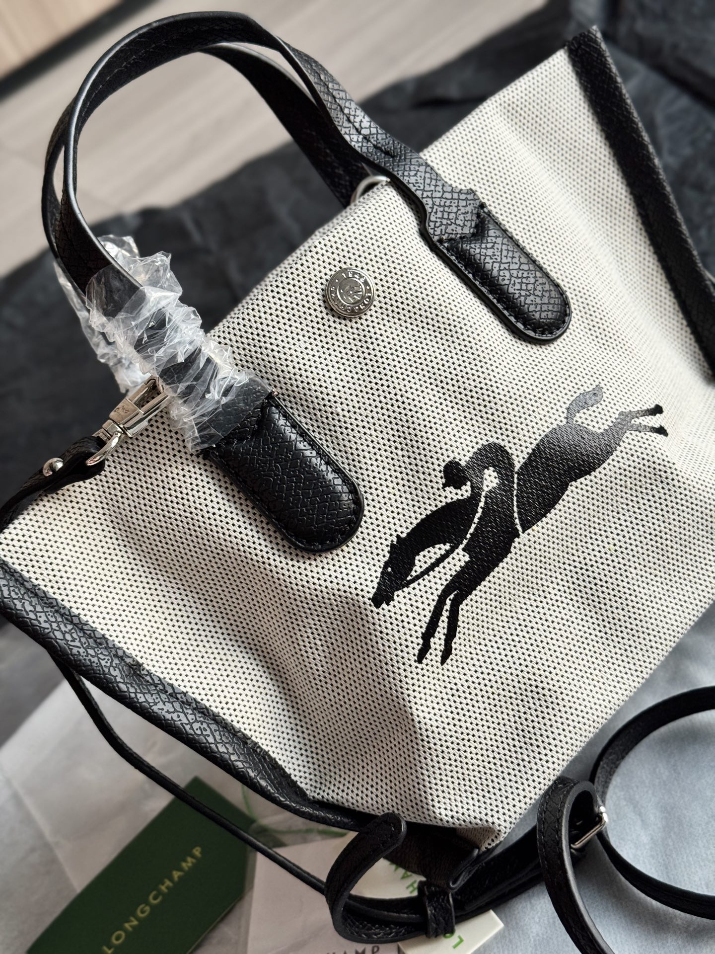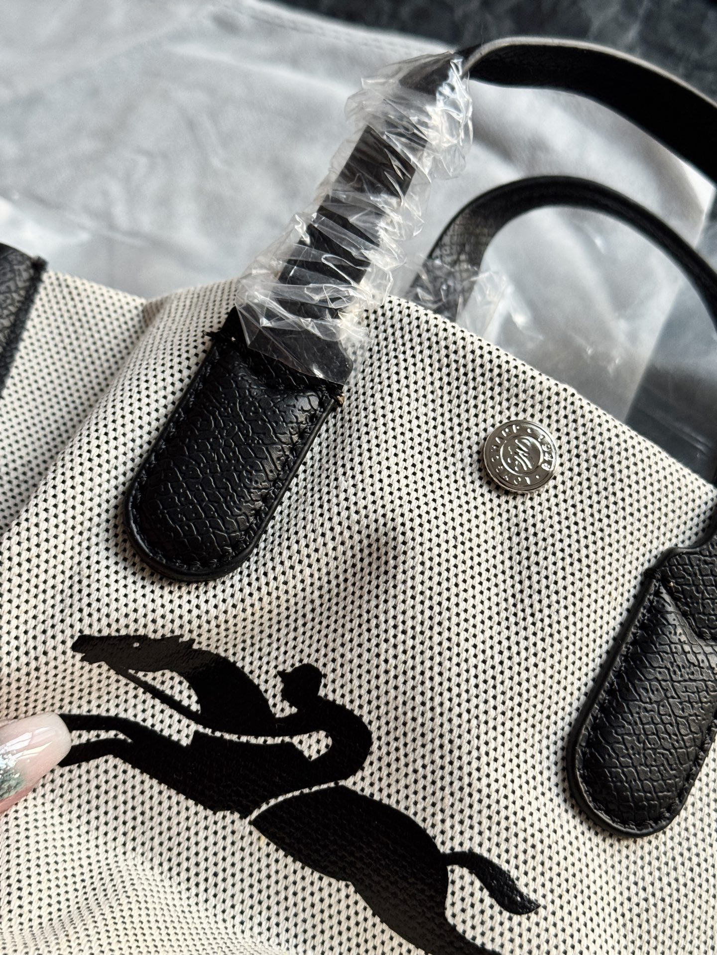 托特包采用棉质帆布材质,搭配牛皮饰边,大号骑士和奔马印花占据C位,配有可拆卸肩带,手提或斜挎,精简设计尽显现代时尚魅力。虽然是帆布的材质,但是包包外形很挺括有型,实用性真的不用怀疑,能装!底部是皮质的,装的重一点也不会垂下来变形