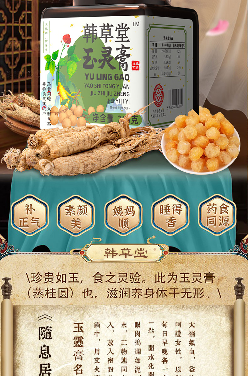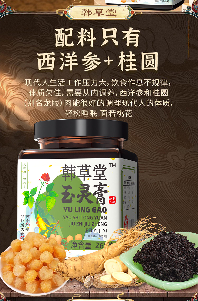 韩草堂玉灵膏蒸桂圆蒸桂膏玉灵膏韩草堂家西洋参官方旗舰店正品