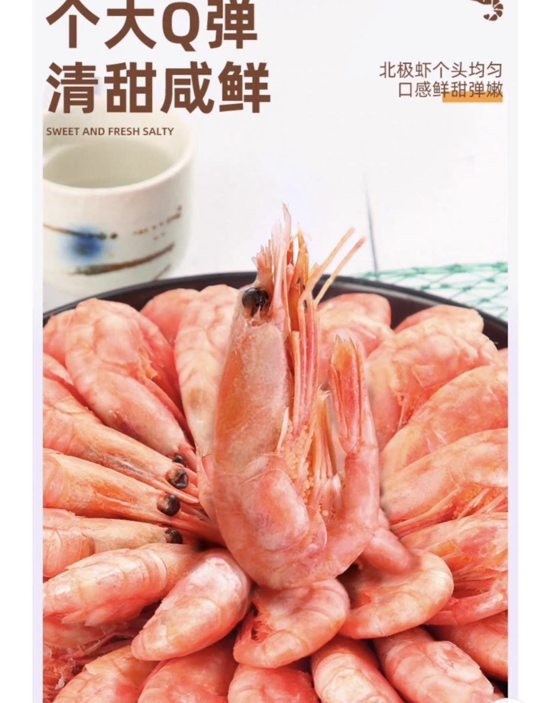 大海主义北极甜虾纯净野生,鲜甜弹嫩