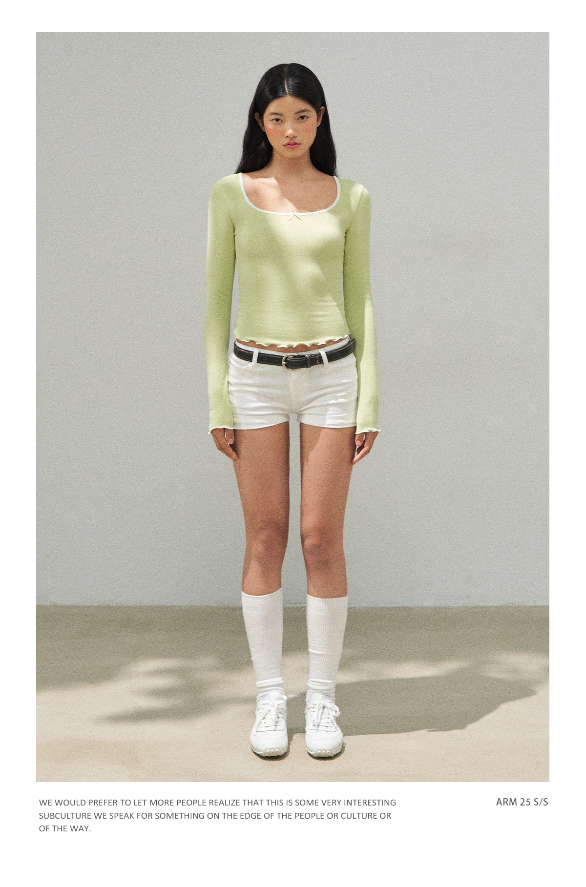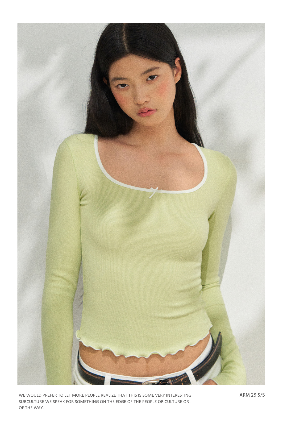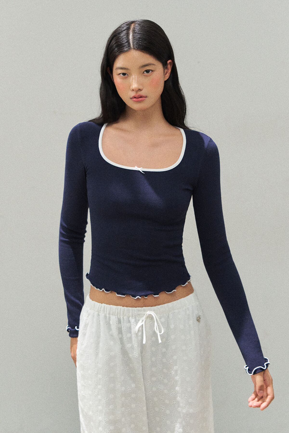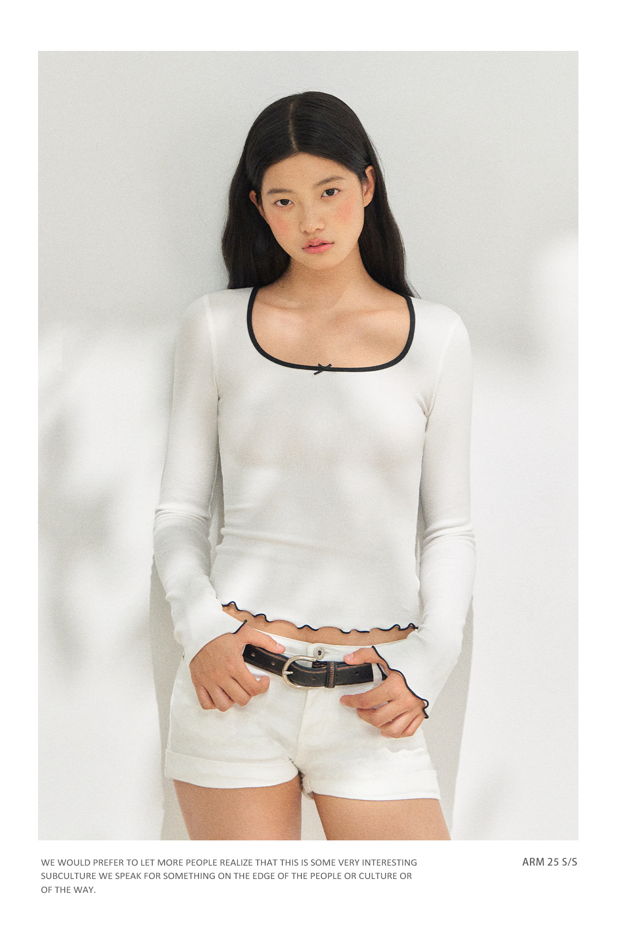 Ariseism 美式复古短款挖肩撞色领长袖t恤女秋季新款修身上衣
