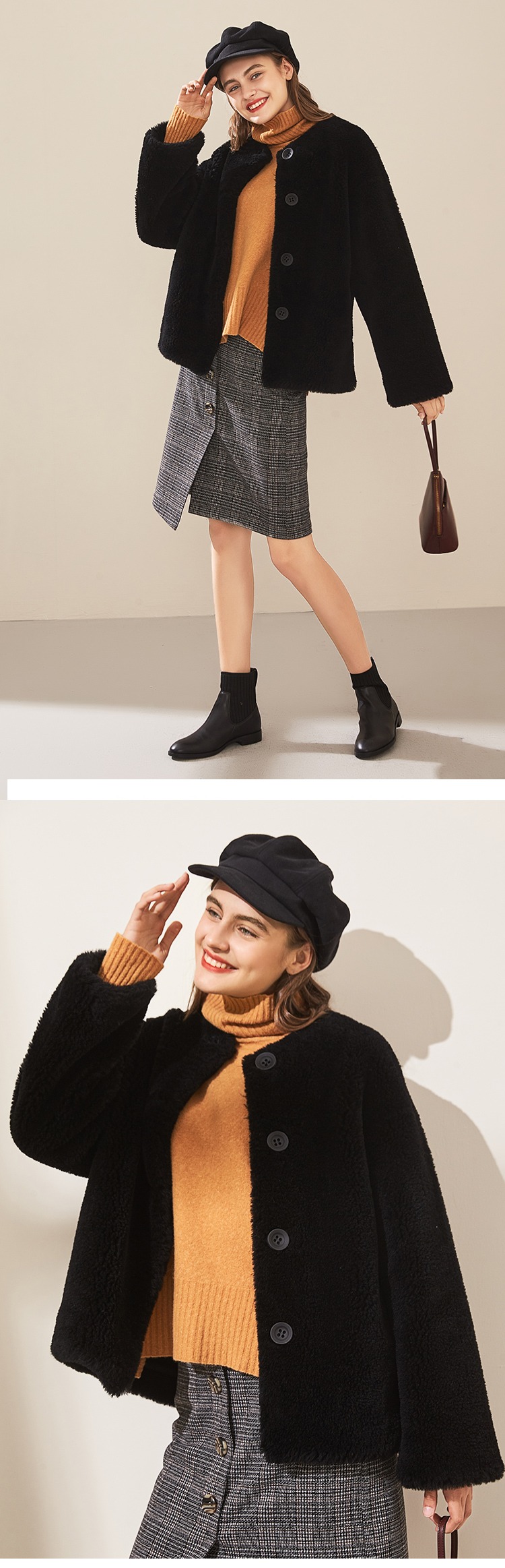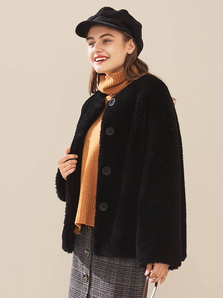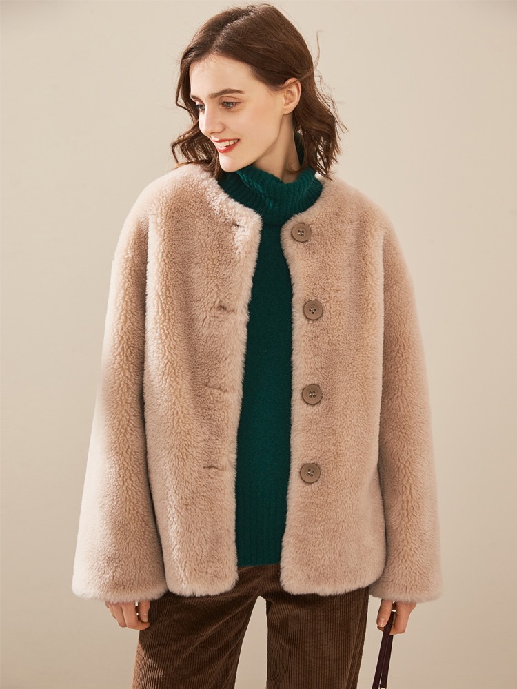 【2023新款】羊剪绒大衣女短款皮草外套2023冬季新款颗粒绒小个子羊毛外套