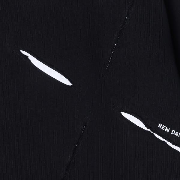 86165夏季新款时尚个性韩版纯色破洞圆领短袖T恤情侣潮流小众设计上衣