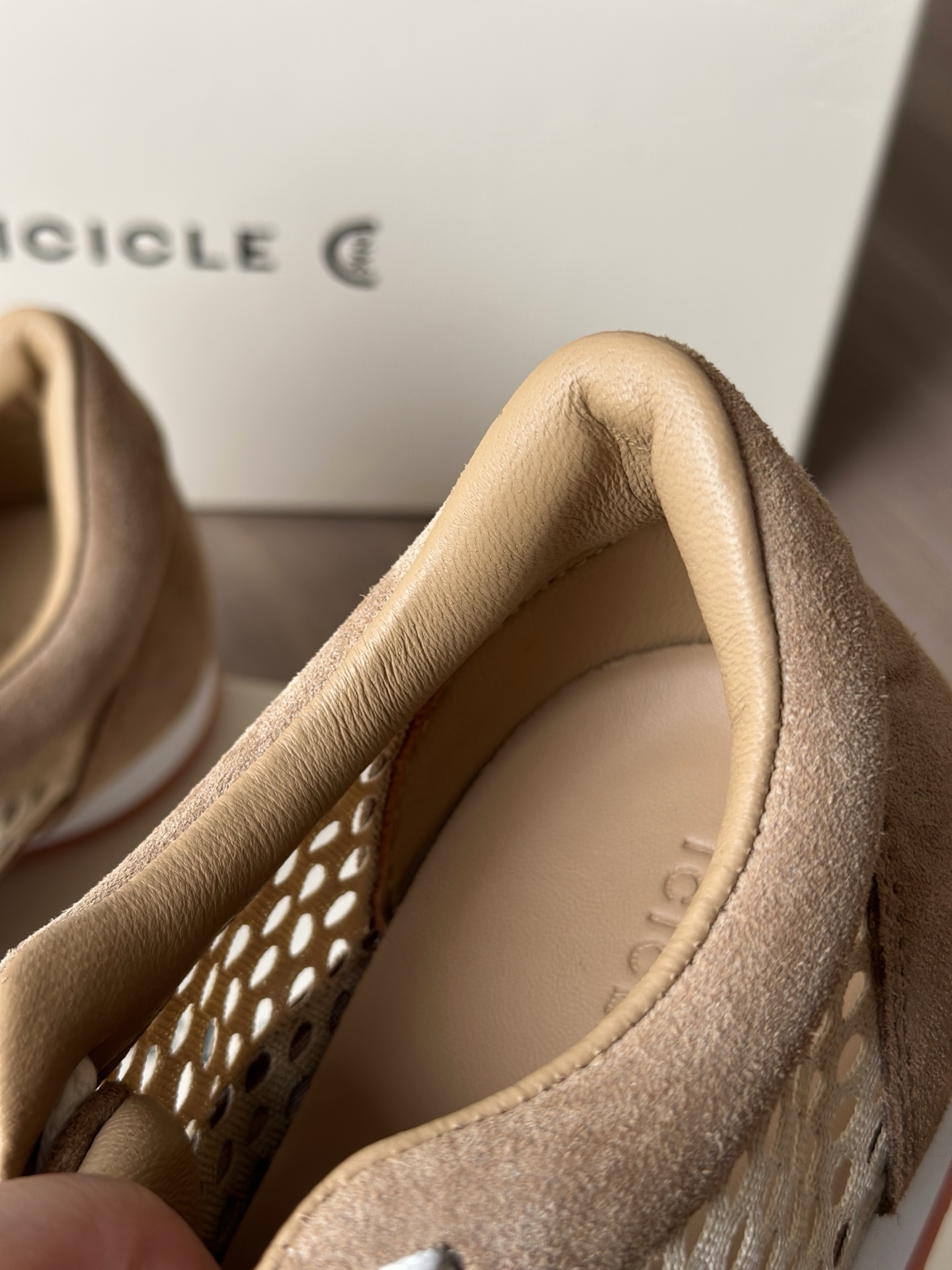 鞋口以及垫脚是进口柔软的小牛皮 不夸张的说 就算不穿袜子都丝毫感受不到磨脚… 里层棉布材质非常透气,舒适透气又防臭~