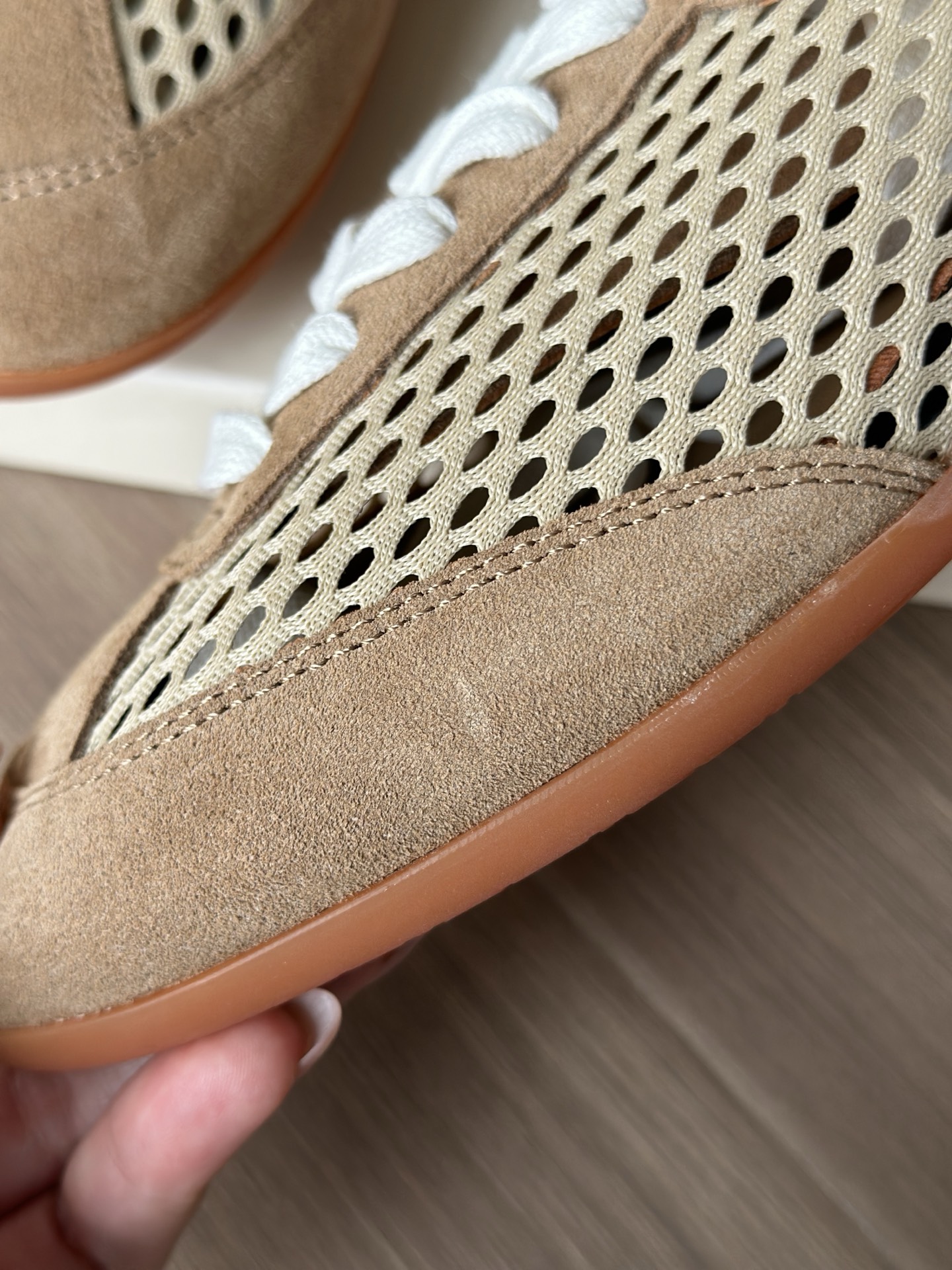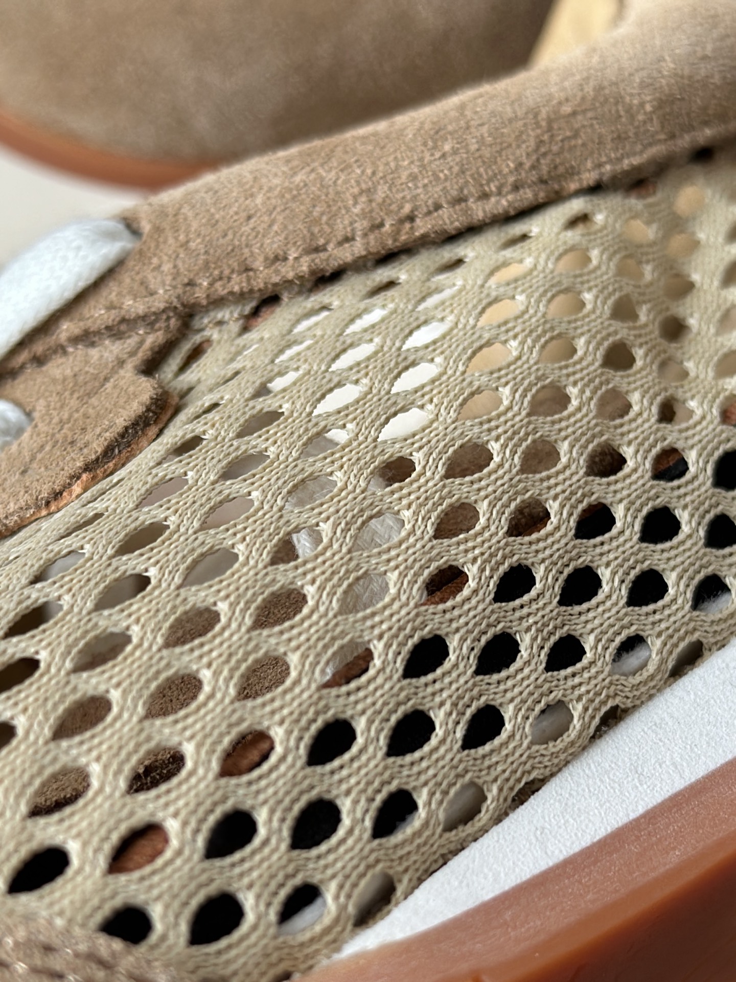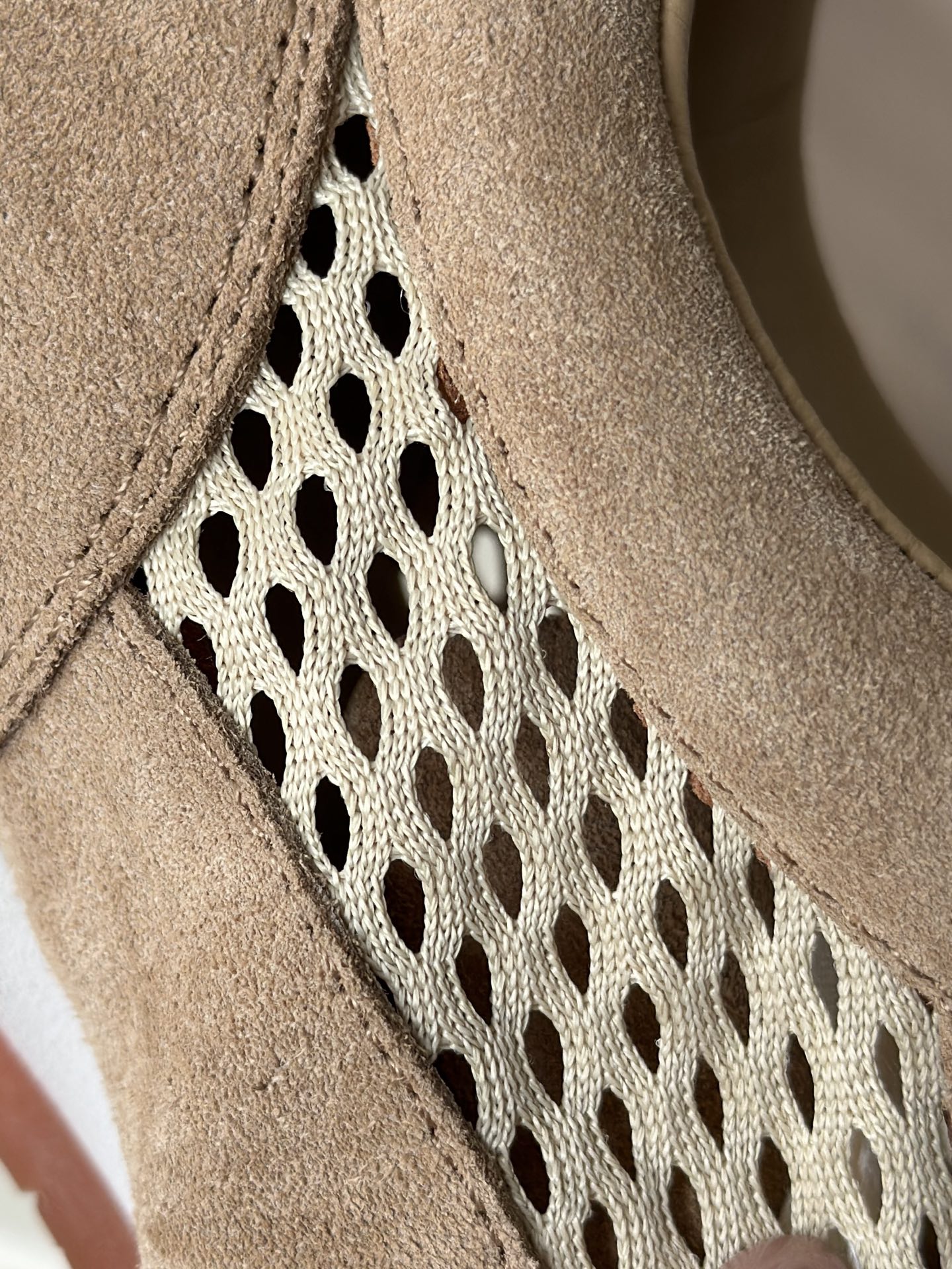 鞋面科技透气网布*反毛皮 舒适及透气性超级好! 春夏穿它,脚部再也不会有闷热感 这网纱质地轻盈,穿在脚上就像没穿一样!同时网纱的蓬松度和挺括度都刚刚好,既展现了飘逸流动的美感,又很好地支撑起了鞋子的廓形,看起来特别有型
