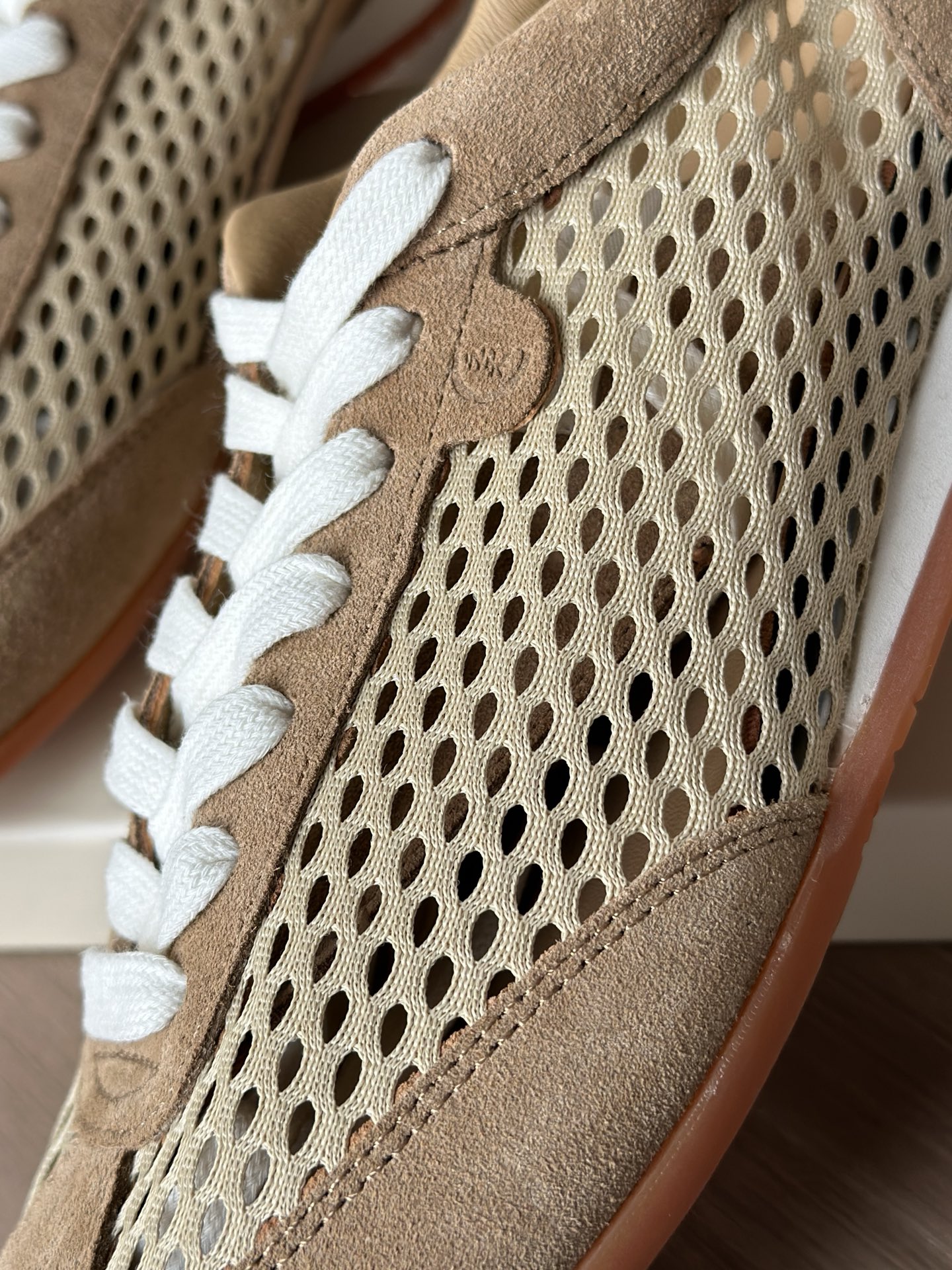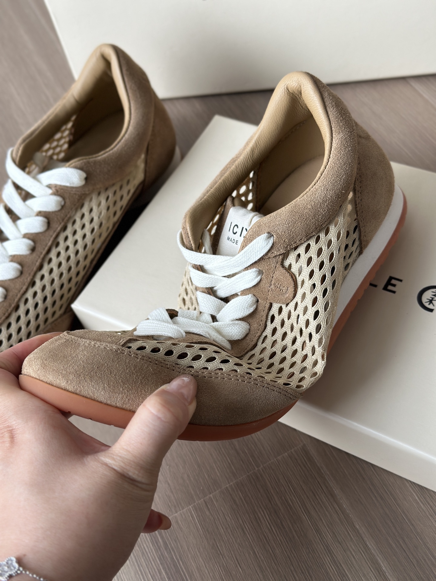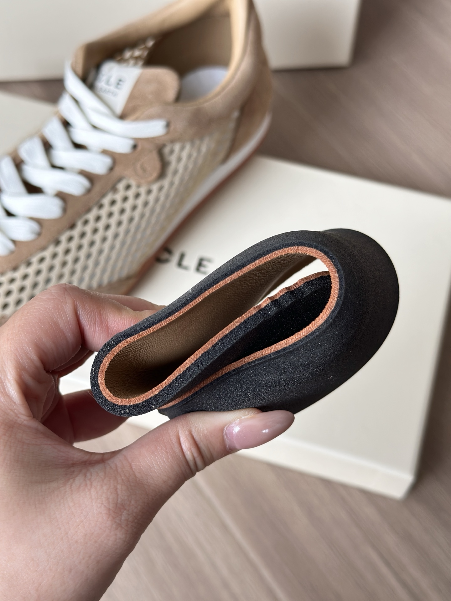 鞋面科技透气网布*反毛皮 舒适及透气性超级好! 春夏穿它,脚部再也不会有闷热感 这网纱质地轻盈,穿在脚上就像没穿一样!同时网纱的蓬松度和挺括度都刚刚好,既展现了飘逸流动的美感,又很好地支撑起了鞋子的廓形,看起来特别有型