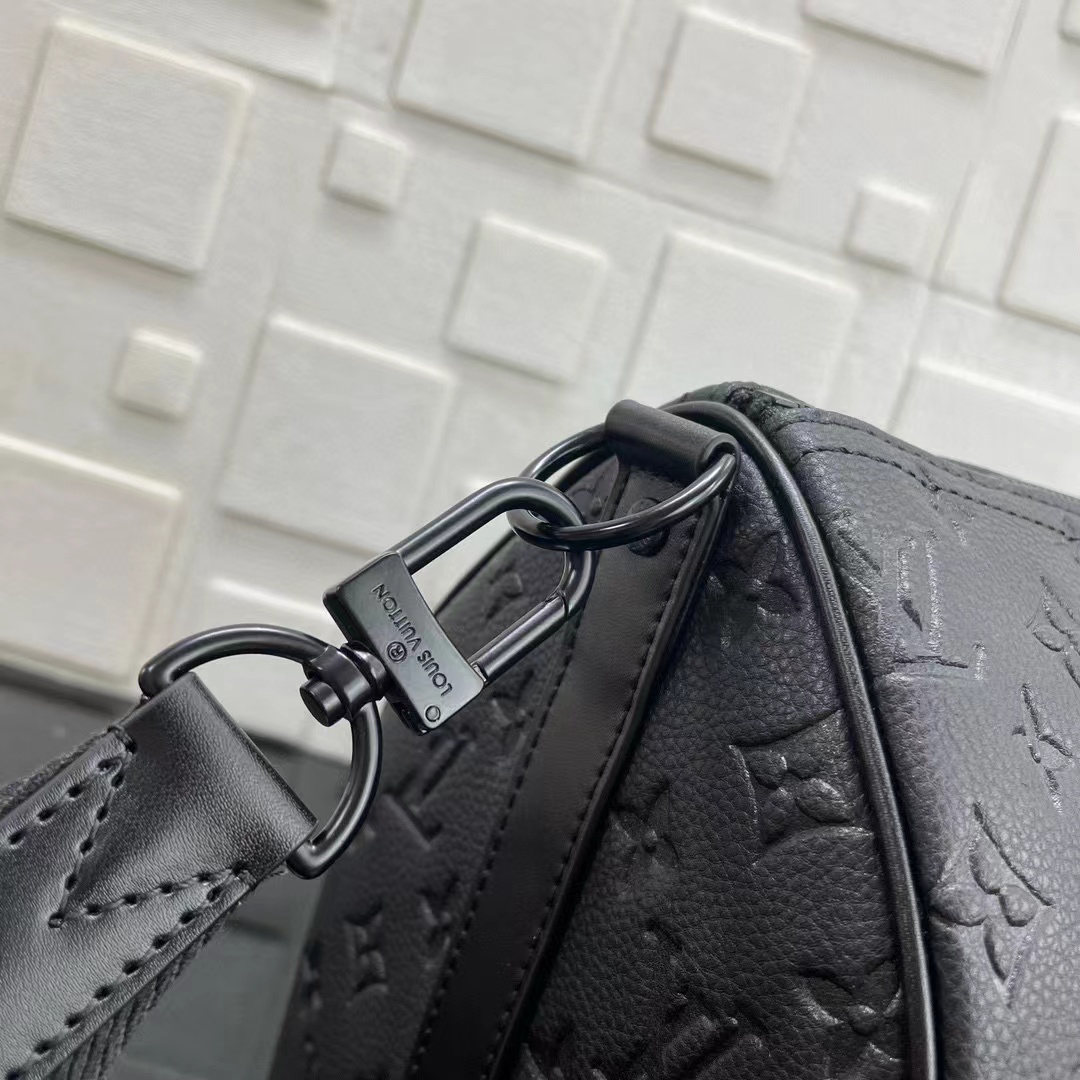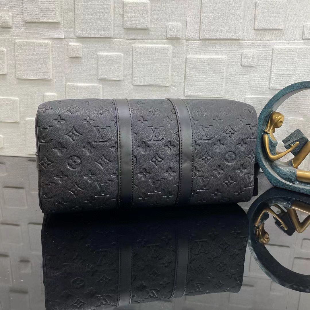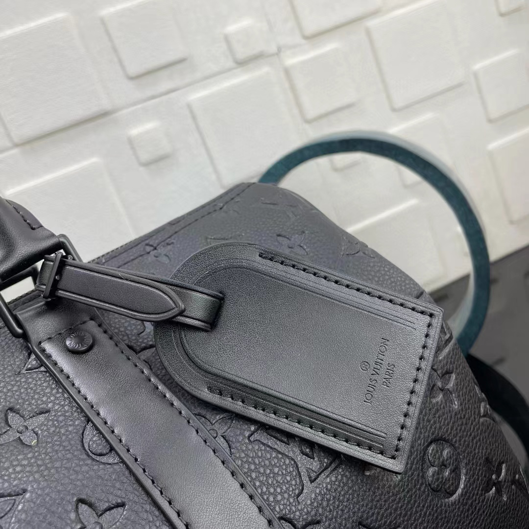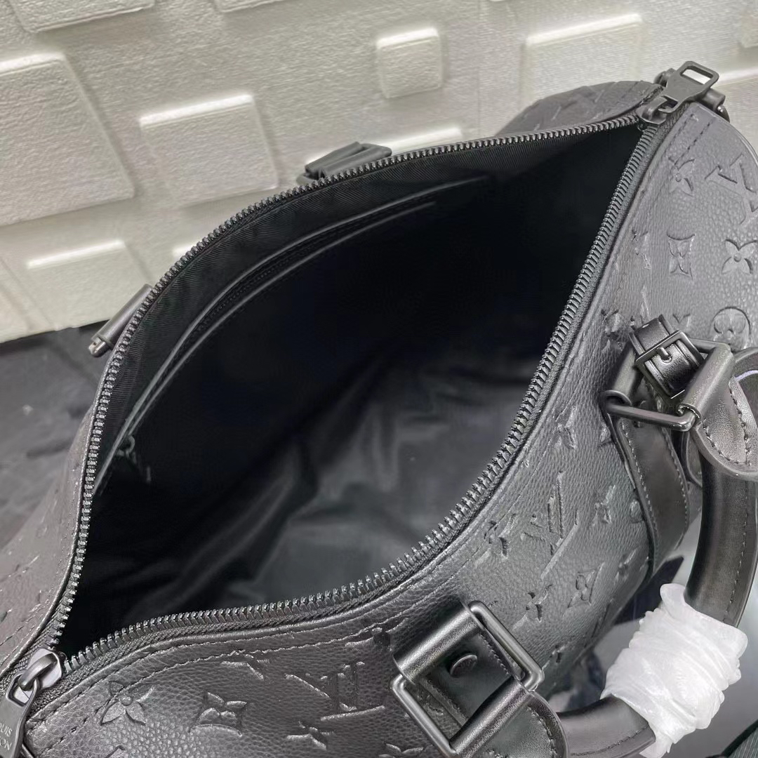 eepall Bandoulière 35 手袋是路易威登经典 Keepall 假日旅行袋的缩微版本 全粒面 Taurillon 皮革压印 Monogram 图案 皮革侧带和顶部皮革手柄延续 Keepall 系列的标志性元素 肩带可拆卸并调节 size:34x21x16cm