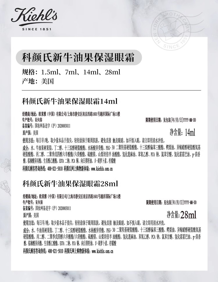 科颜氏Kiehl's 新牛油果保湿眼霜