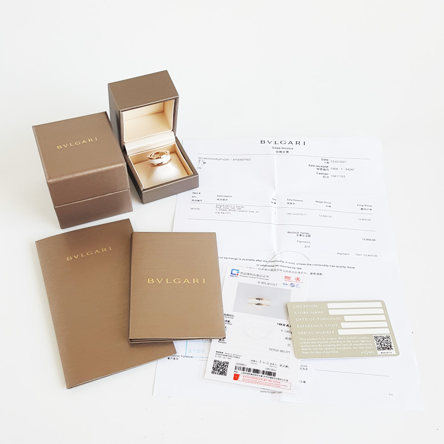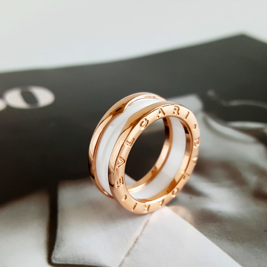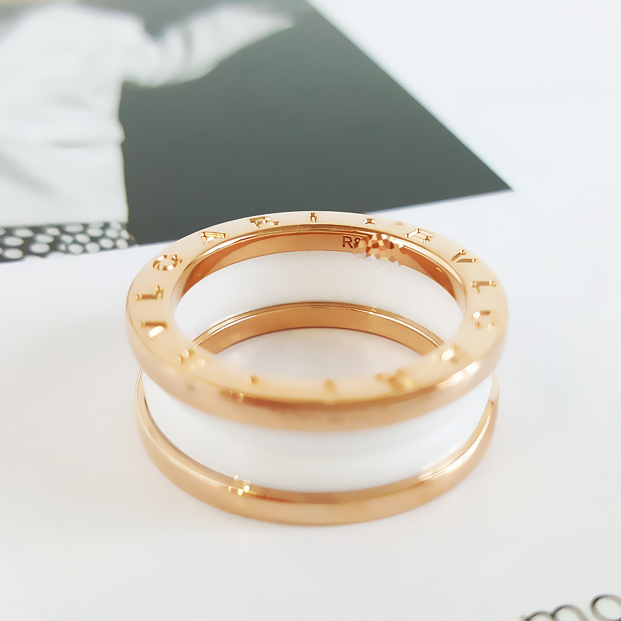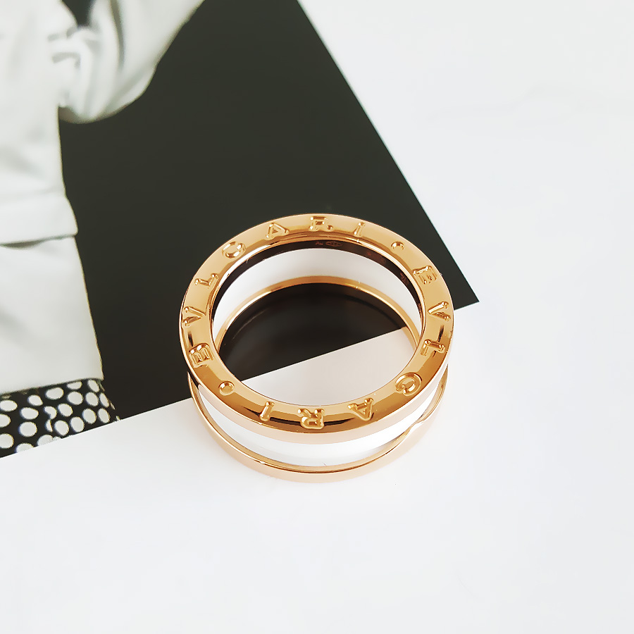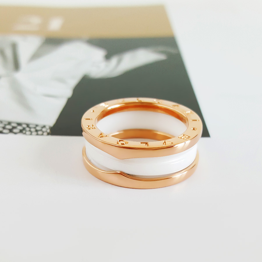 【95新】BVLGARI宝格丽B.zero1系列18K玫瑰金白陶瓷三环弹簧戒指55号170824NJS41