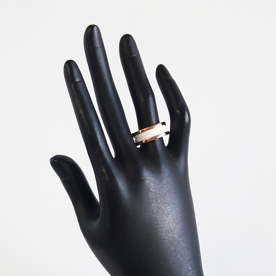 款式 | 18K玫瑰金白陶瓷三环弹簧戒指 |