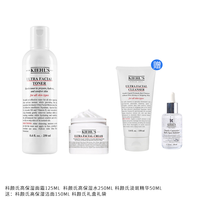 科颜氏保湿套(科颜氏高保湿面霜125ml+科颜氏高保湿水250ml+科颜氏淡斑精华50ml)送:科颜氏高保湿洁面150ml+科颜氏礼盒礼袋