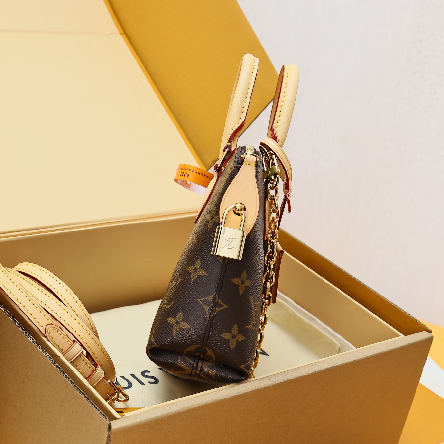 LOUIS VUITTON LV Lockit BB 字母徽标单肩斜挎手提包 M12019 法国原厂皮面料【芯片版】,厚镀纯钢五金!官网售价¥18,600RMB,本款 Lockit BB 手袋自 1960 年代的 Knick-Knack 手袋汲取灵感,可灵活切换多种背携方式。Monogram 涂层帆布搭配弧形上缘和椭圆饰边,道出原版设计的经典元素。挂锁开合再度致敬品牌悠久传承。涂层帆布-牛皮革饰边-金属件-挂锁钥匙包-可收纳 6.7 寸智能手机、Rosalie 零钱包、太阳眼镜、耳机、钥匙和口红-肩带:可拆卸,可调节-包带半长:44.0 厘米-包带半长可调至:50.0 厘米-链条:可拆卸-链条半长:18.0 厘米-手柄:双手柄! 注意:原单顶级版本,得物渠道专供,一包一码一封条,一比一还原专柜,可随意对比!高端产品,包内防伪标签,贴条撕毁不退换!配:专柜原版6重密封防伪包装! Size:19*7*15