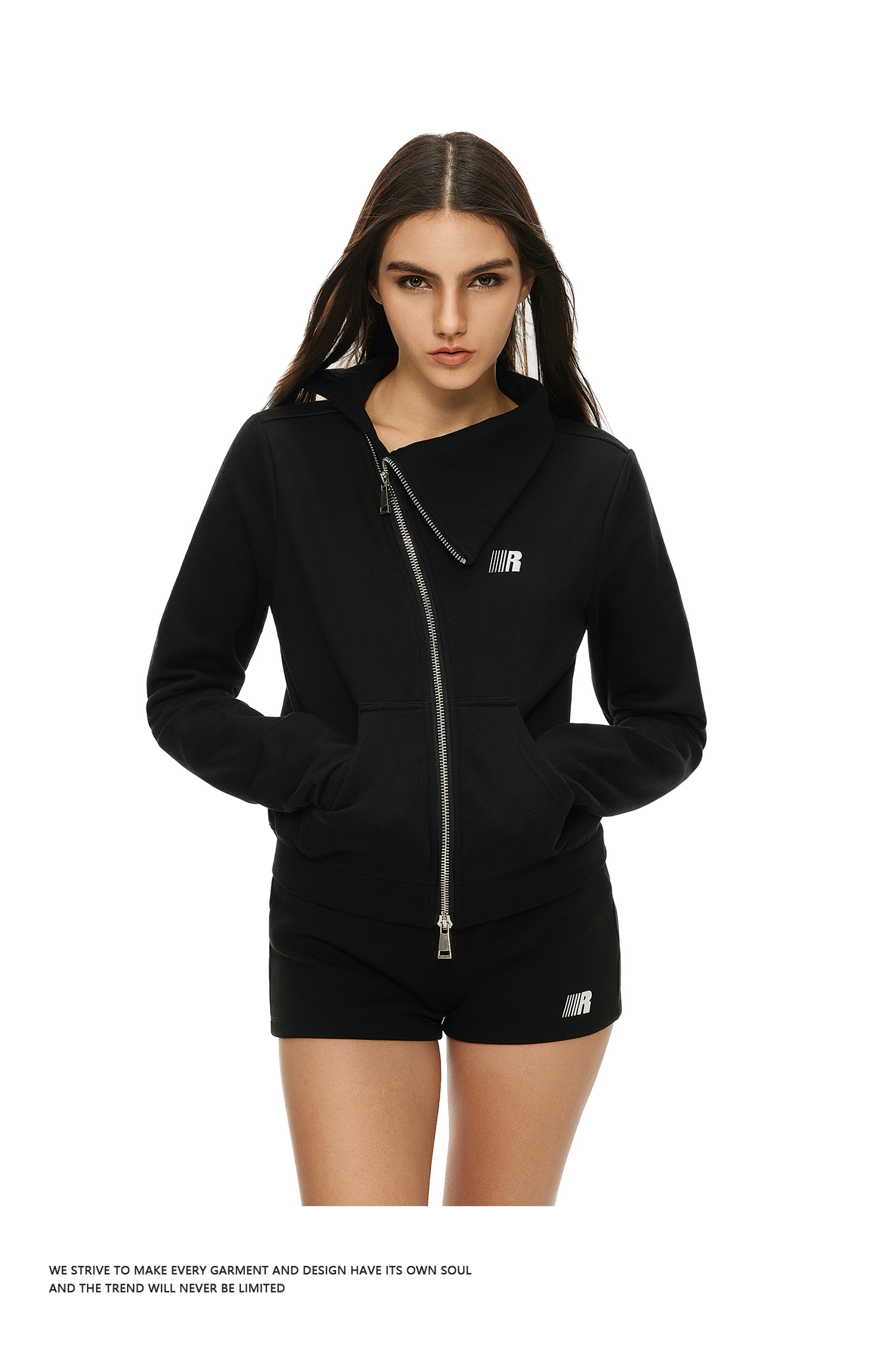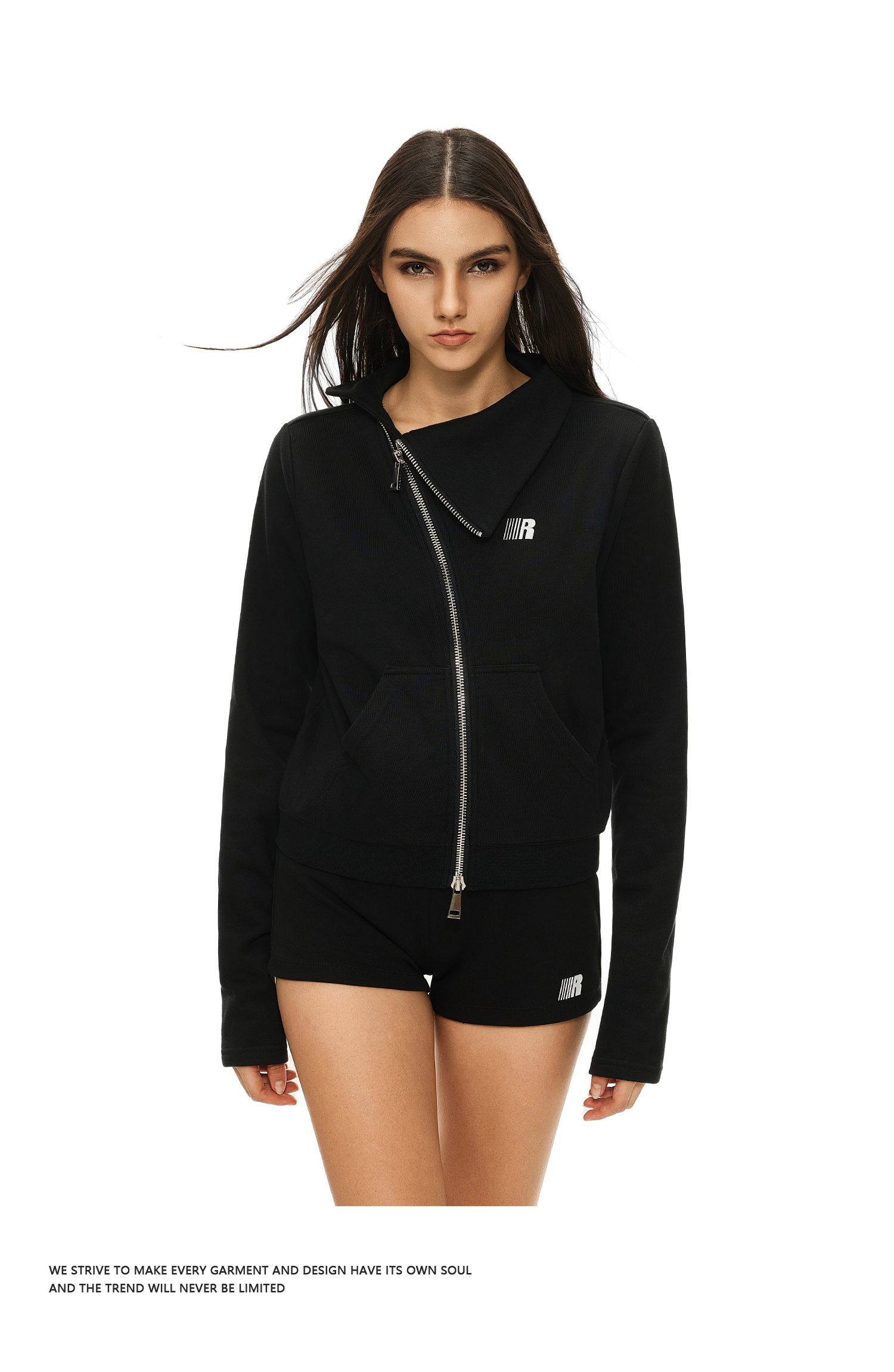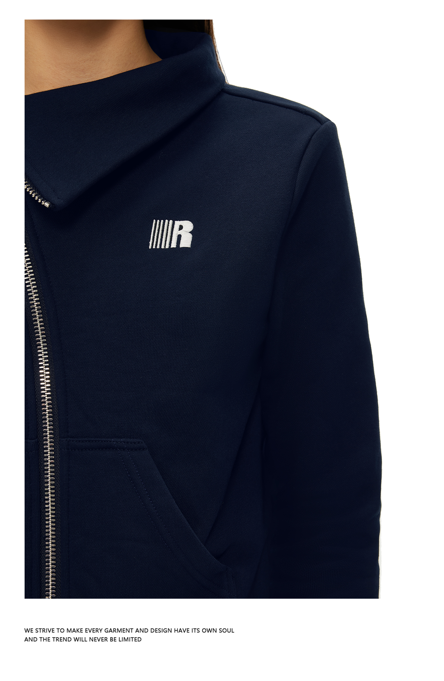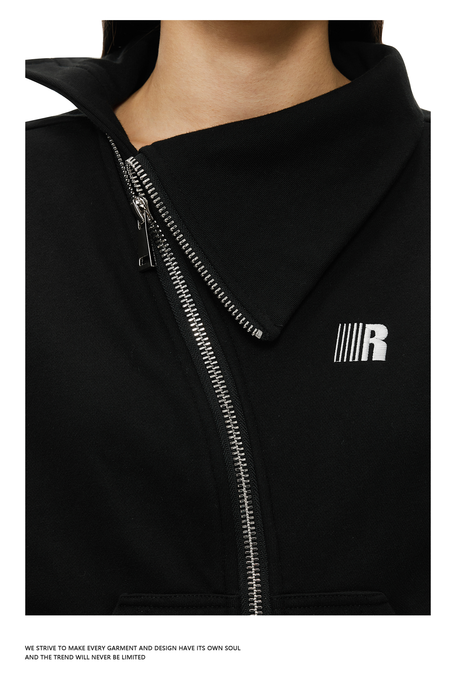 FDR官方店 R字刺绣斜拉链卫衣女春季修身设计感翻领开衫外套