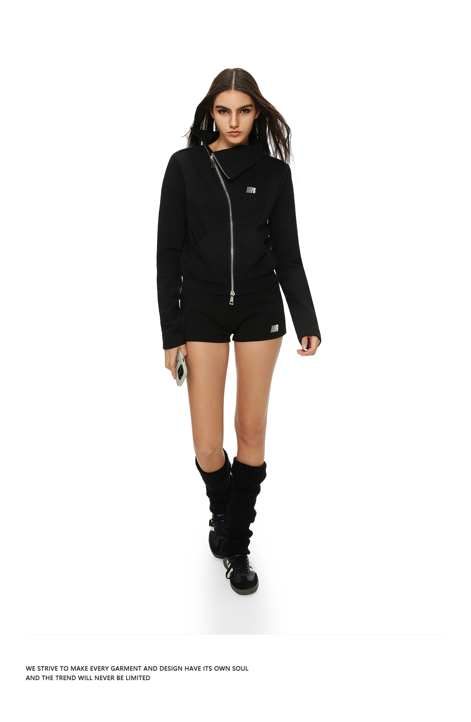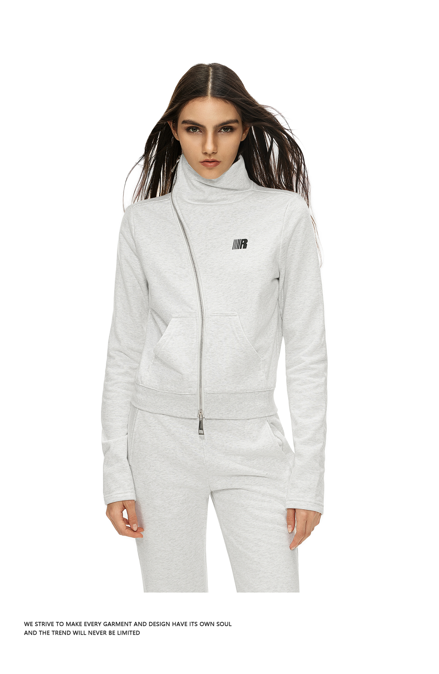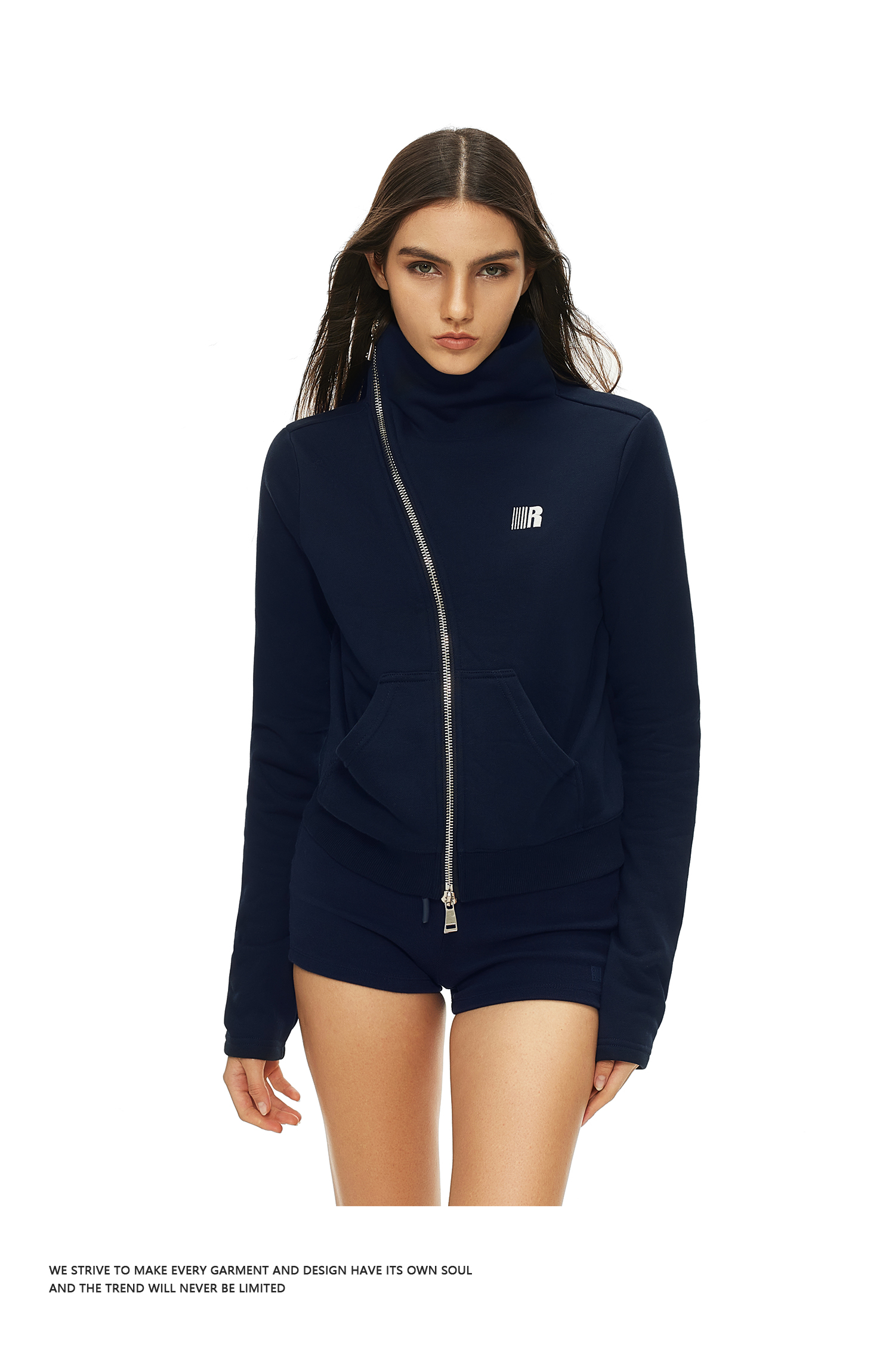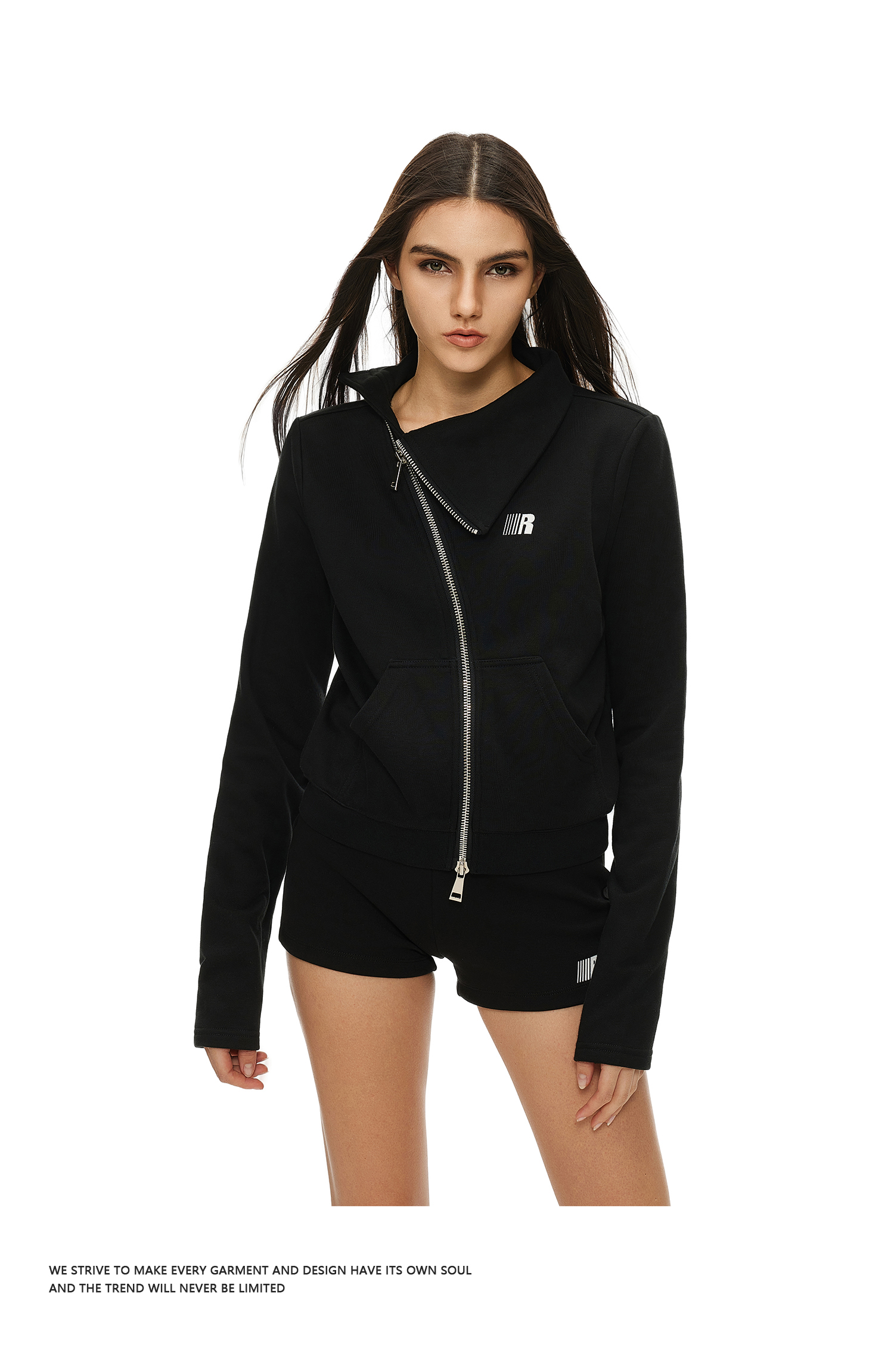 FDR官方店 R字刺绣斜拉链卫衣女春季修身设计感翻领开衫外套