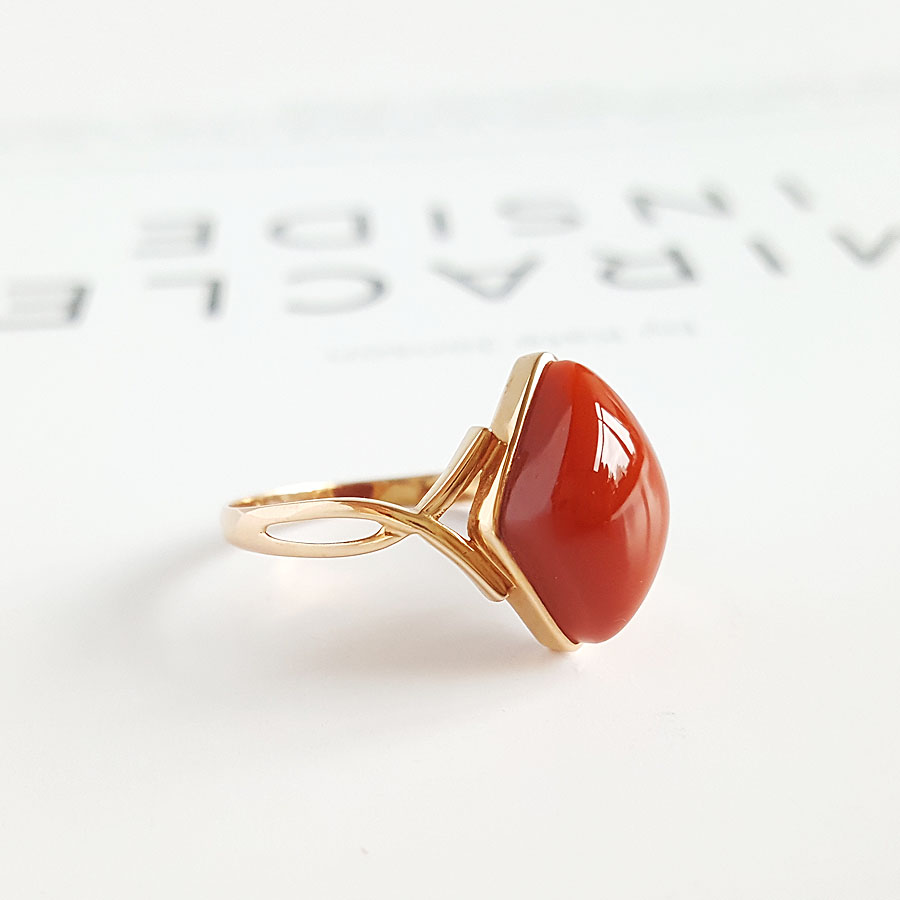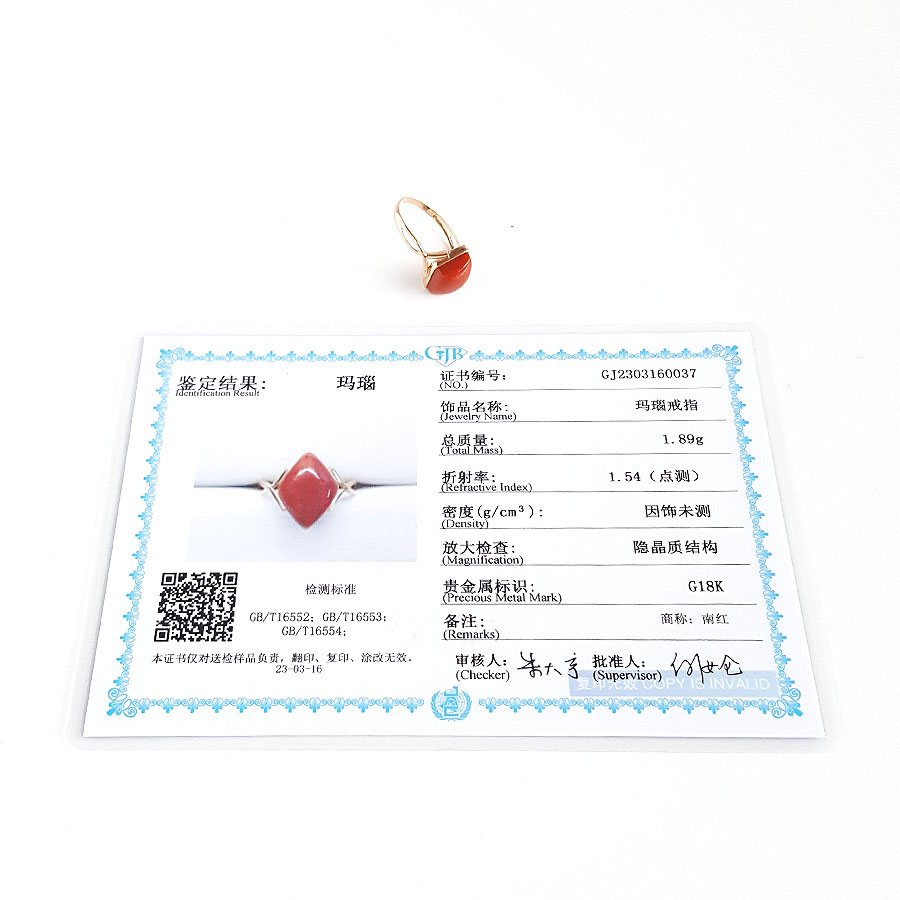 【天然正品】天然随形南红玛瑙AU750玫瑰金戒指14.5号(戒圈可改)070623XY06特价
