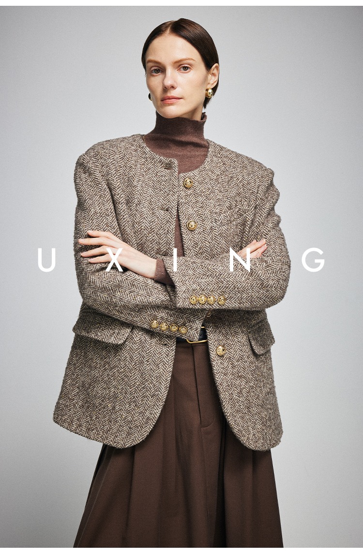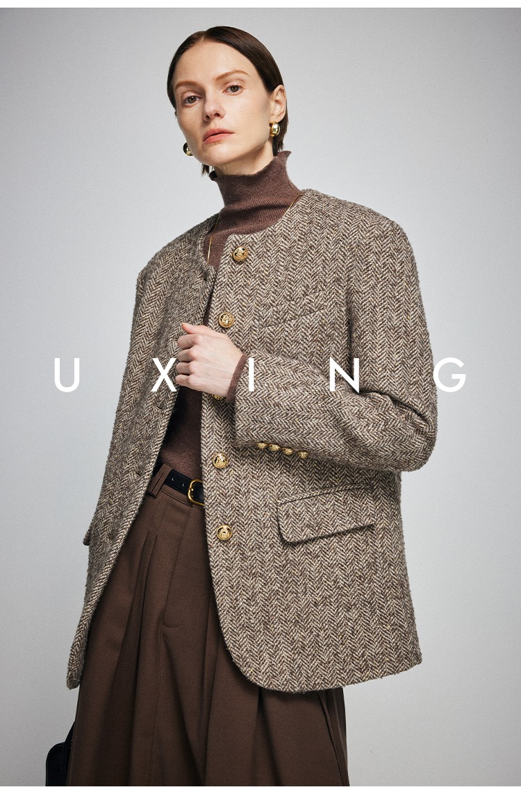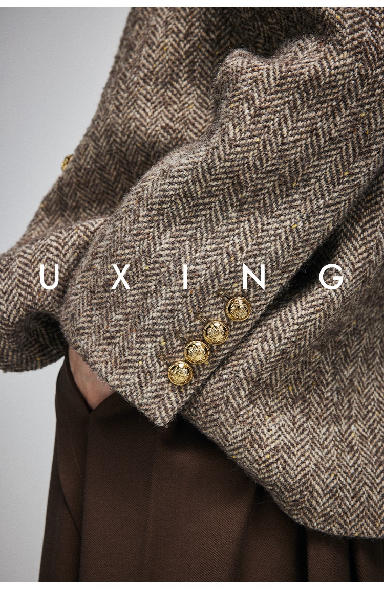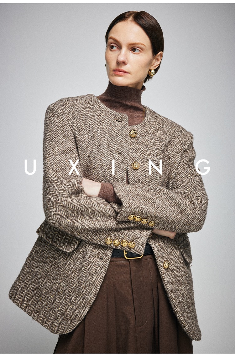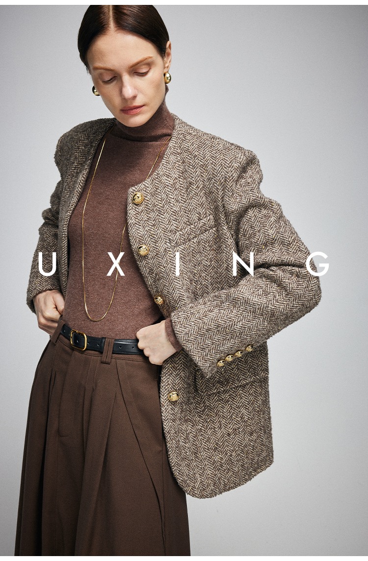 原形法式小香风羊毛大衣女2023秋冬新款西装呢外套廓形气质上衣